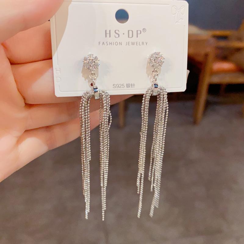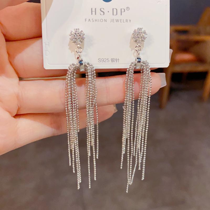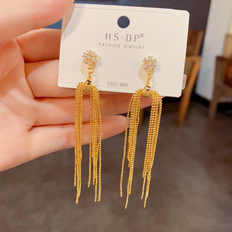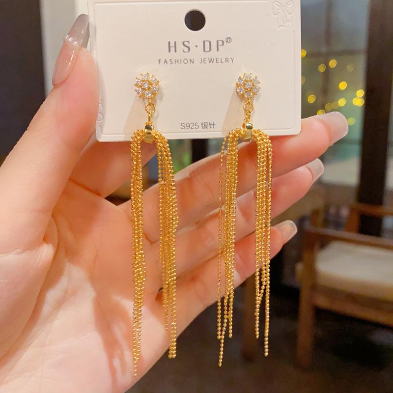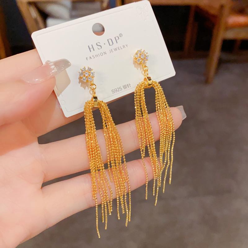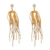 Silver-metal geometric long tassel earrings (thick real gold plating)