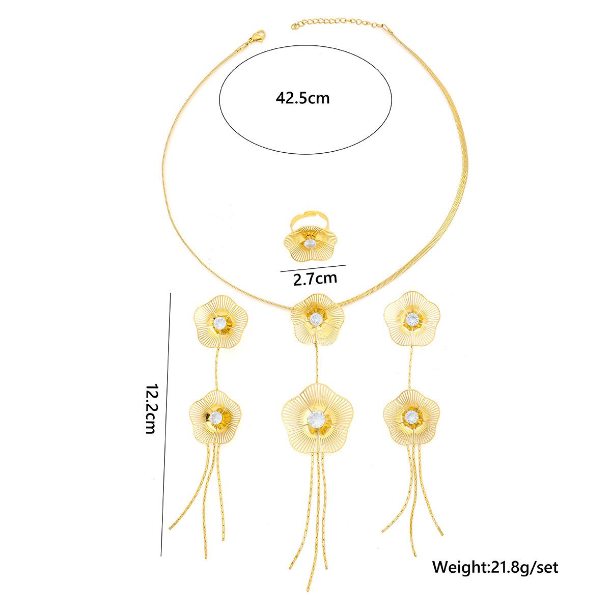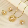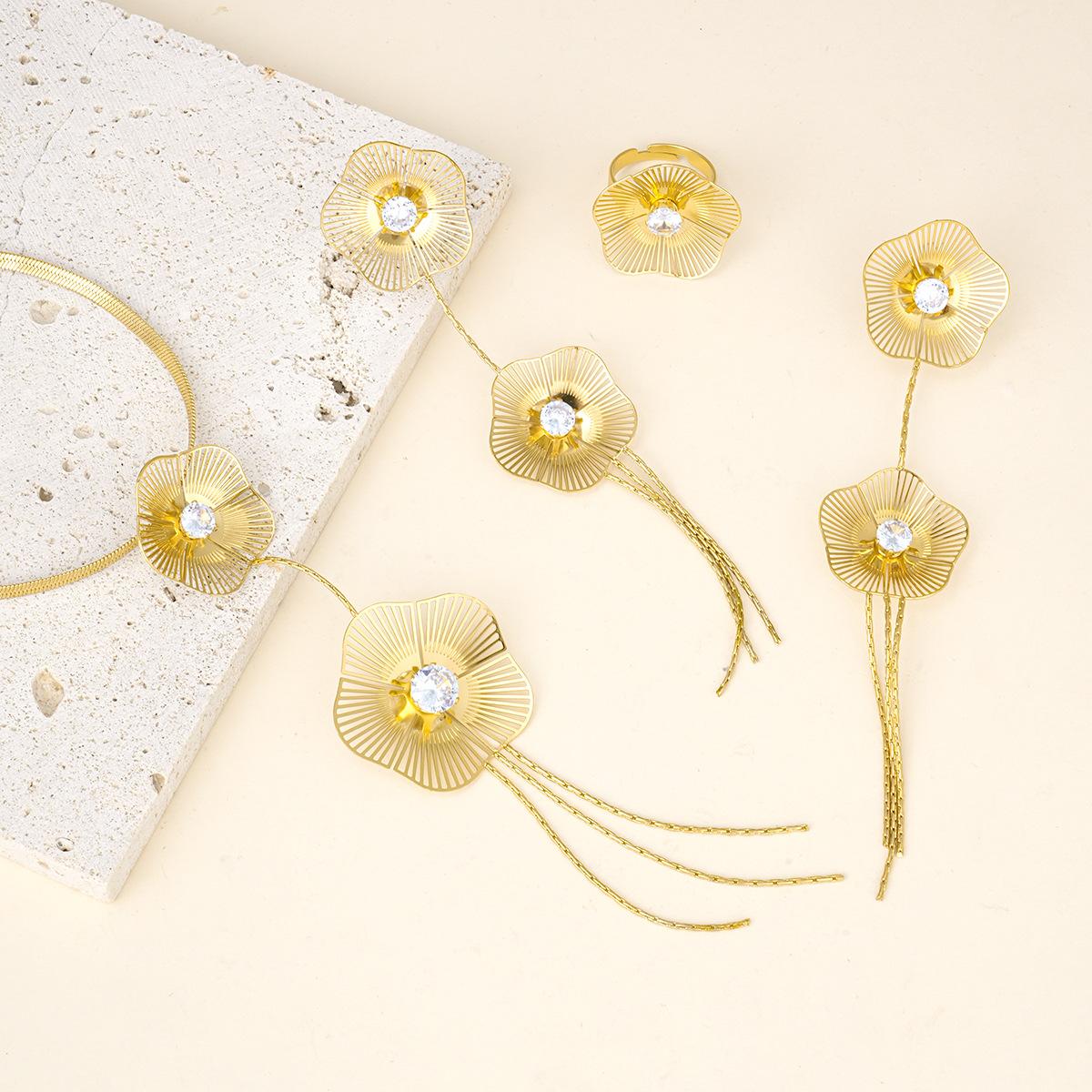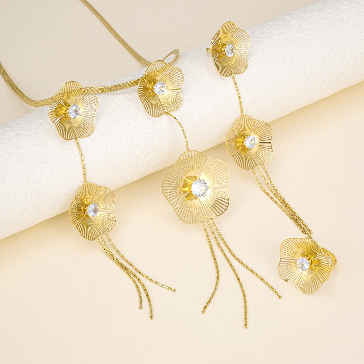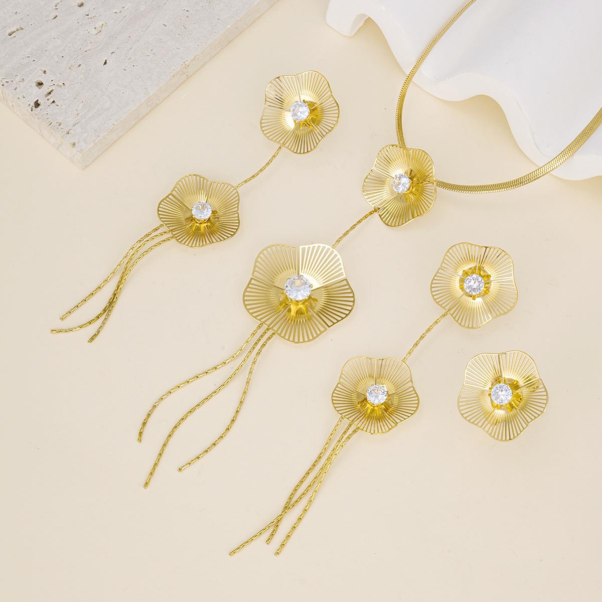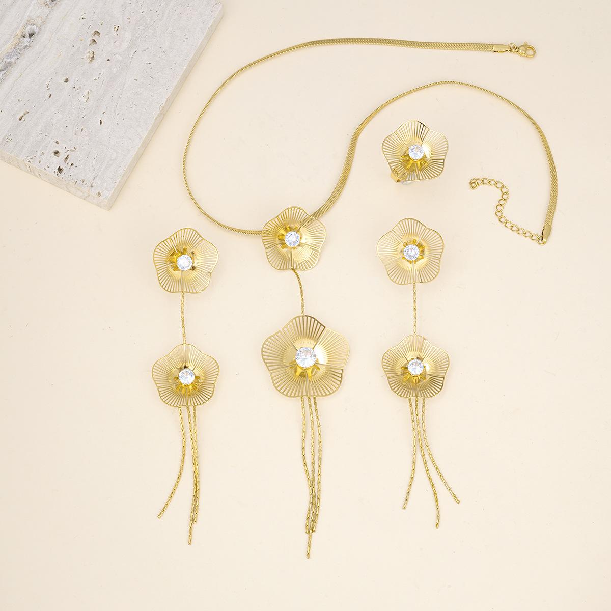 Europeo y Americano Nueva Moda Elegante Diseño Recortado Collar de Flores Aretes Anillo Acero Inoxidable Juego de Joyería Venta al por Mayor