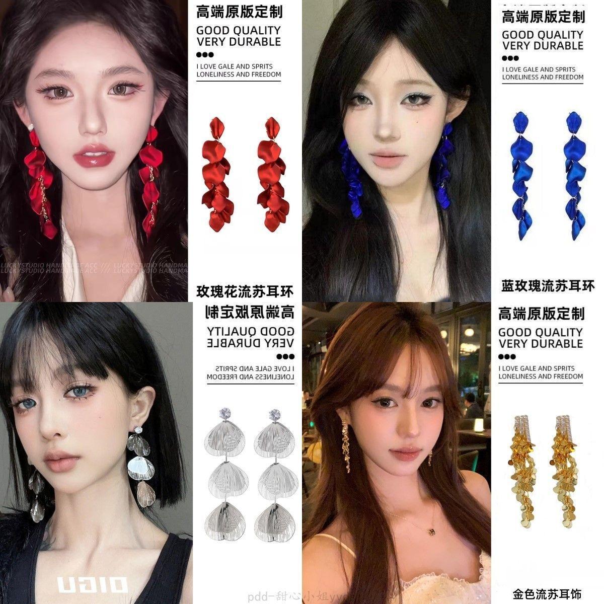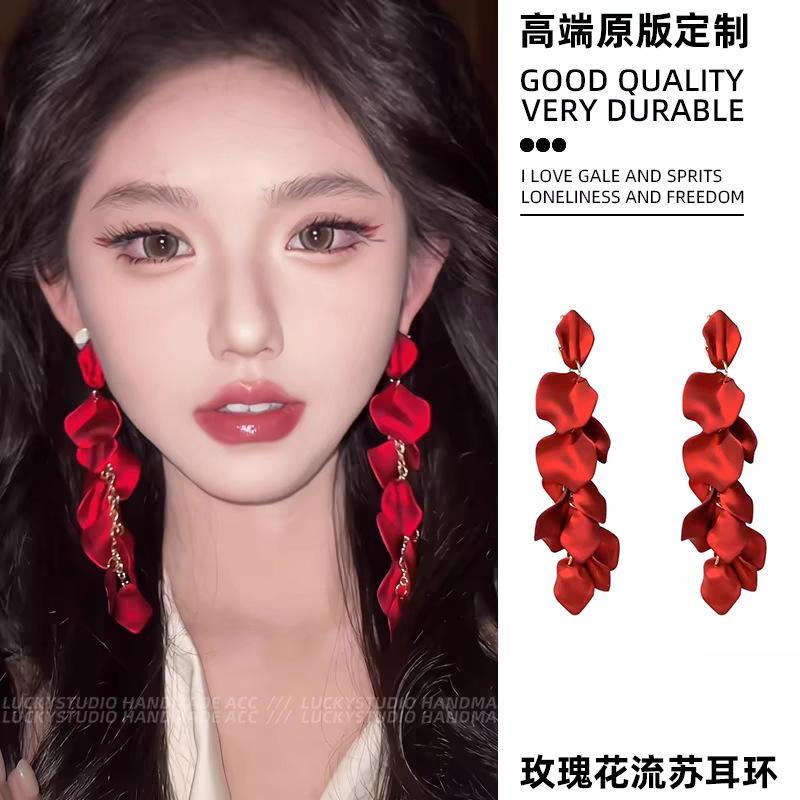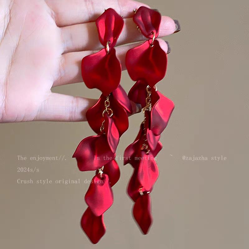 Compra Aretes de Borla Exagerados de Pétalo Rojo para Mujer Aretes Largos Elegantes de Lujo Ligero de Alta Gama Aretes Elegantes Aretes Retro Caros al por mayor en Joom.pro