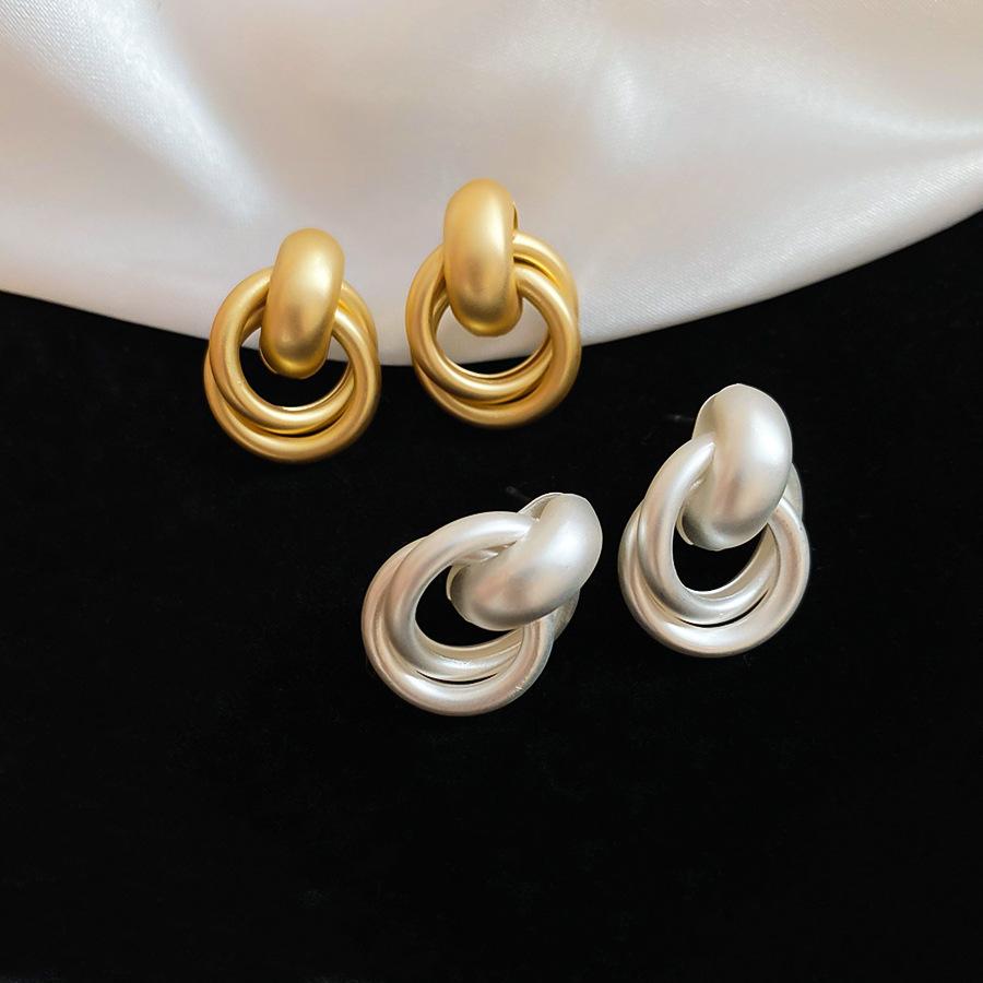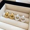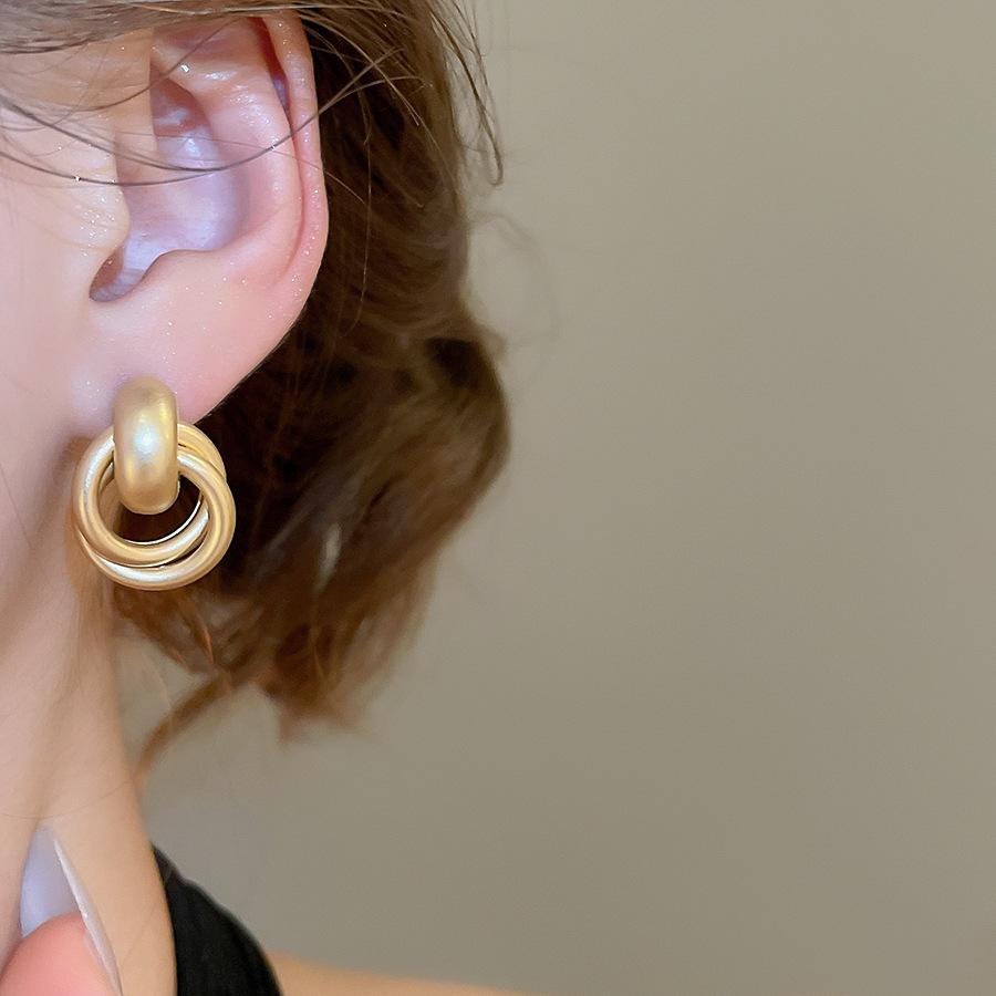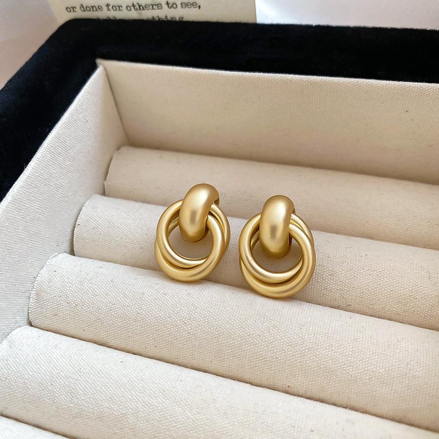 Aretes de Tuerca Geométricos Circulares Metálicos Europeos y Americanos de Aguja de Acero Aretes Versátiles de Moda Sentido de Diseño de Nicho Individual Joyería para la Oreja
