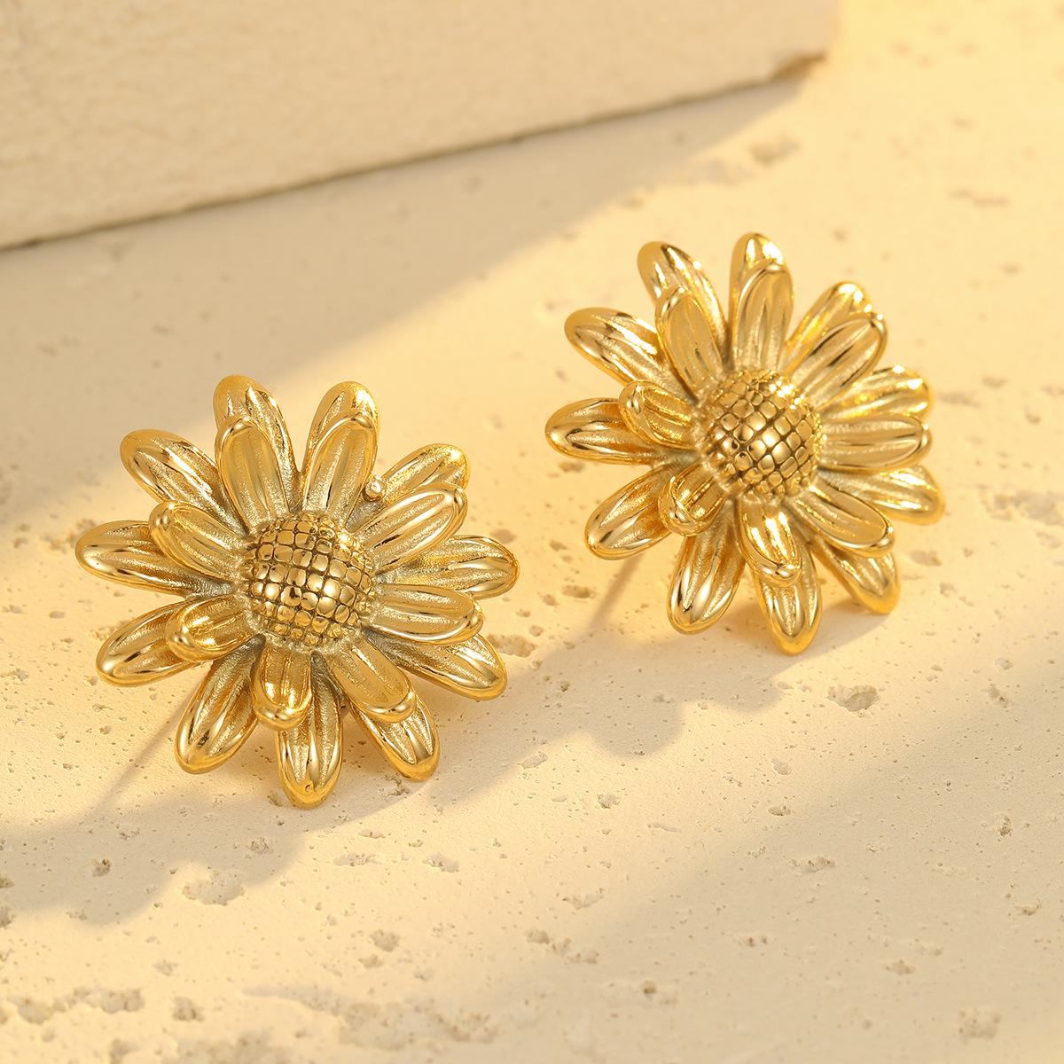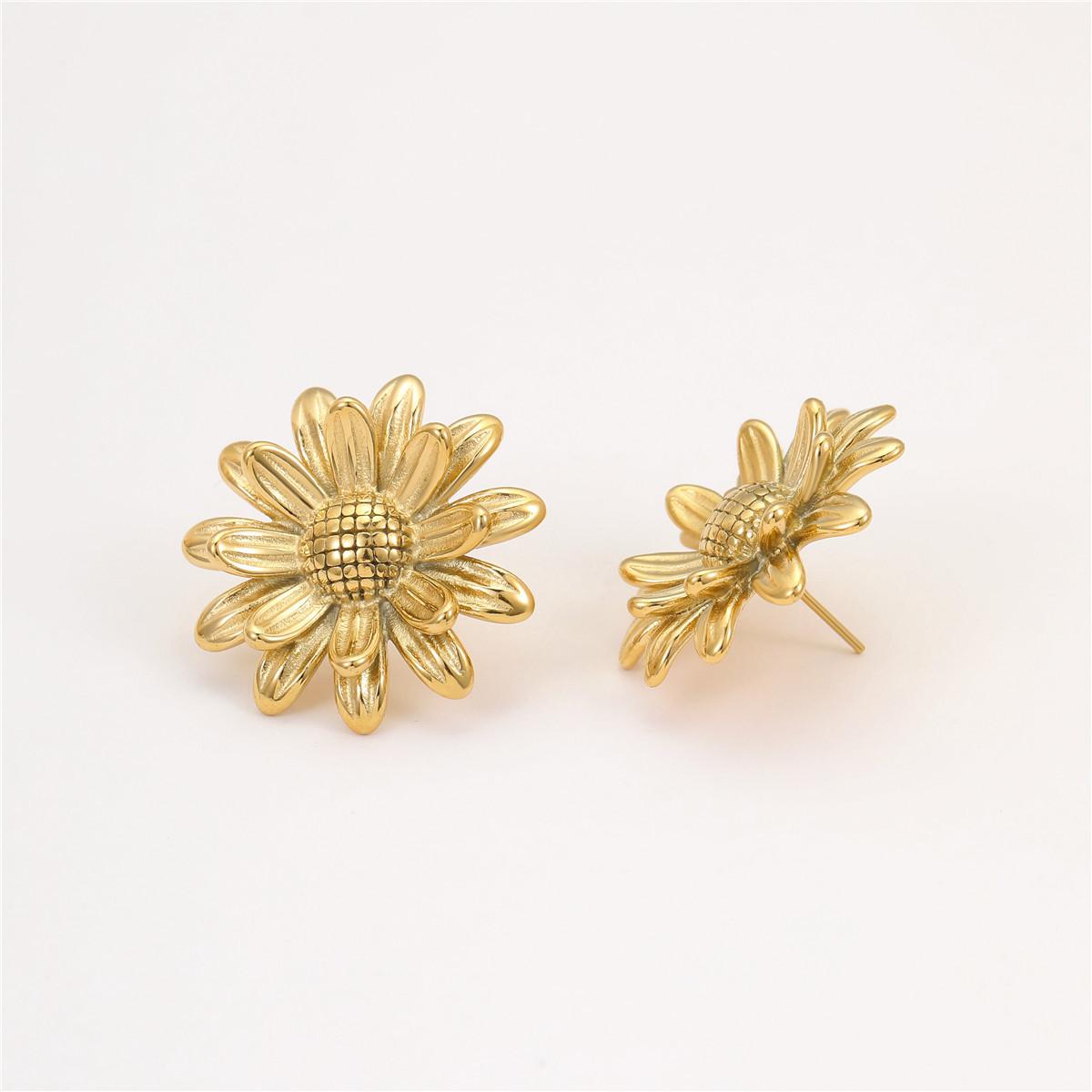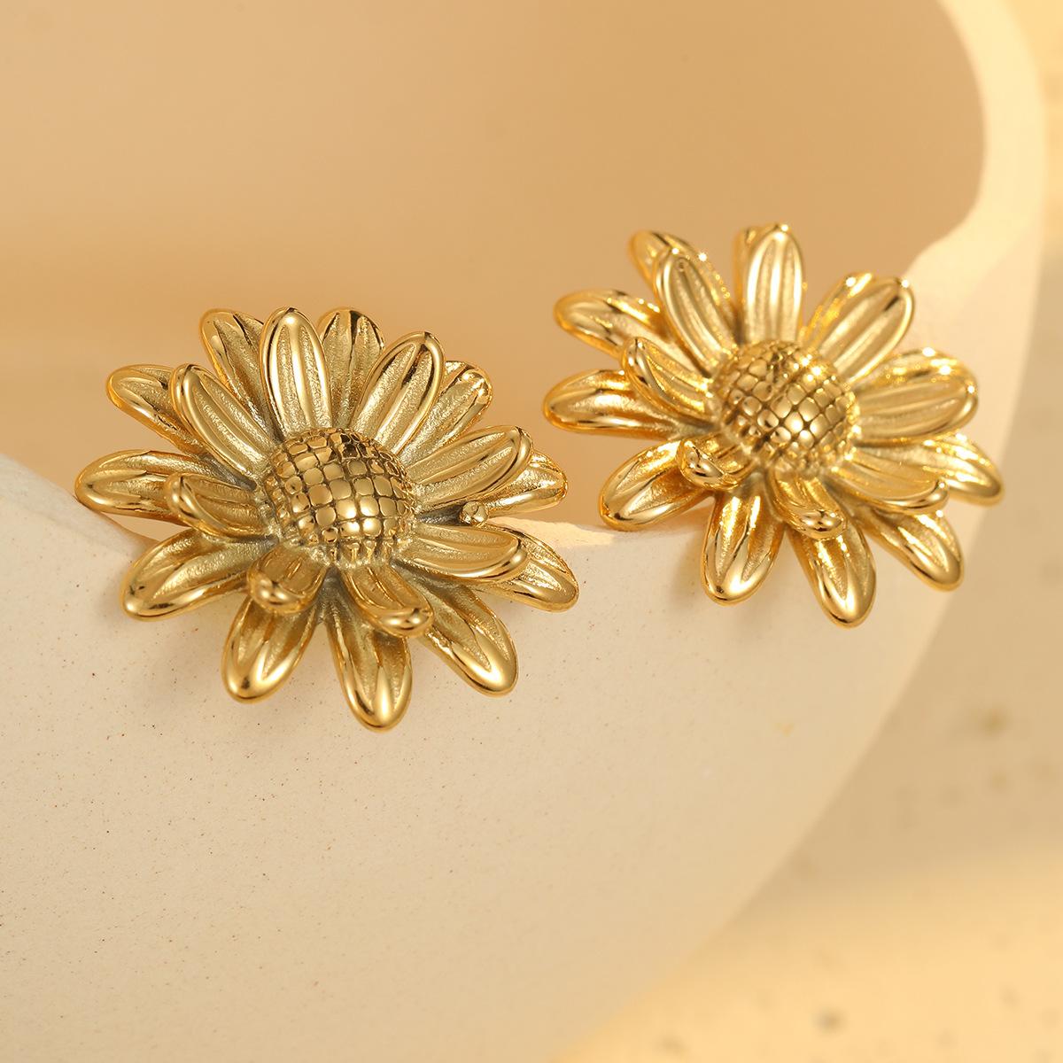 Europa y Estados Unidos nuevos aretes de tuerca de acero inoxidable transfronterizos diseño de personalidad aretes de tuerca de flor de alto sentido aretes de nicho de lujo ligero aretes