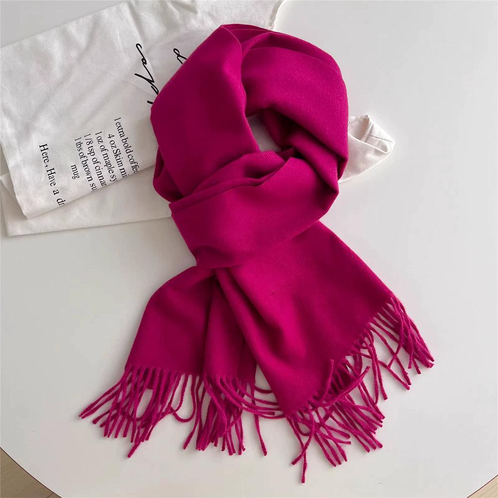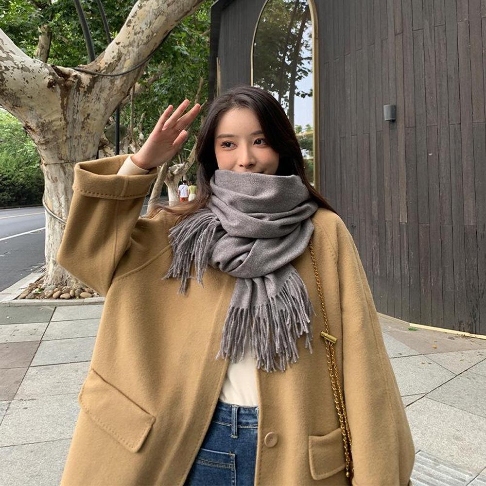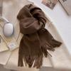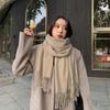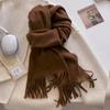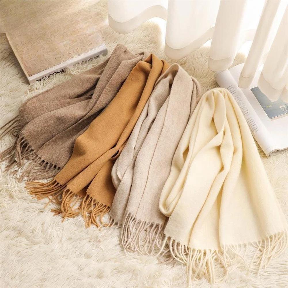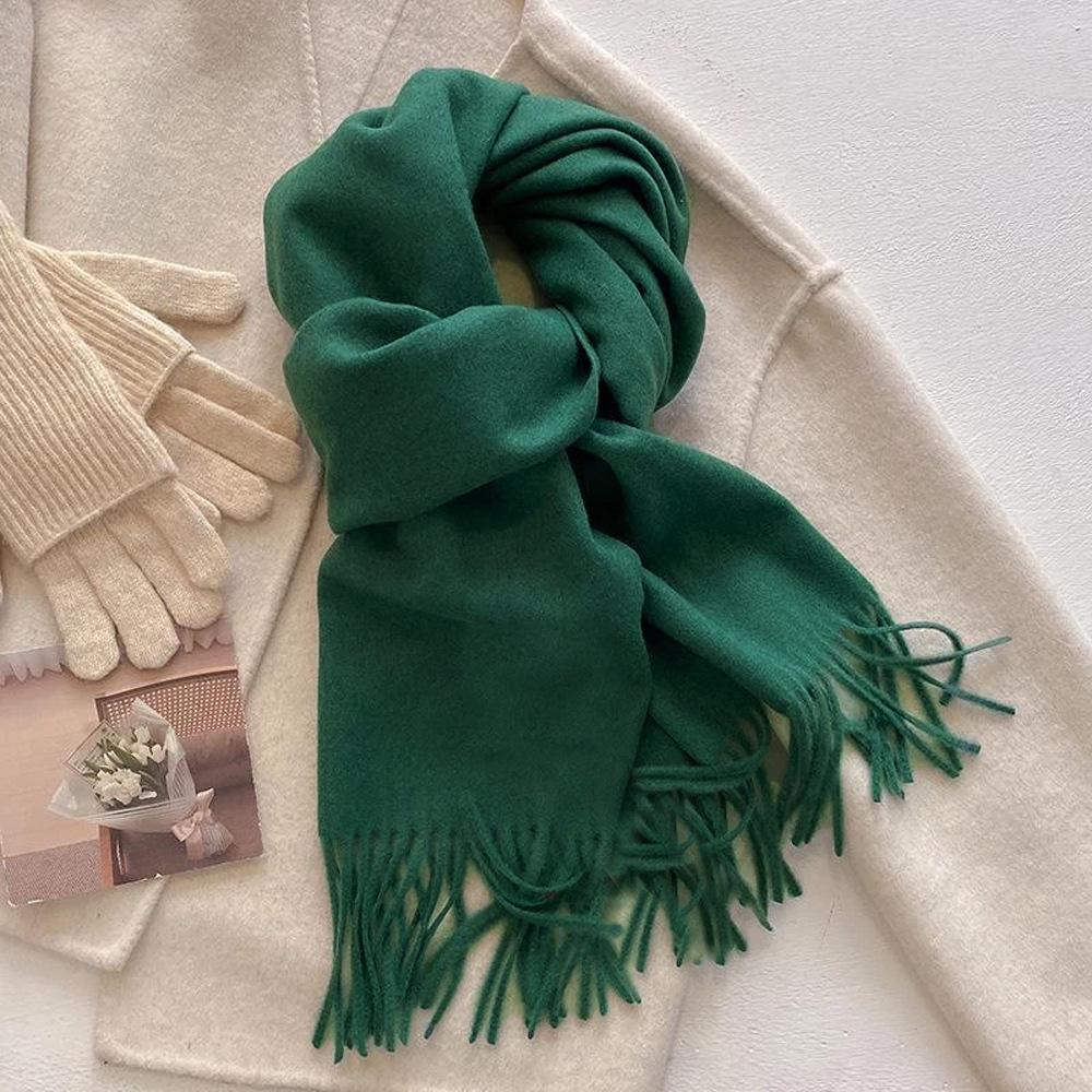 Bufanda de Color Sólido con Borlas Mezcla de Lana Cachemira para Mujer Chal Versátil de Gama Alta a Prueba de Frío Calentador de Cuello Cálido Grueso Otoño Invierno