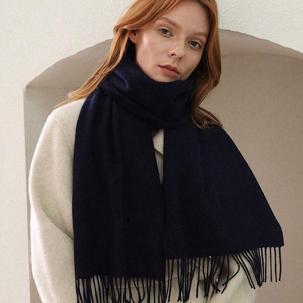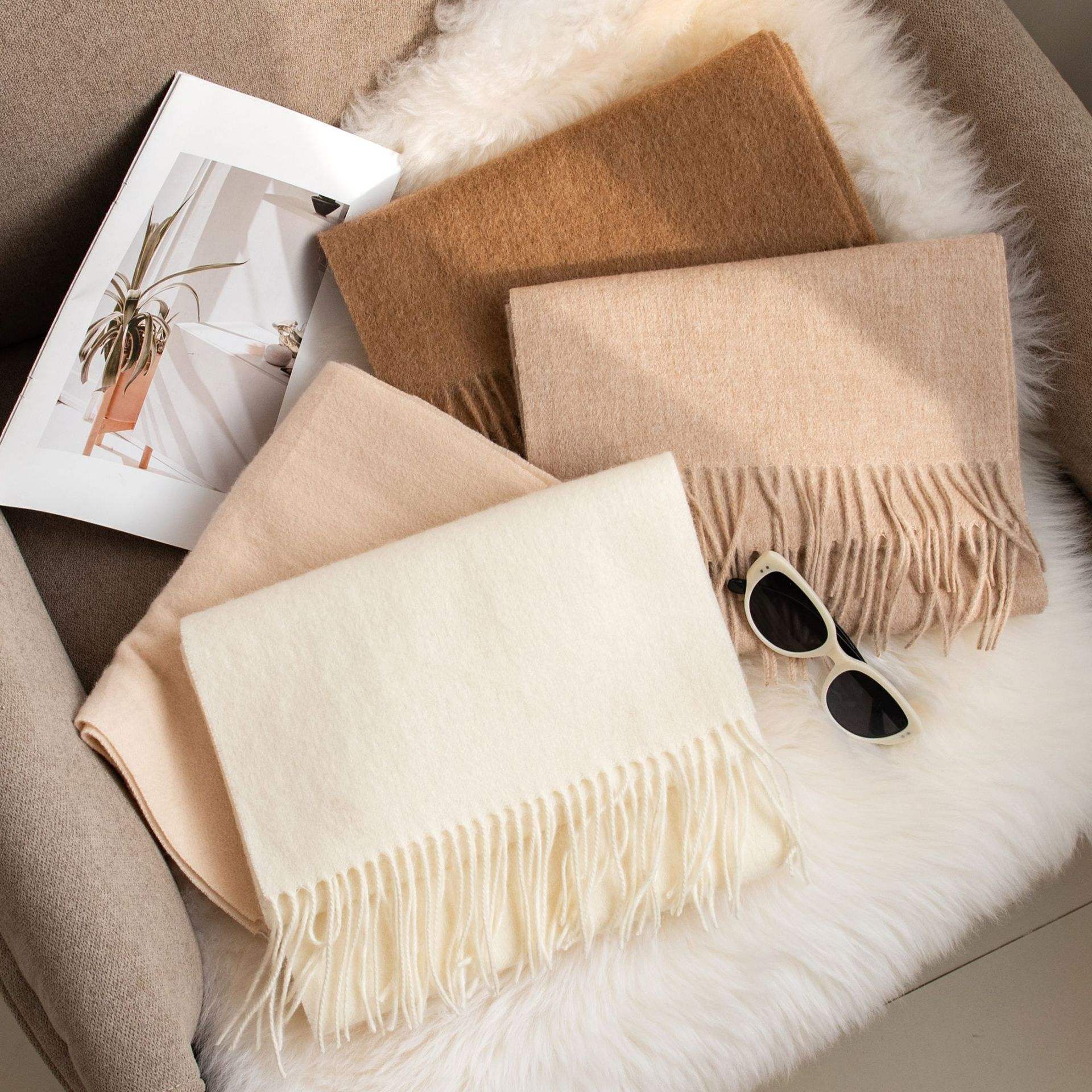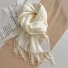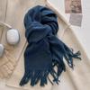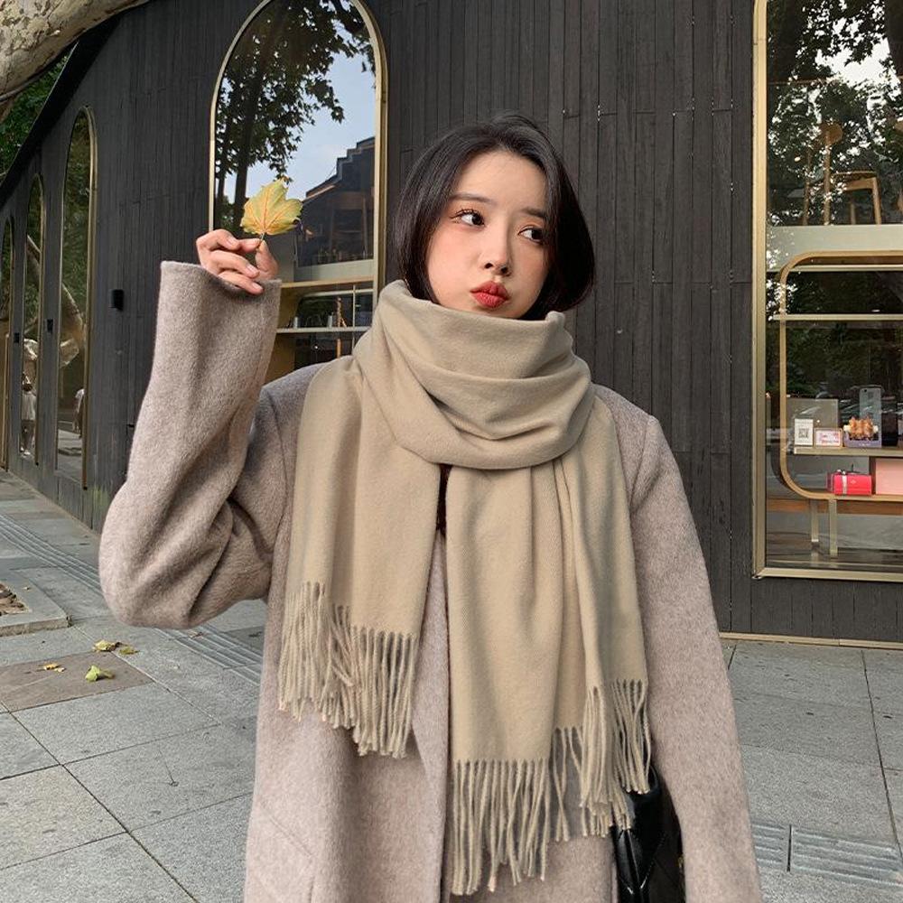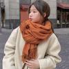 Bufanda de Color Sólido con Borlas Mezcla de Lana Cachemira para Mujer Chal Versátil de Gama Alta a Prueba de Frío Calentador de Cuello Cálido Grueso Otoño Invierno