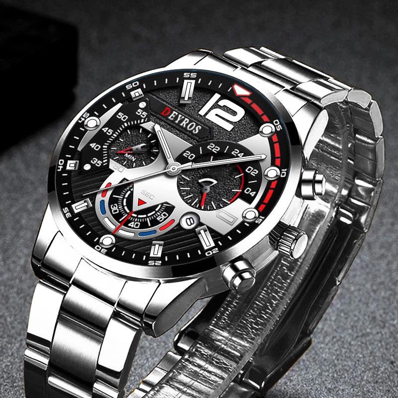 Explosiones transfronterizas moda para hombre acero inoxidable reloj de pulsera de negocios manecilla con calendario reloj de cuarzo A09746