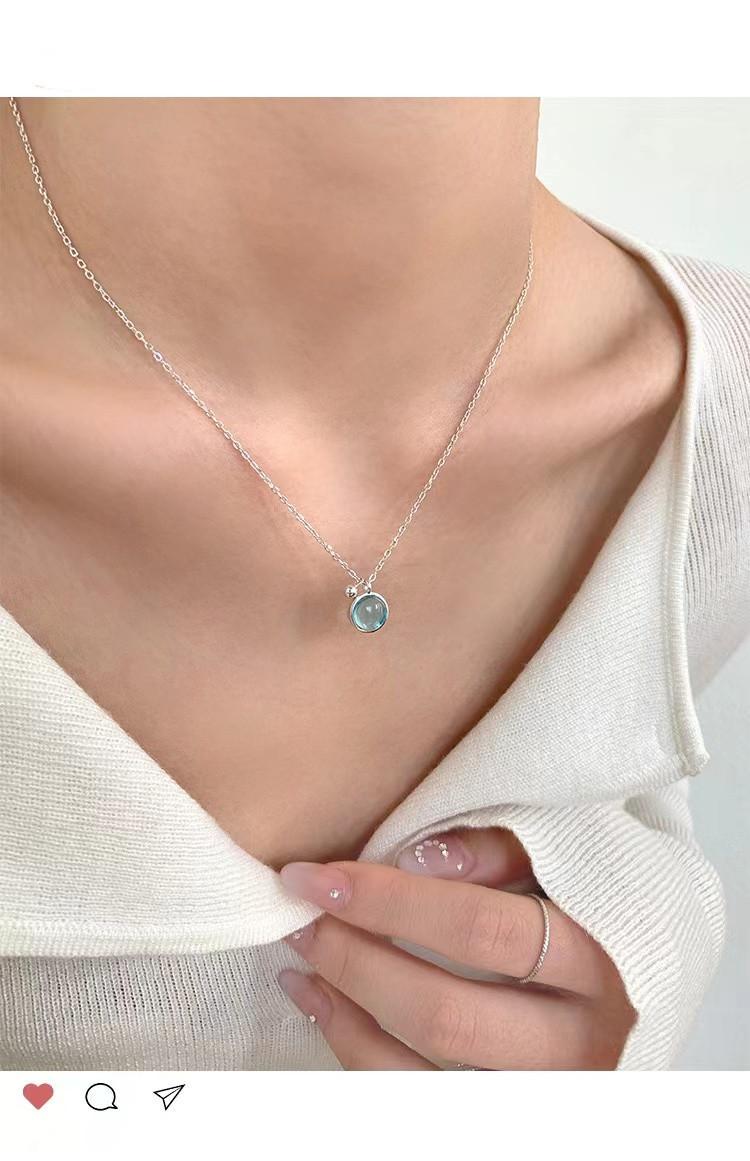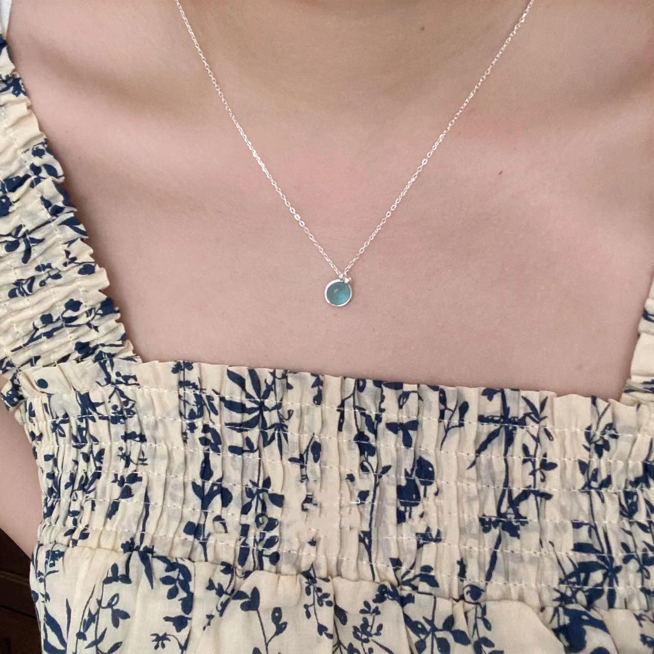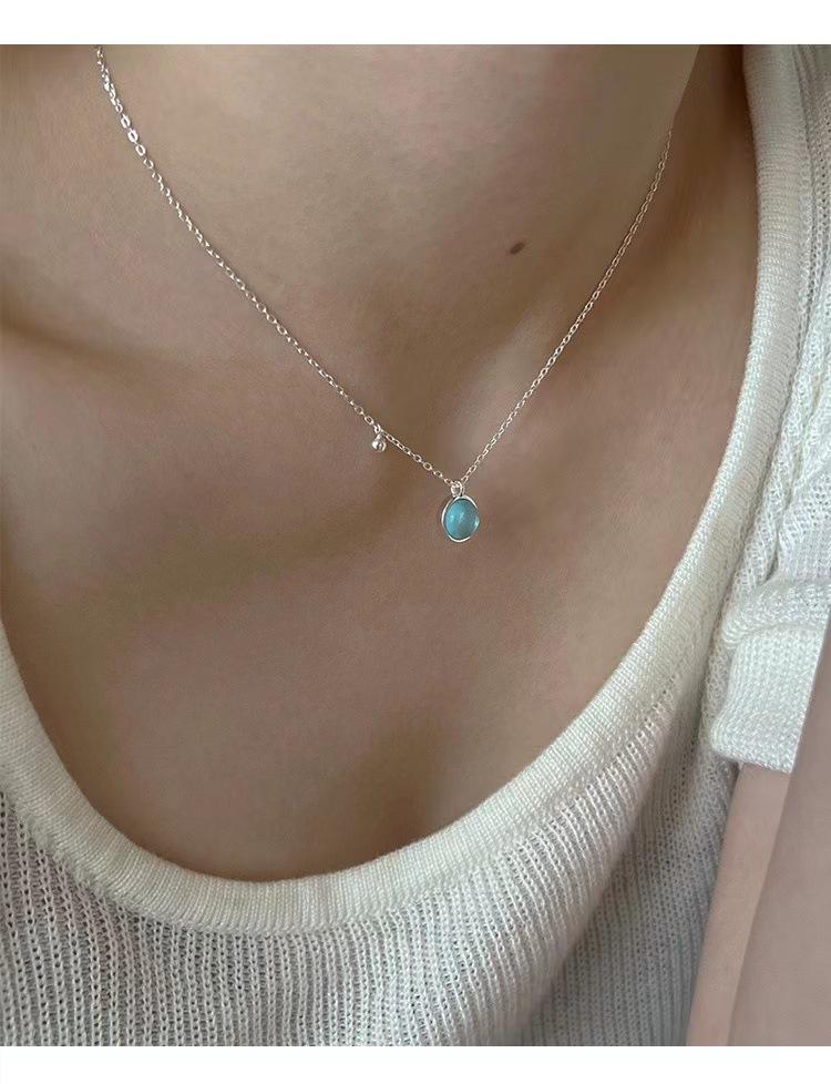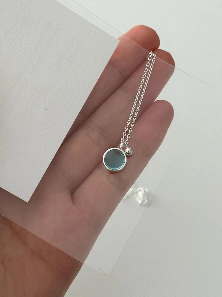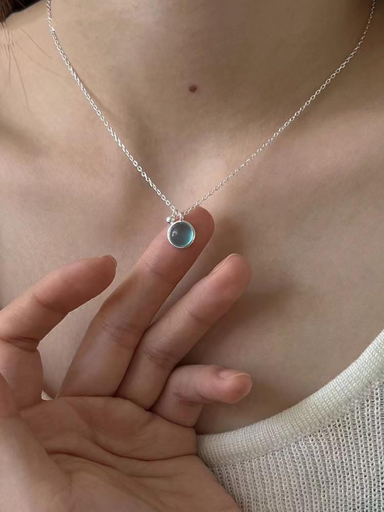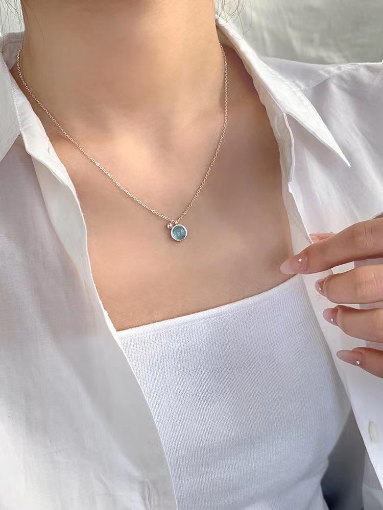 Collar sencillo de cristal azul para mujer, colgante redondo pequeño y fresco de verano, cadena de clavícula de lujo de alta gama, estilo minimalista que combina con todo.