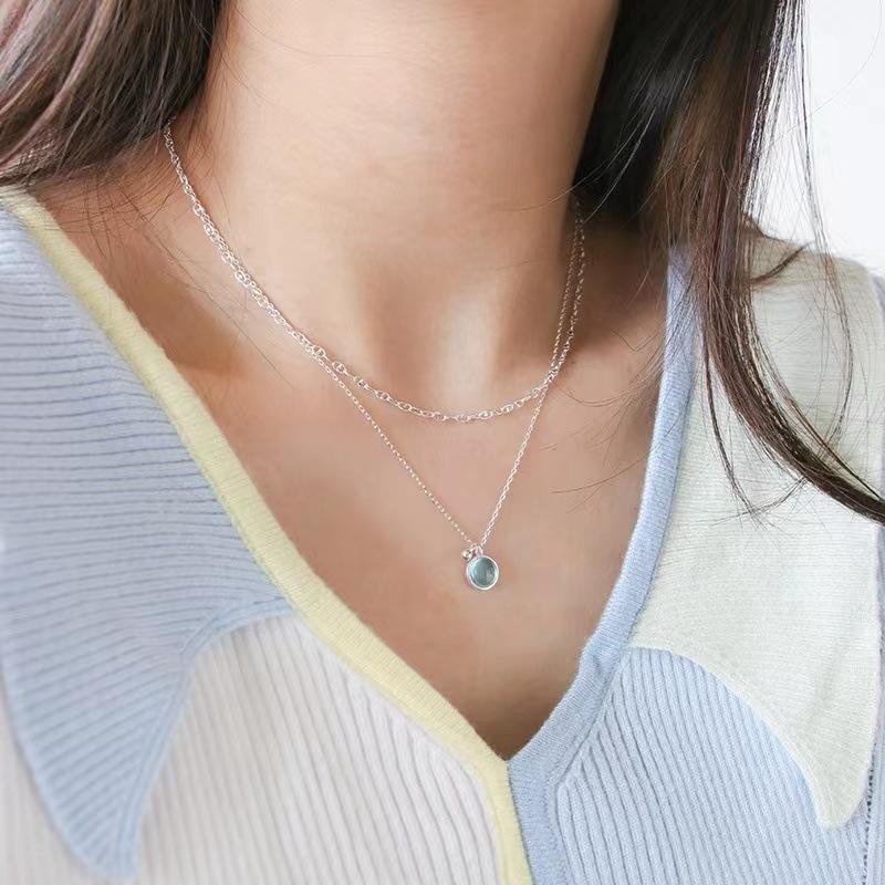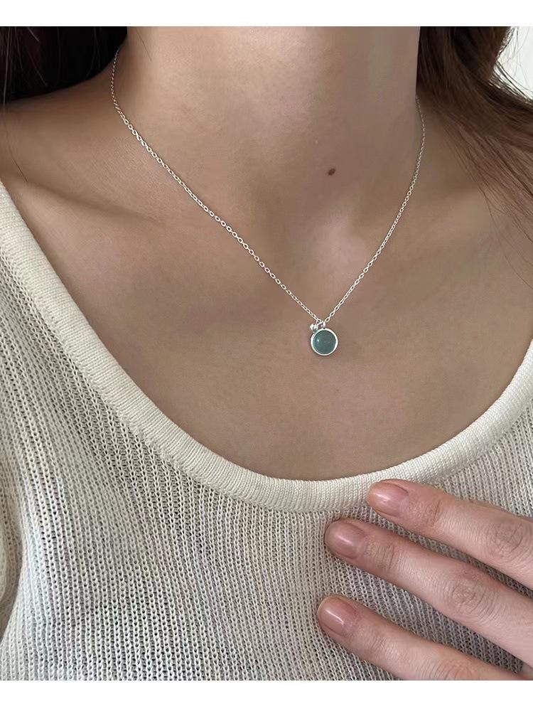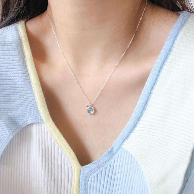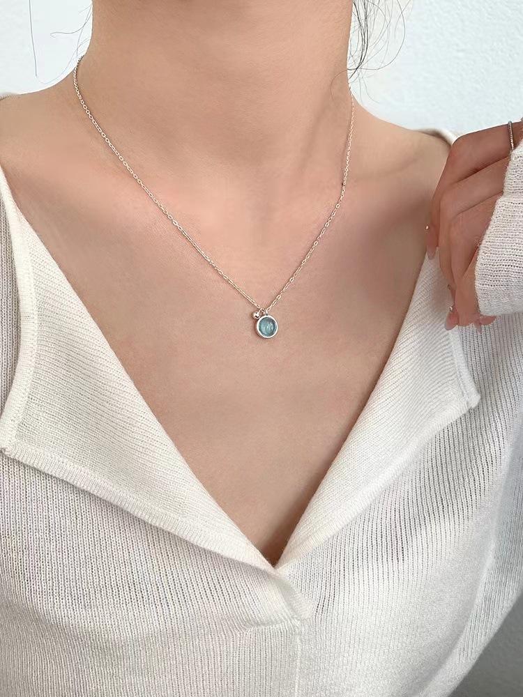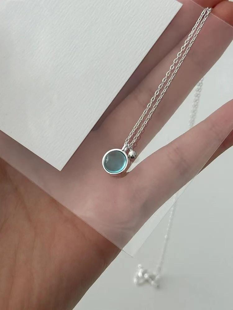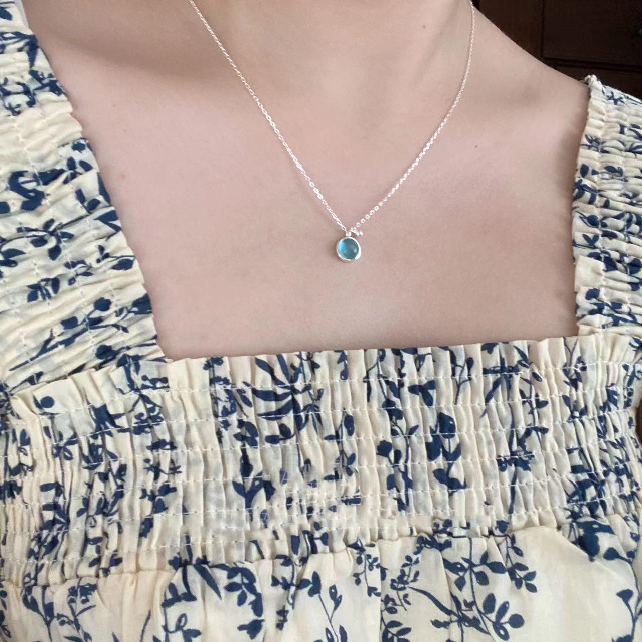 Collar sencillo de cristal azul para mujer, colgante redondo pequeño y fresco de verano, cadena de clavícula de lujo de alta gama, estilo minimalista que combina con todo.