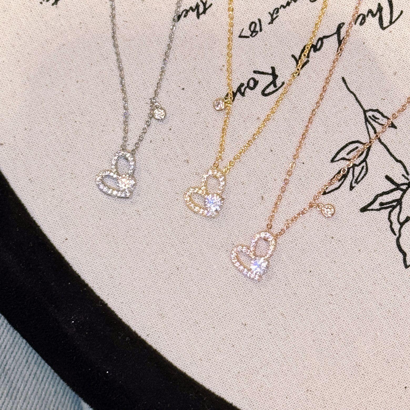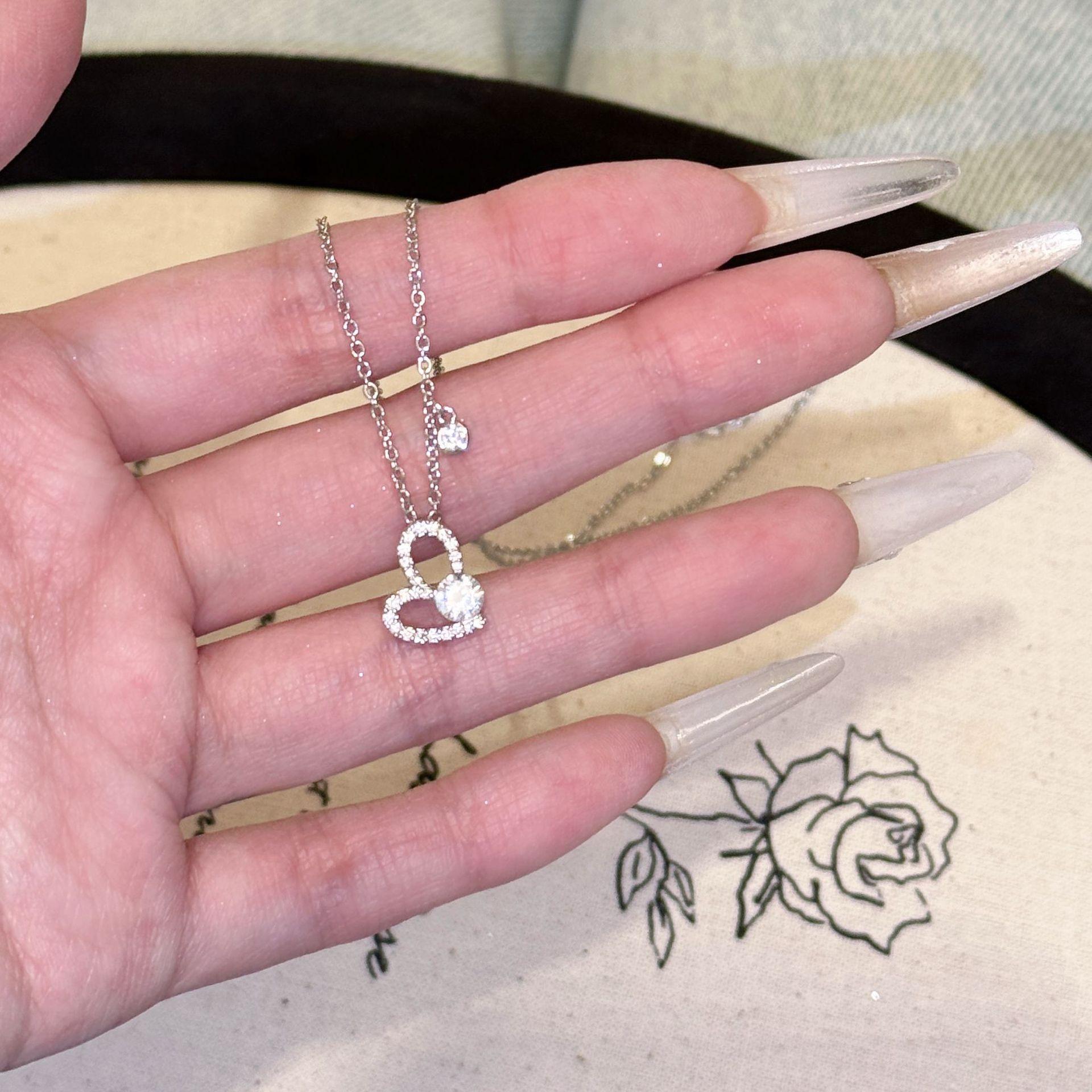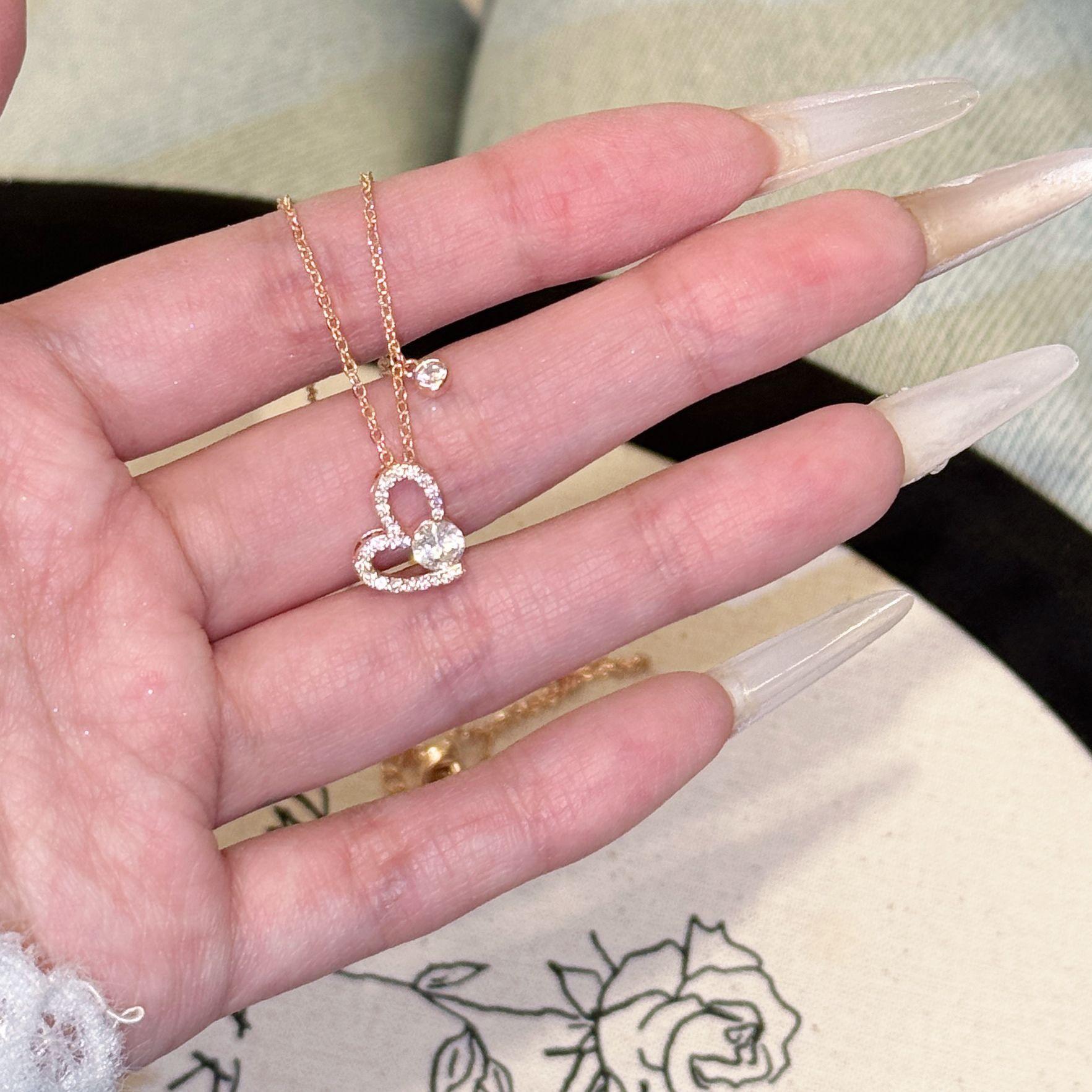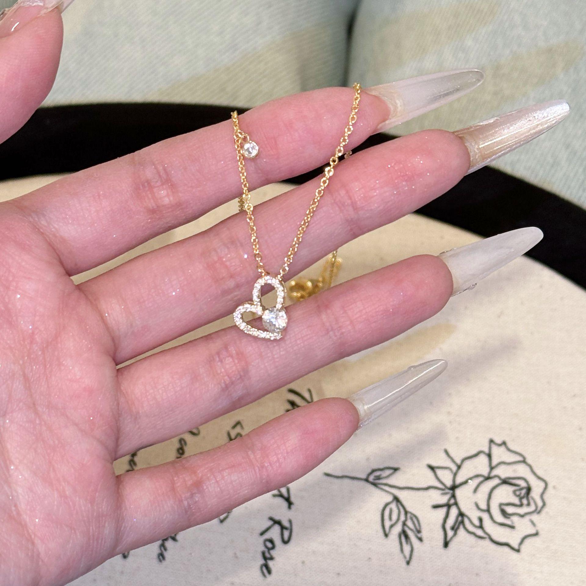Collar de Zircón en Forma de Corazón Cadena de Clavícula Nicho Versátil Diseño de Joyería de Alta Gama de Lujo Ligero Europeo y Americano Explosiones Transfronterizas