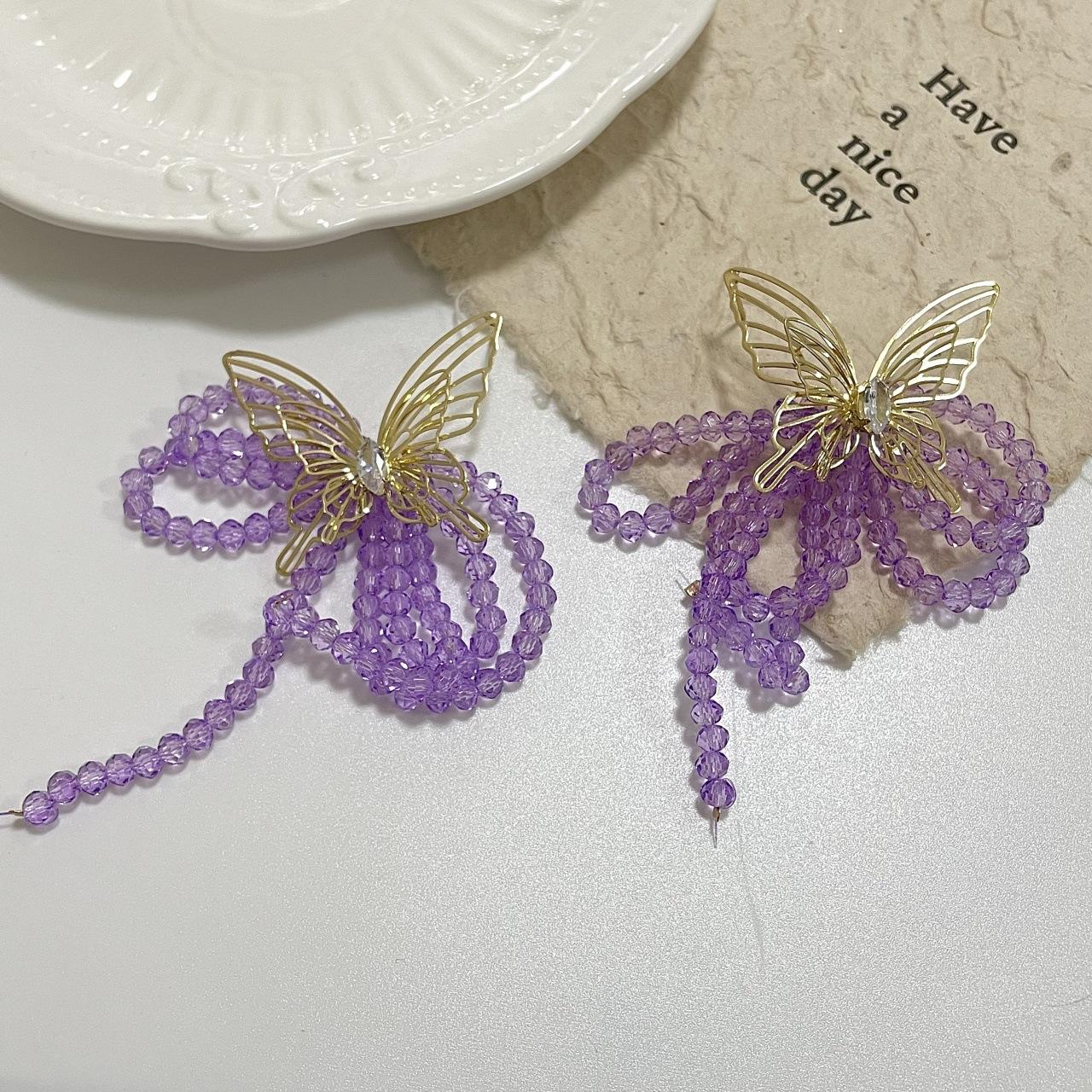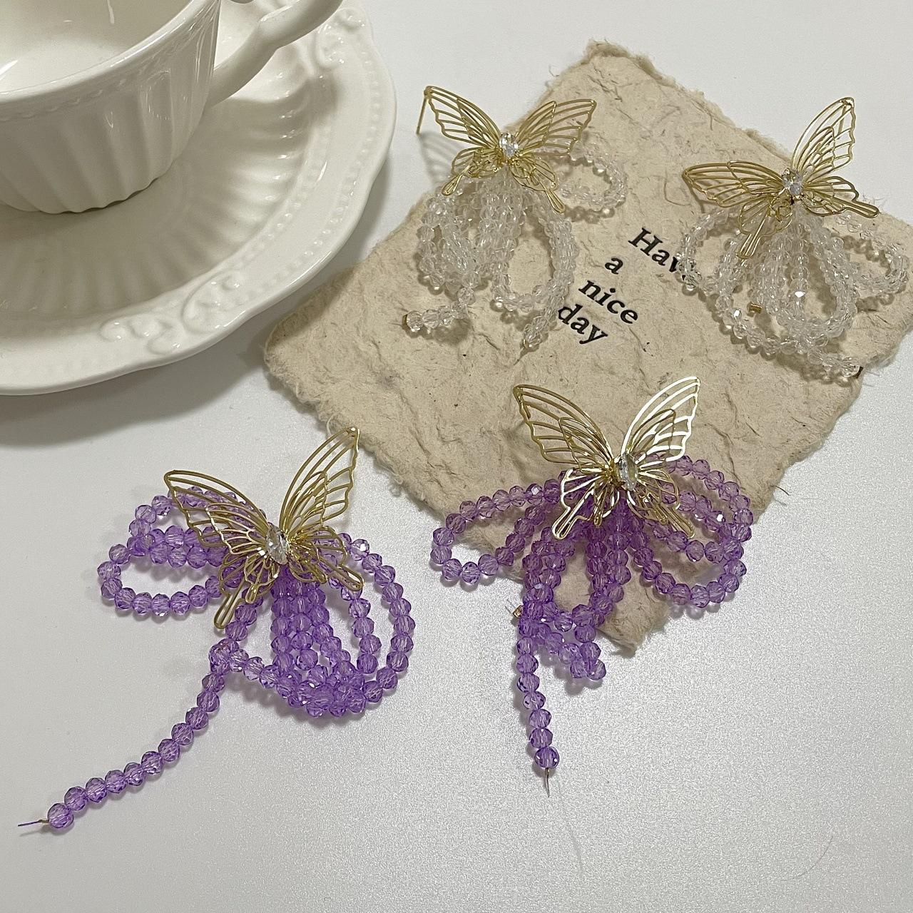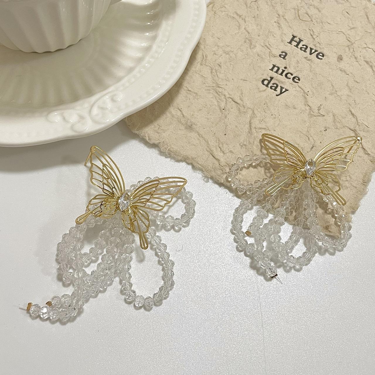 Pendientes Dulces Elegantes de Flor Calada con Cuentas de Cristal Estilo Bosque Estilo Pastoral Hermosos Pendientes de Moda Pendientes de Tendencia Nueva Tendencia