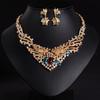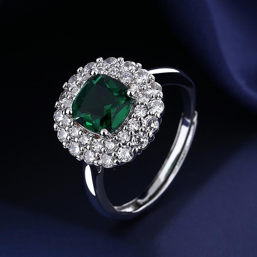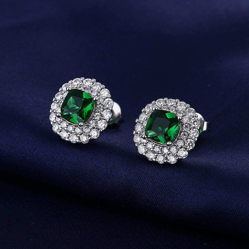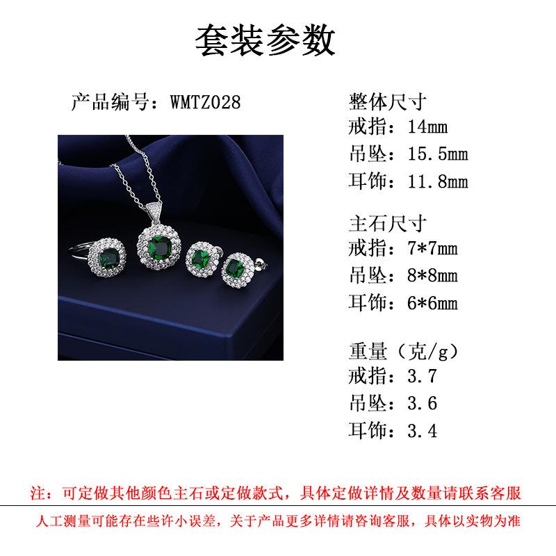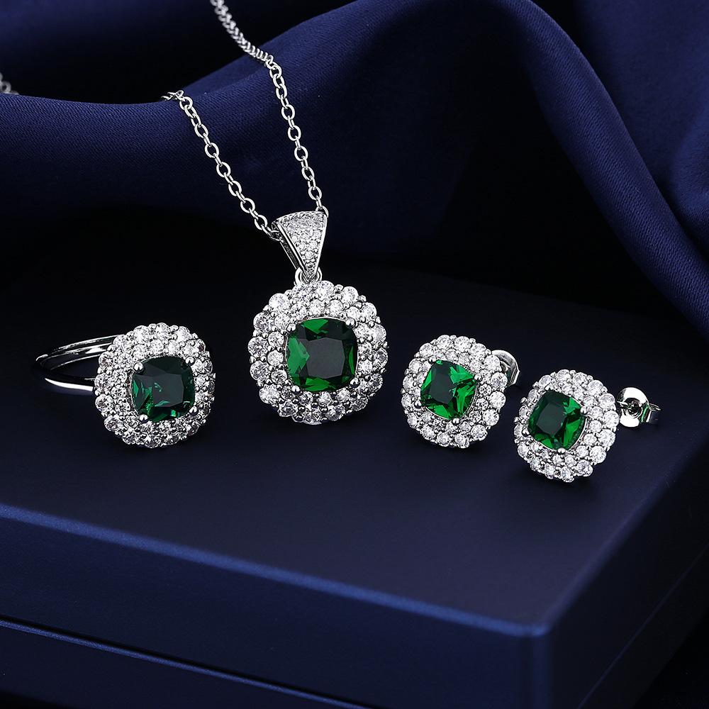 Juego de Joyería de Tres Piezas con Gema Cuadrada de Color Joyería de Alta Gama Collar Verde Anillo Aretes Colgante para Mujer Zircón Venta al por Mayor