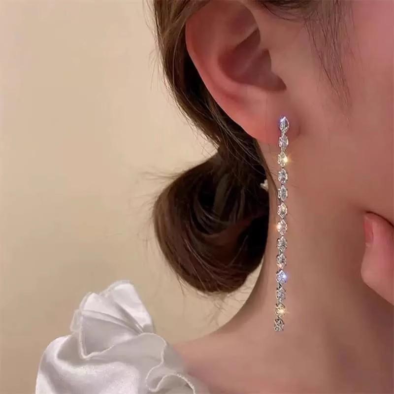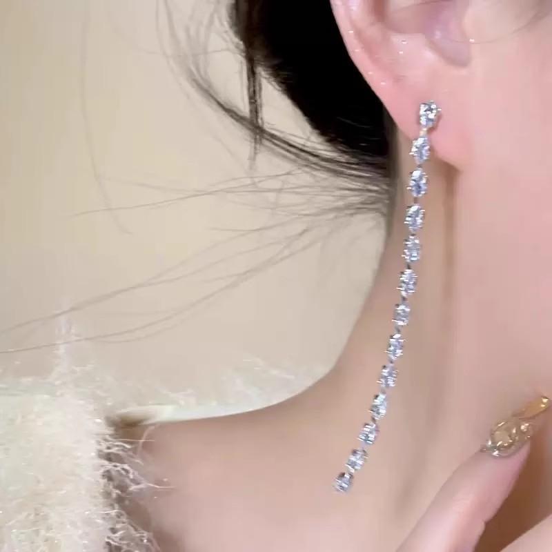 Nuevos Aretes de Borla de Circonita de Cristal para Mujer Aretes Largos de Temperamento Aretes Colgantes de Diseño Nicho Aretes de Botón de Lujo Ligero de Alta Gama
