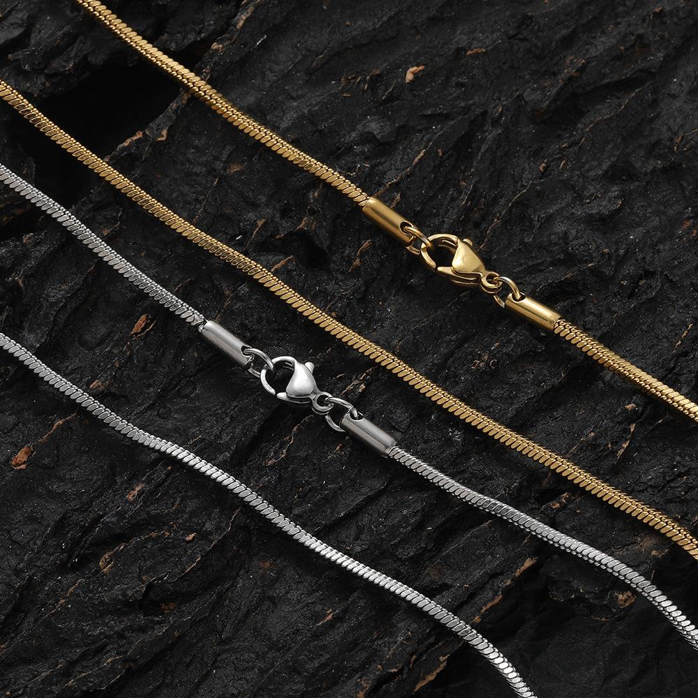 Cadena cuadrada de serpiente de 2 mm cadena de acero inoxidable collar hip hop europeo y americano cadena cuadrada de serpiente colgante de acero dorado cadena de joyería