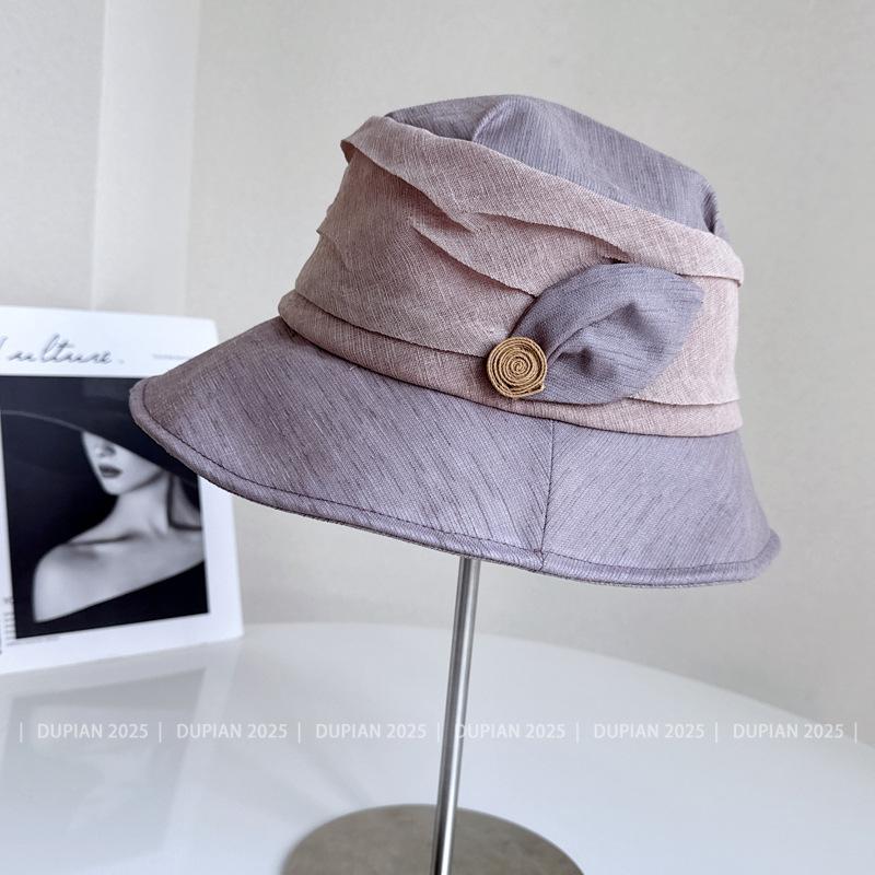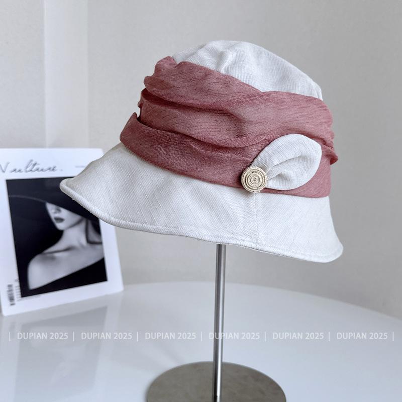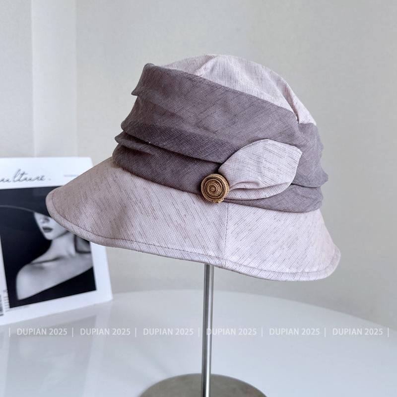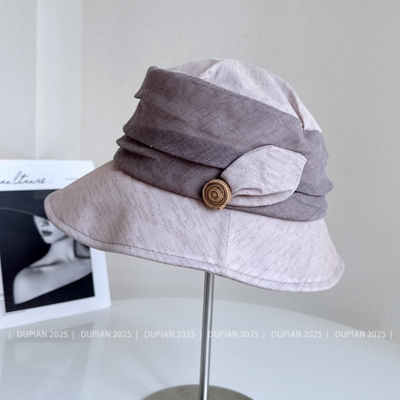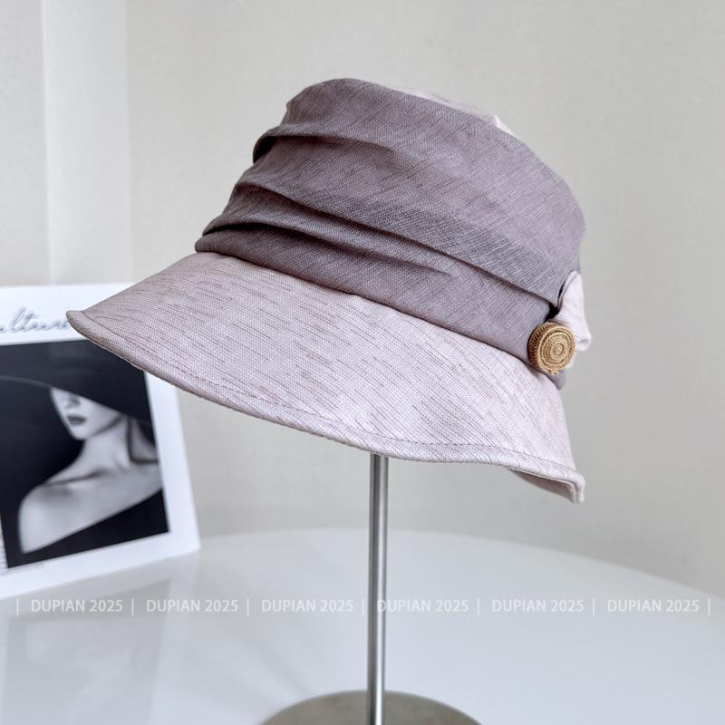 Elegante Sombrero de Cubo de Moda con Ala de Bloques de Color al Estilo Japonés para Mujer, Sombrero de Tela Elegante Versátil de Verano para Vacaciones, Viajes, Protección Solar, Sombrero Cloche de Moda