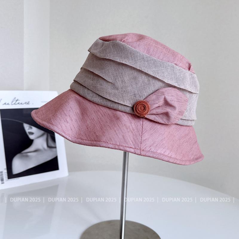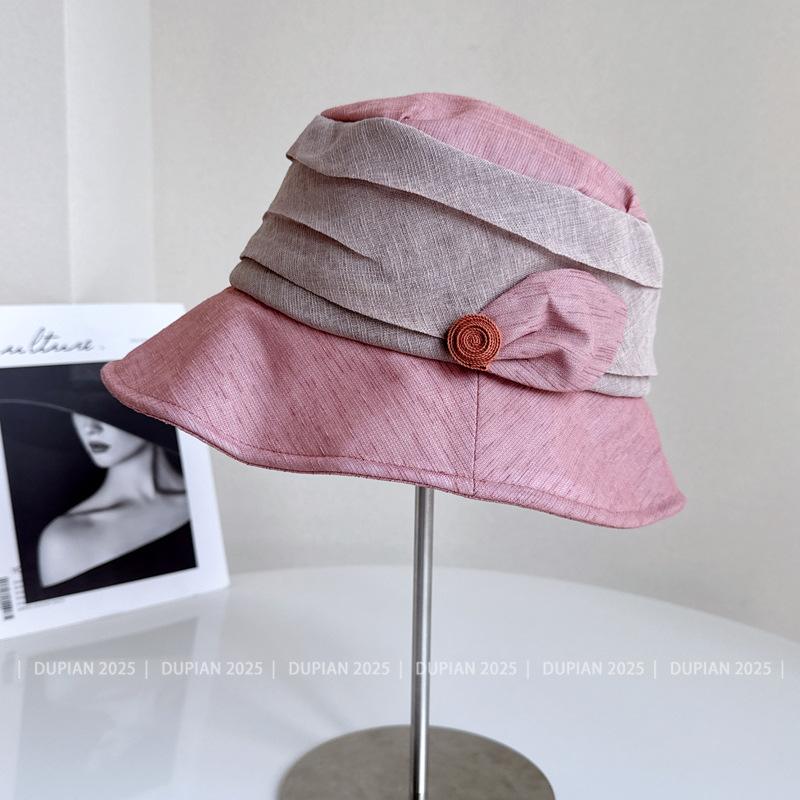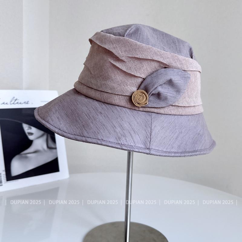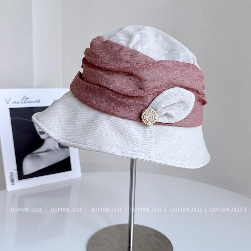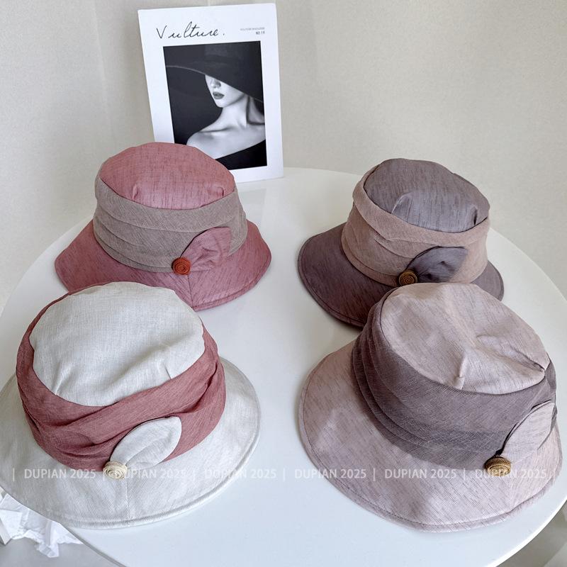 Elegante Sombrero de Cubo de Moda con Ala de Bloques de Color al Estilo Japonés para Mujer, Sombrero de Tela Elegante Versátil de Verano para Vacaciones, Viajes, Protección Solar, Sombrero Cloche de Moda