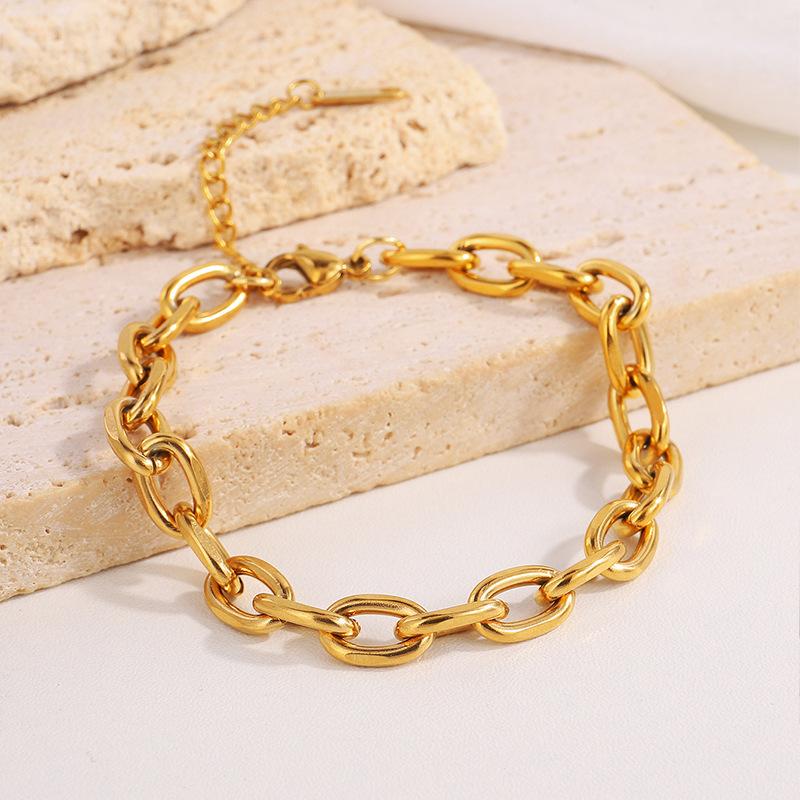 Joyería Lele Estilo INS europeo y americano Cadena chapada en oro de 18K Pulsera de acero inoxidable Moda versátil transfronteriza Pulsera que no se desvanece