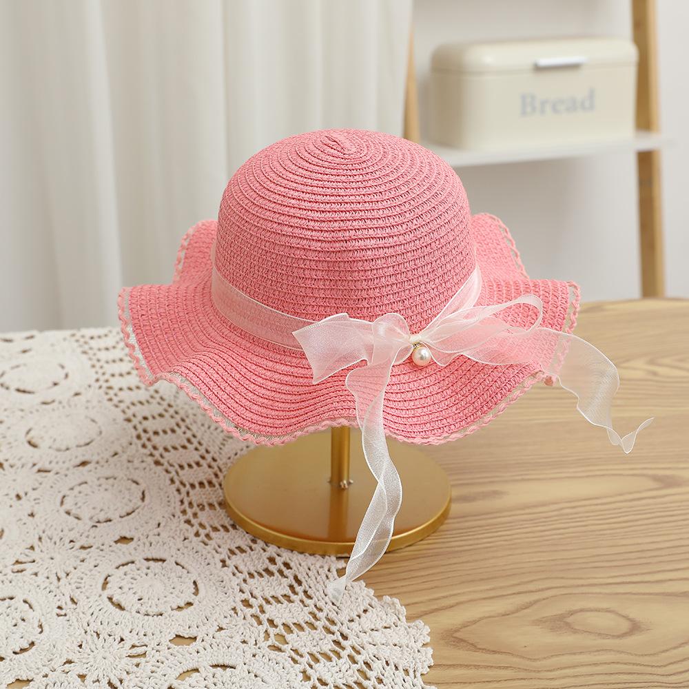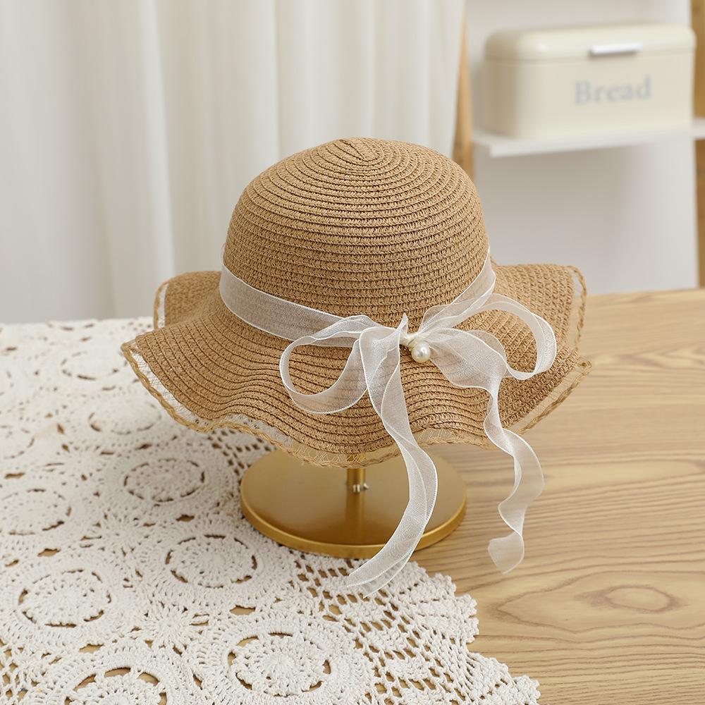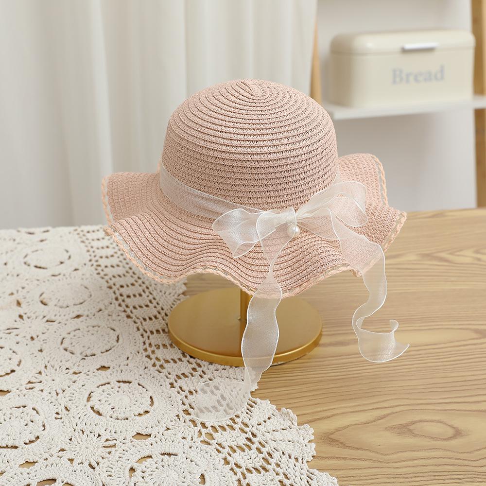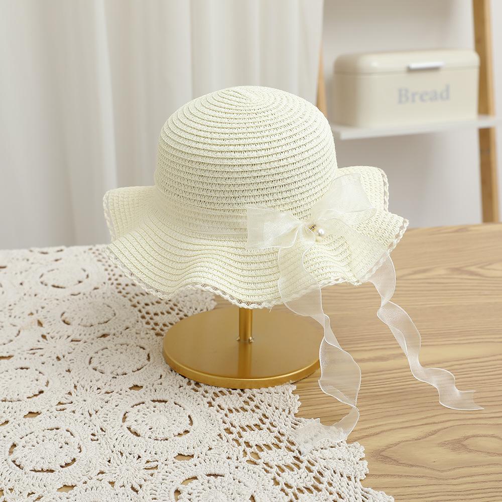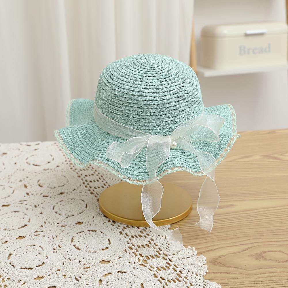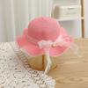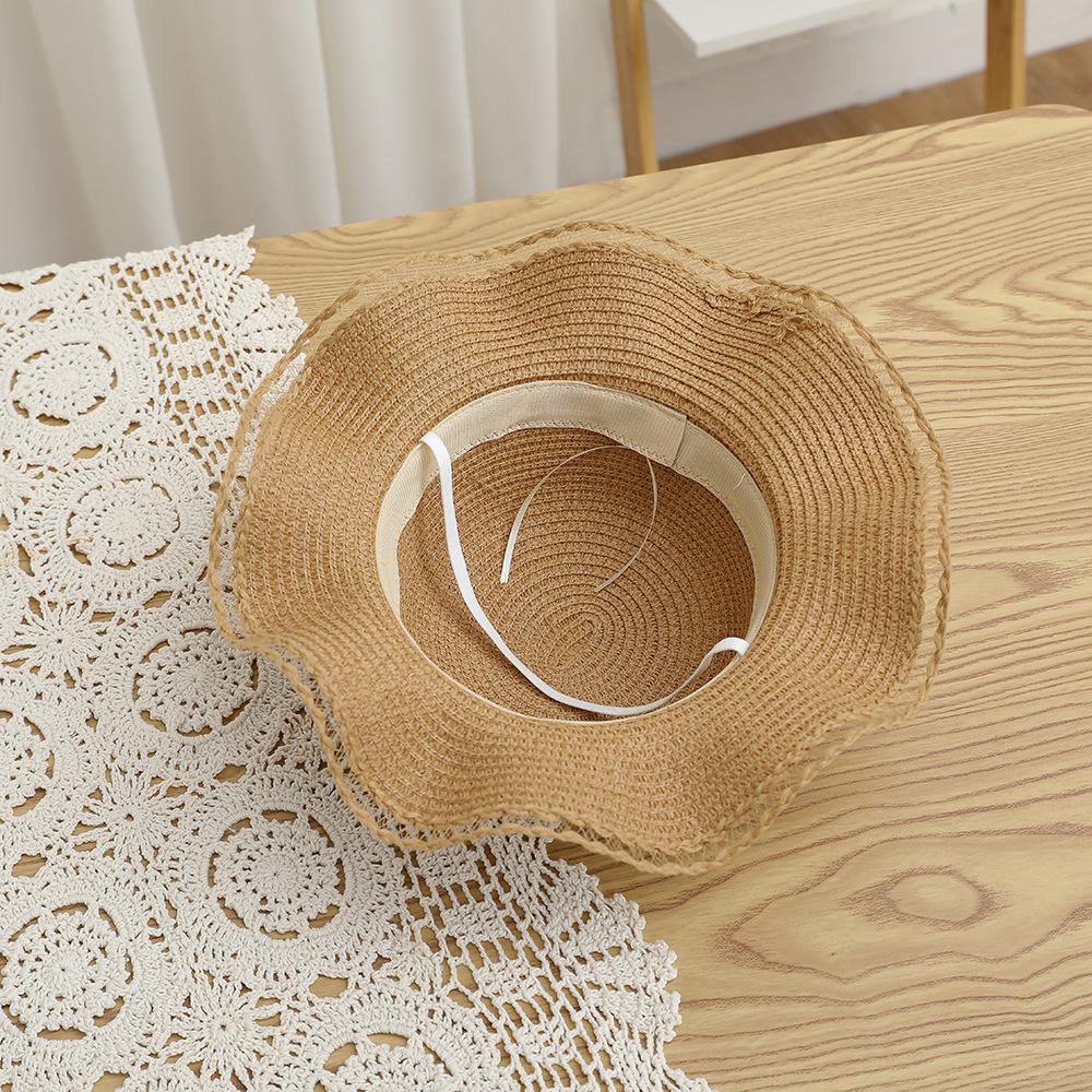 Sombrero de Paja de Verano para Niños Encaje Ondulado Sombrero de Paja Bolsa Set de Dos Piezas Estilo Extranjero Lindo Flor Sombrero para el Sol Protección Solar