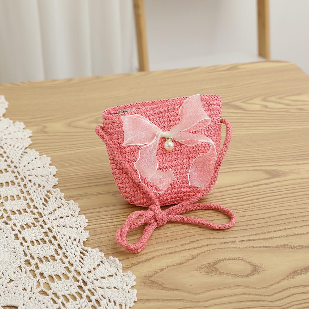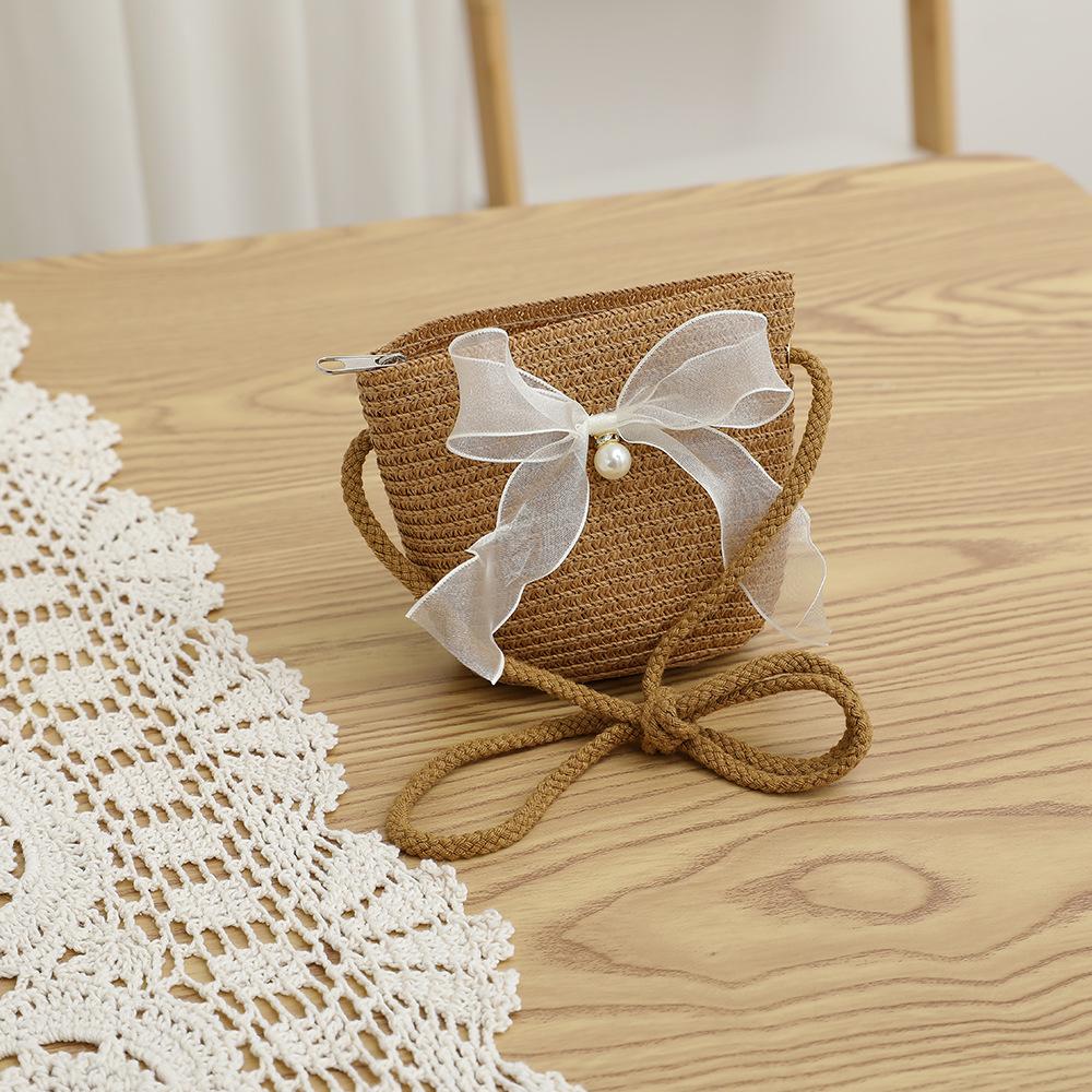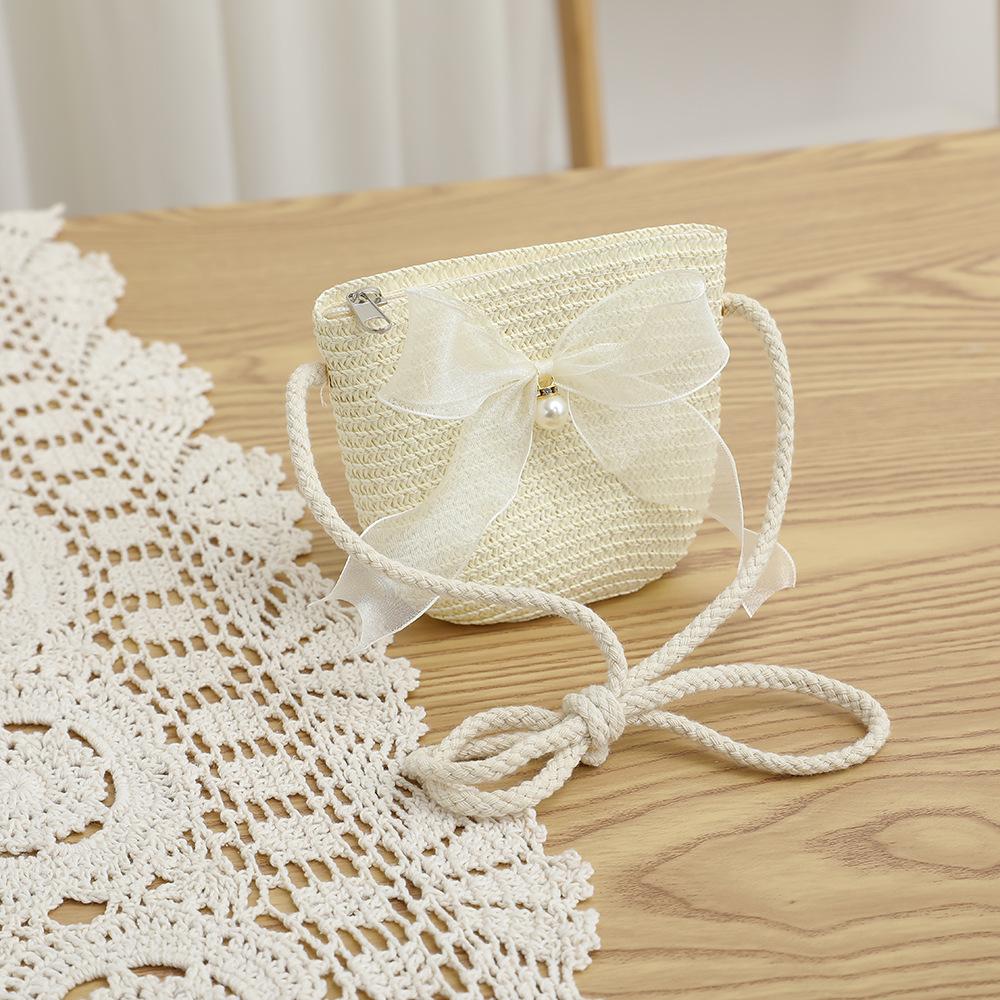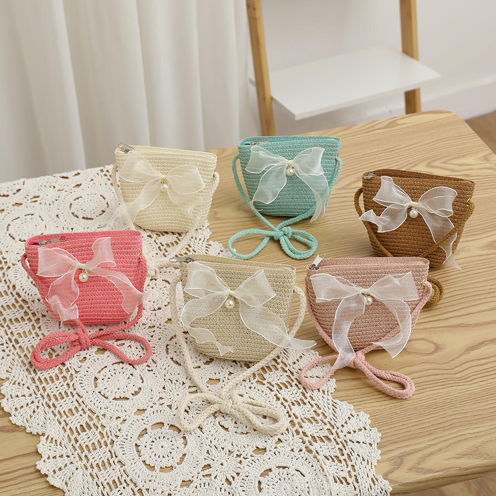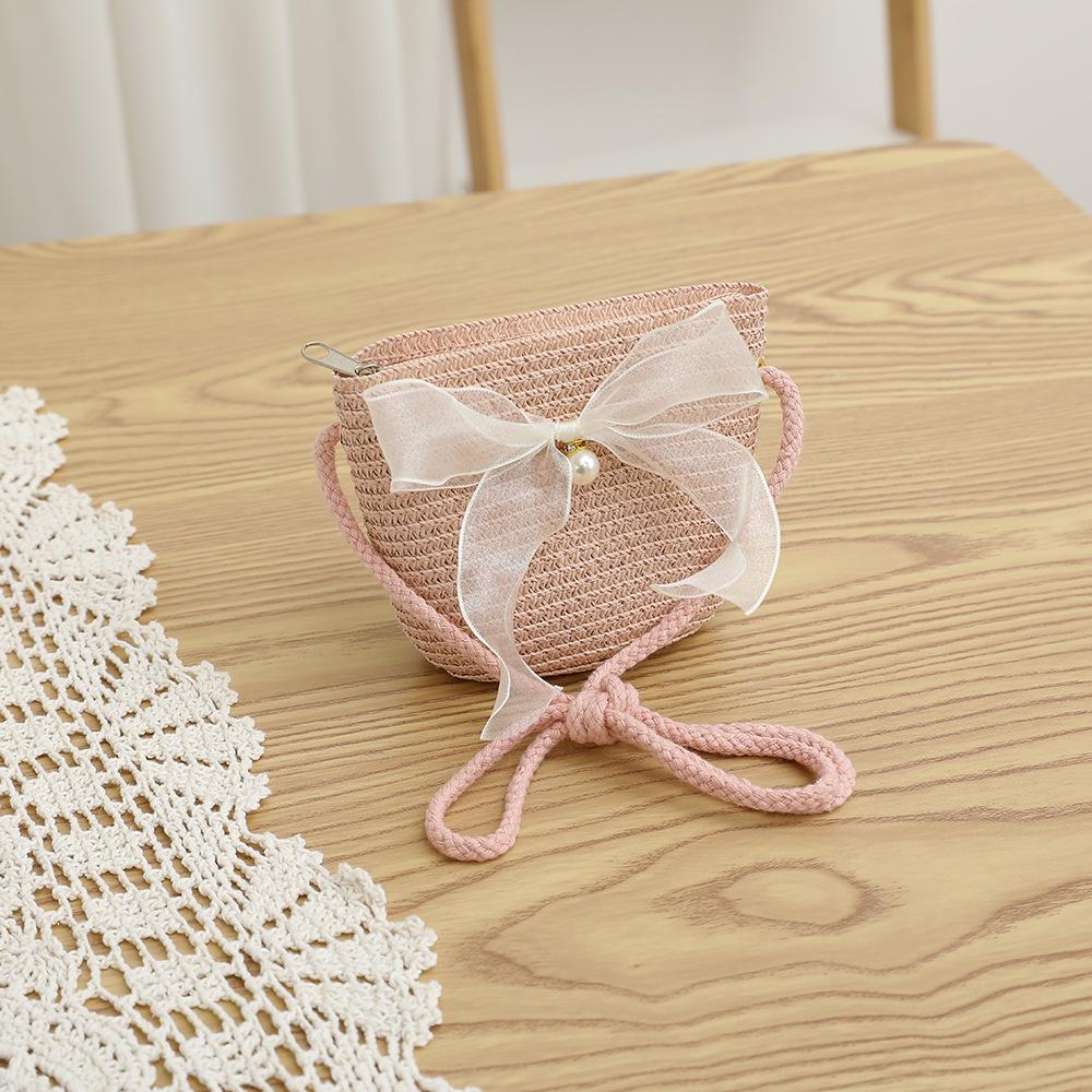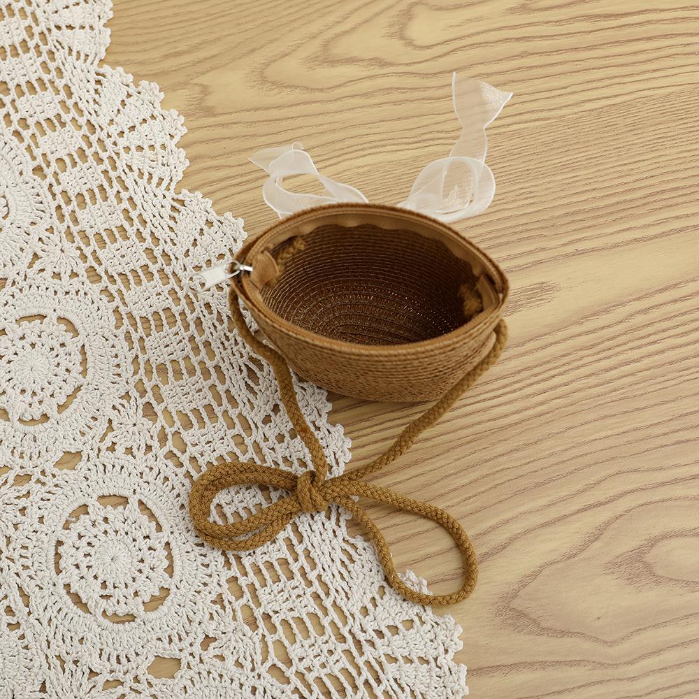 Sombrero de Paja de Verano para Niños Encaje Ondulado Sombrero de Paja Bolsa Set de Dos Piezas Estilo Extranjero Lindo Flor Sombrero para el Sol Protección Solar