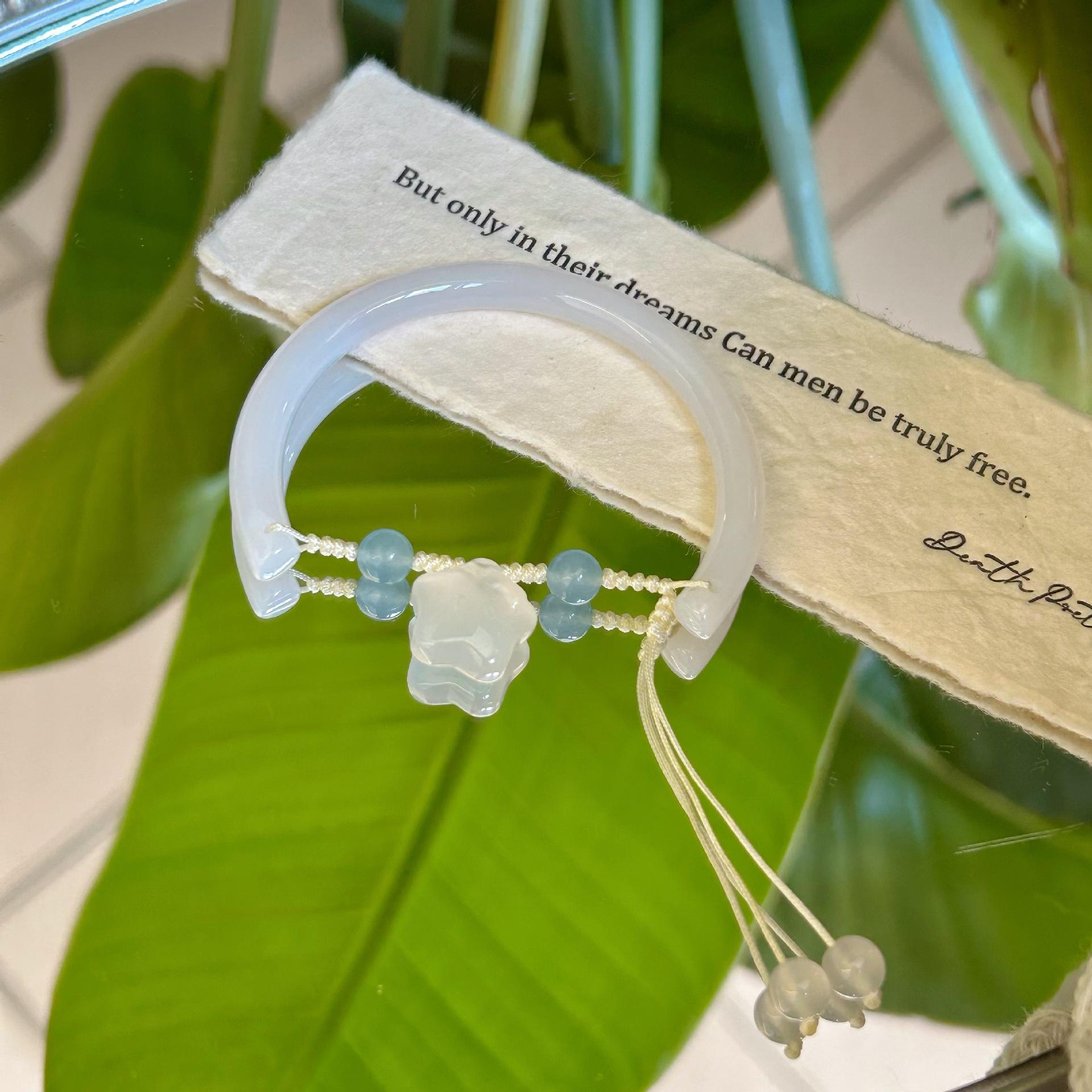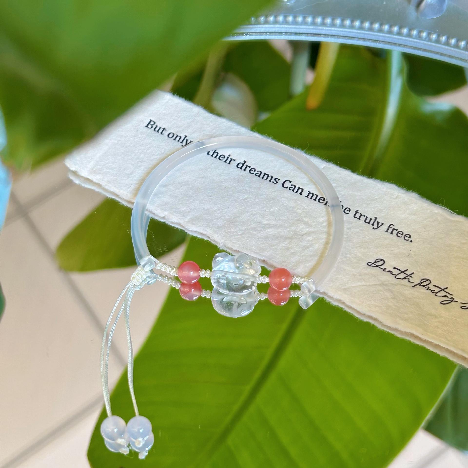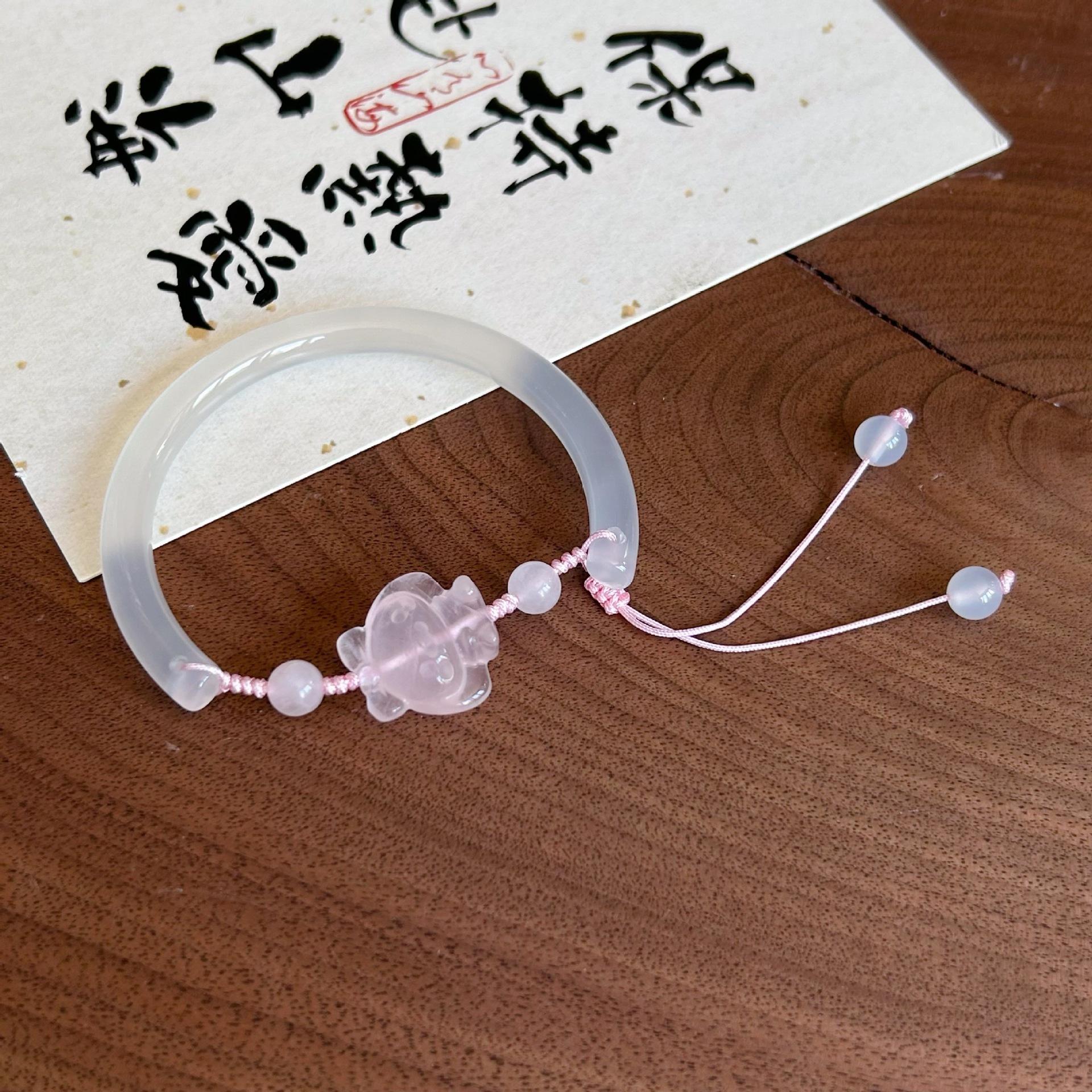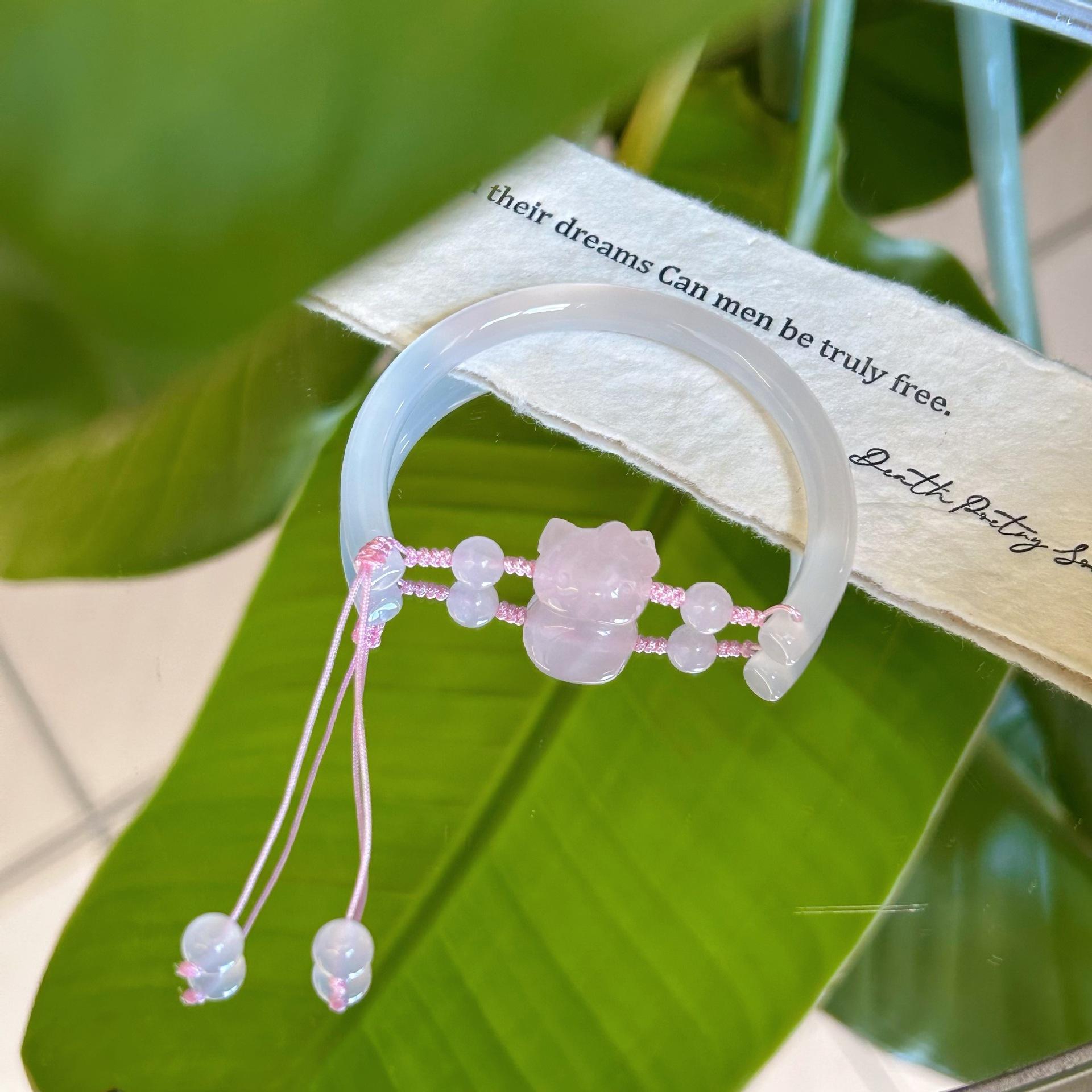 Calcedonia Natural Media Pulsera Diseño Original Pequeña Fresca Lindo Gato Puro Ajustable Tejida a Mano Verano Tejida Media Pulsera
