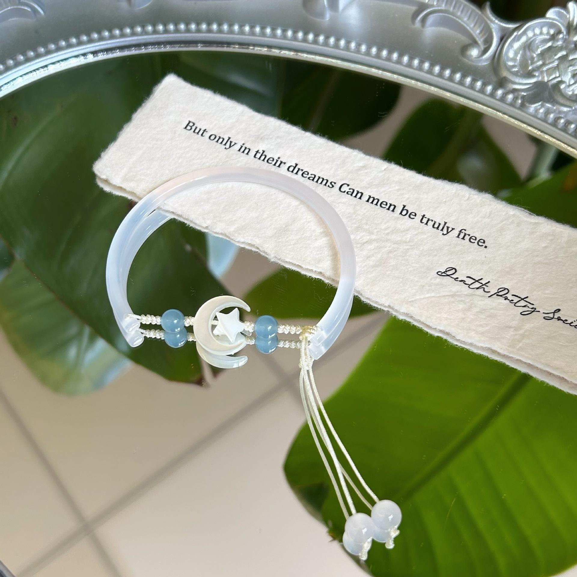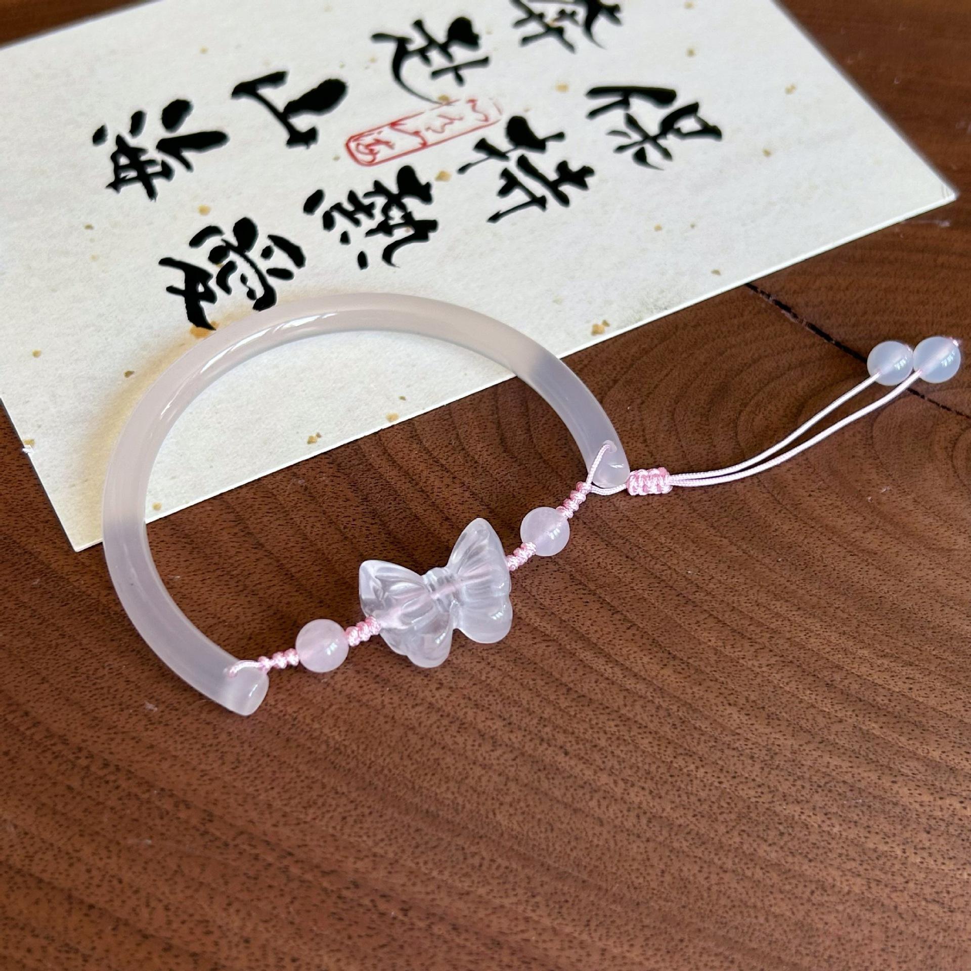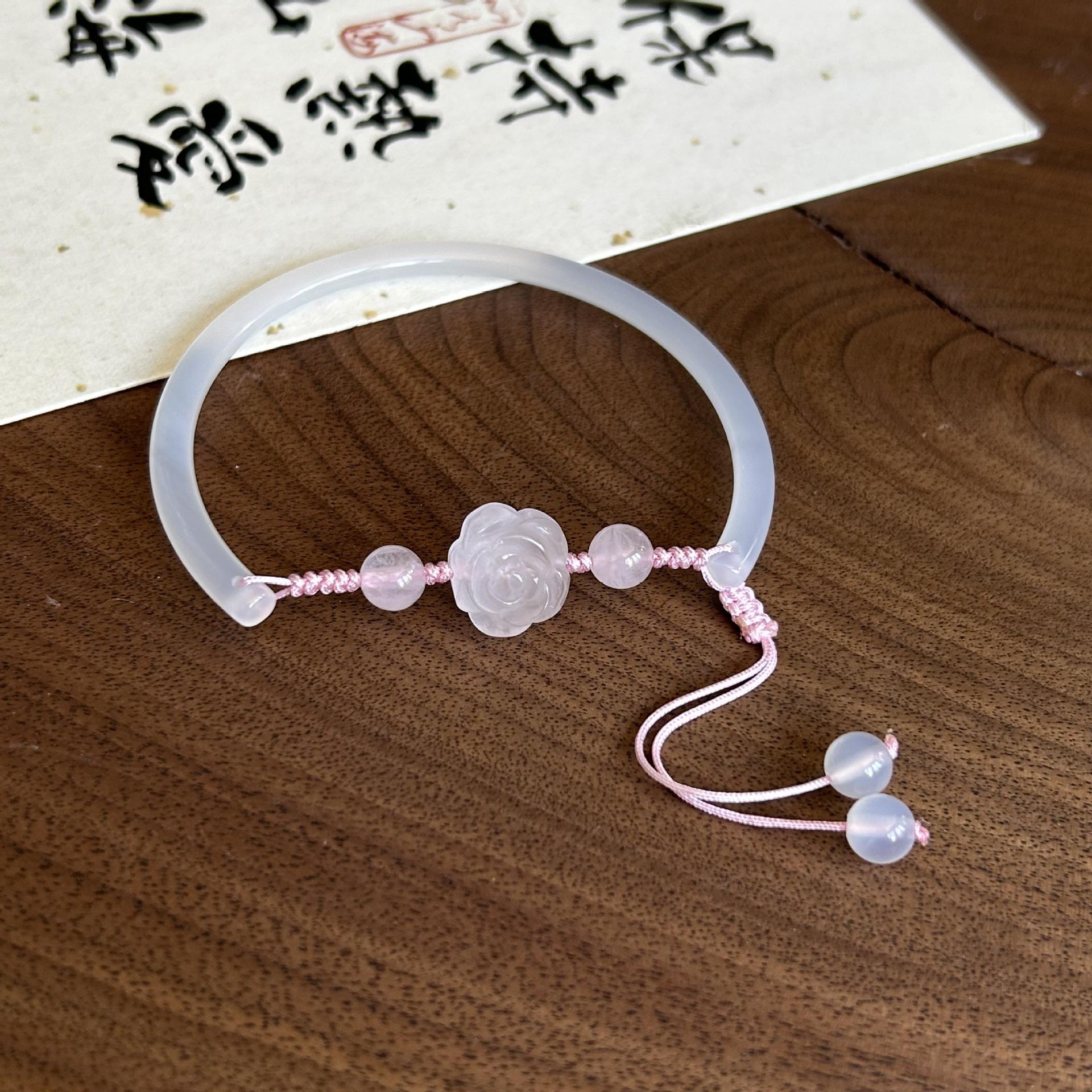 Calcedonia Natural Media Pulsera Diseño Original Pequeña Fresca Lindo Gato Puro Ajustable Tejida a Mano Verano Tejida Media Pulsera