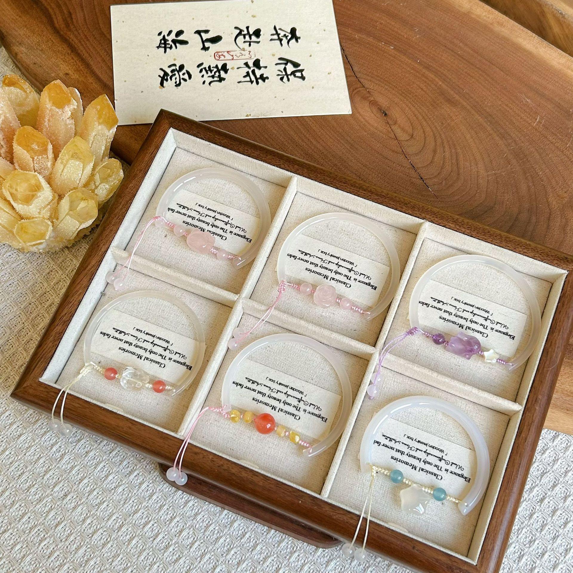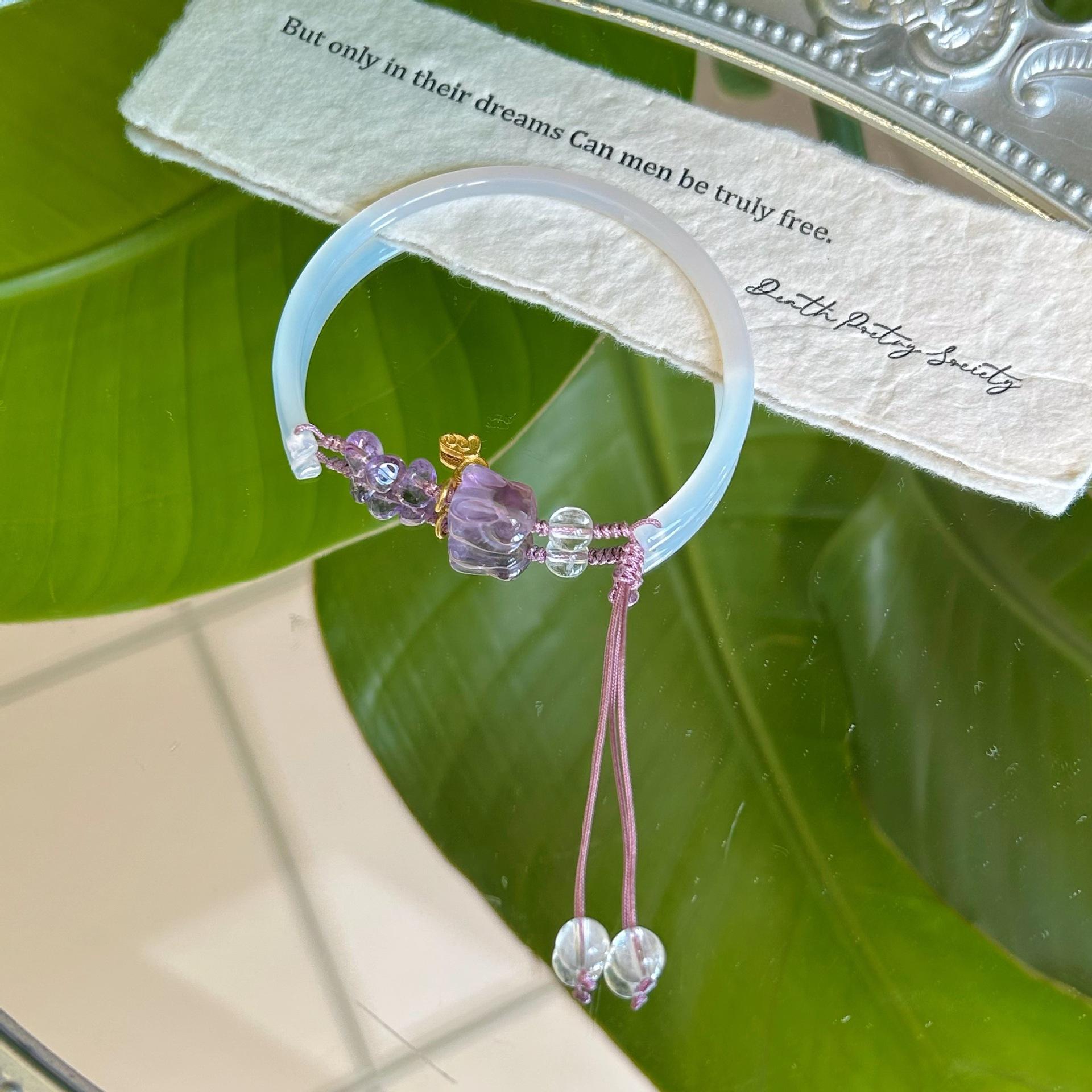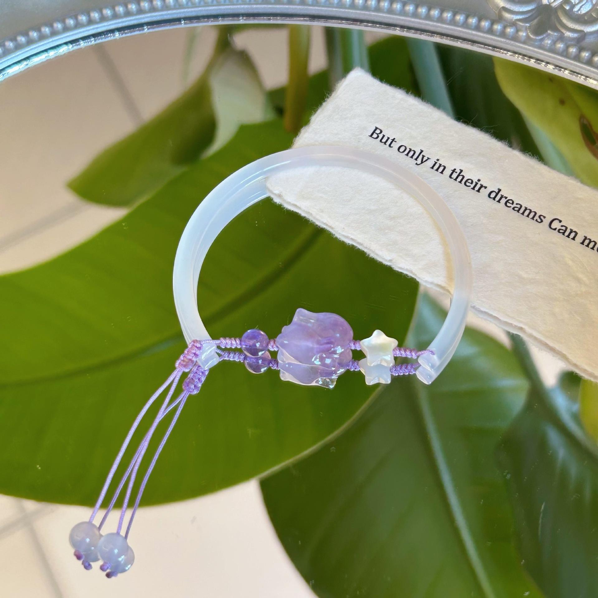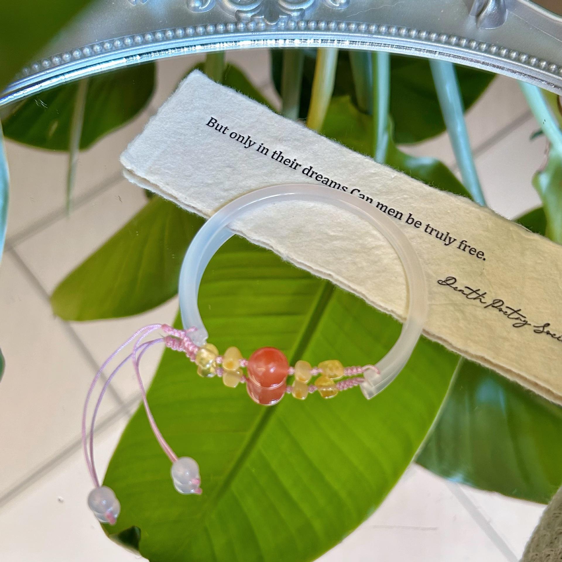 Calcedonia Natural Media Pulsera Diseño Original Pequeña Fresca Lindo Gato Puro Ajustable Tejida a Mano Verano Tejida Media Pulsera
