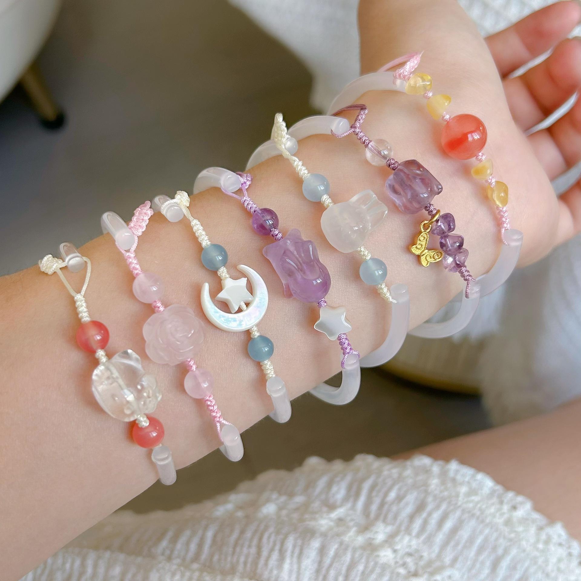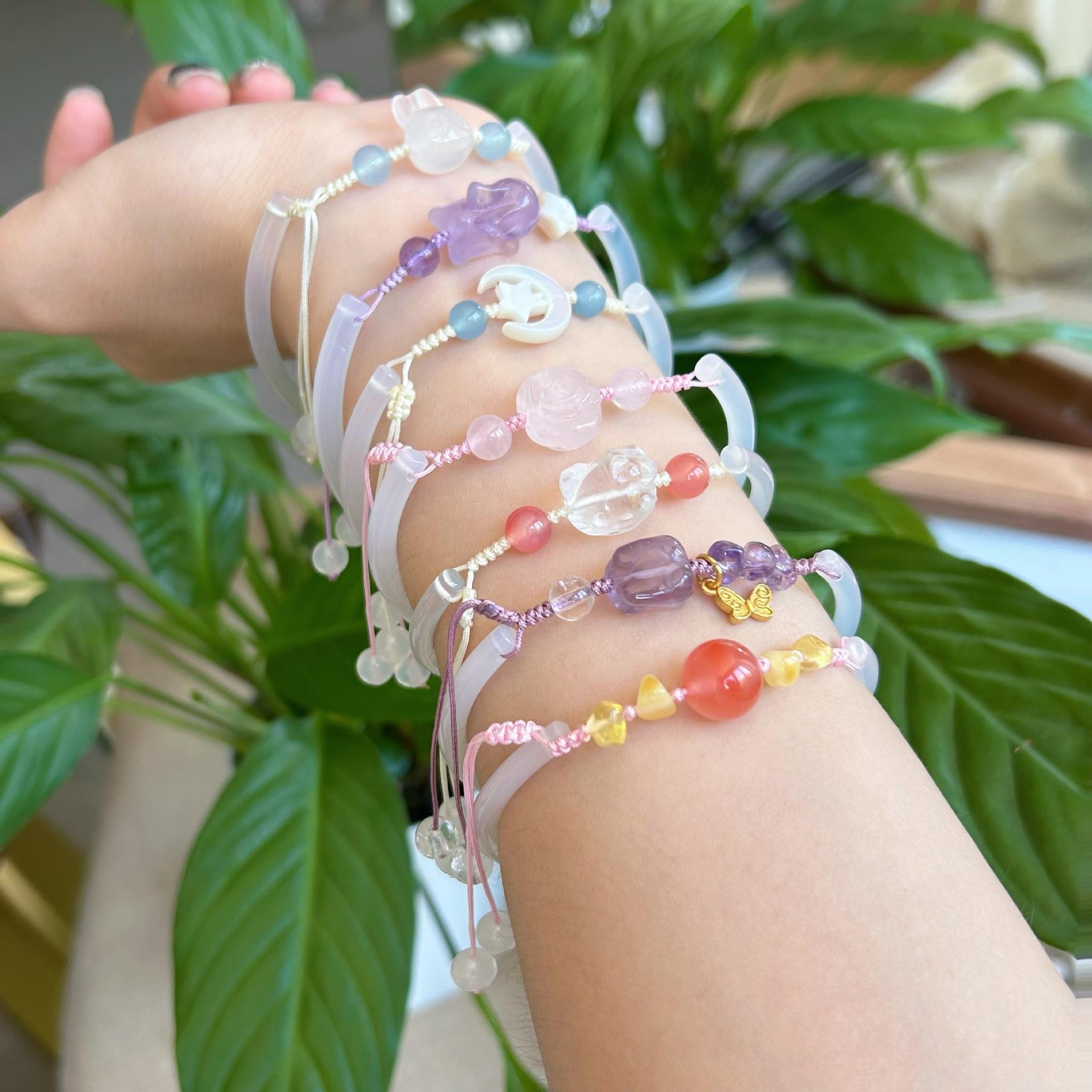 Compra Calcedonia Natural Media Pulsera Diseño Original Pequeña Fresca Lindo Gato Puro Ajustable Tejida a Mano Verano Tejida Media Pulsera al por mayor en Joom.pro