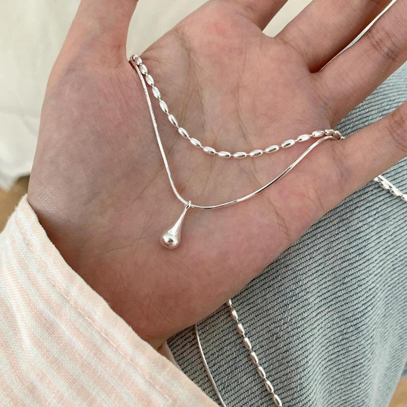 Collar con Colgante Ovalado de Gota de Agua de Doble Capa Estilo Coreano Simple de Alta Gama Cadena para Clavícula Moda y Elegante Joyería Versátil al por Mayor