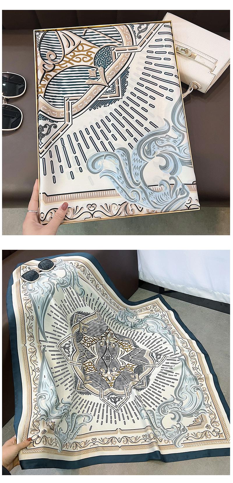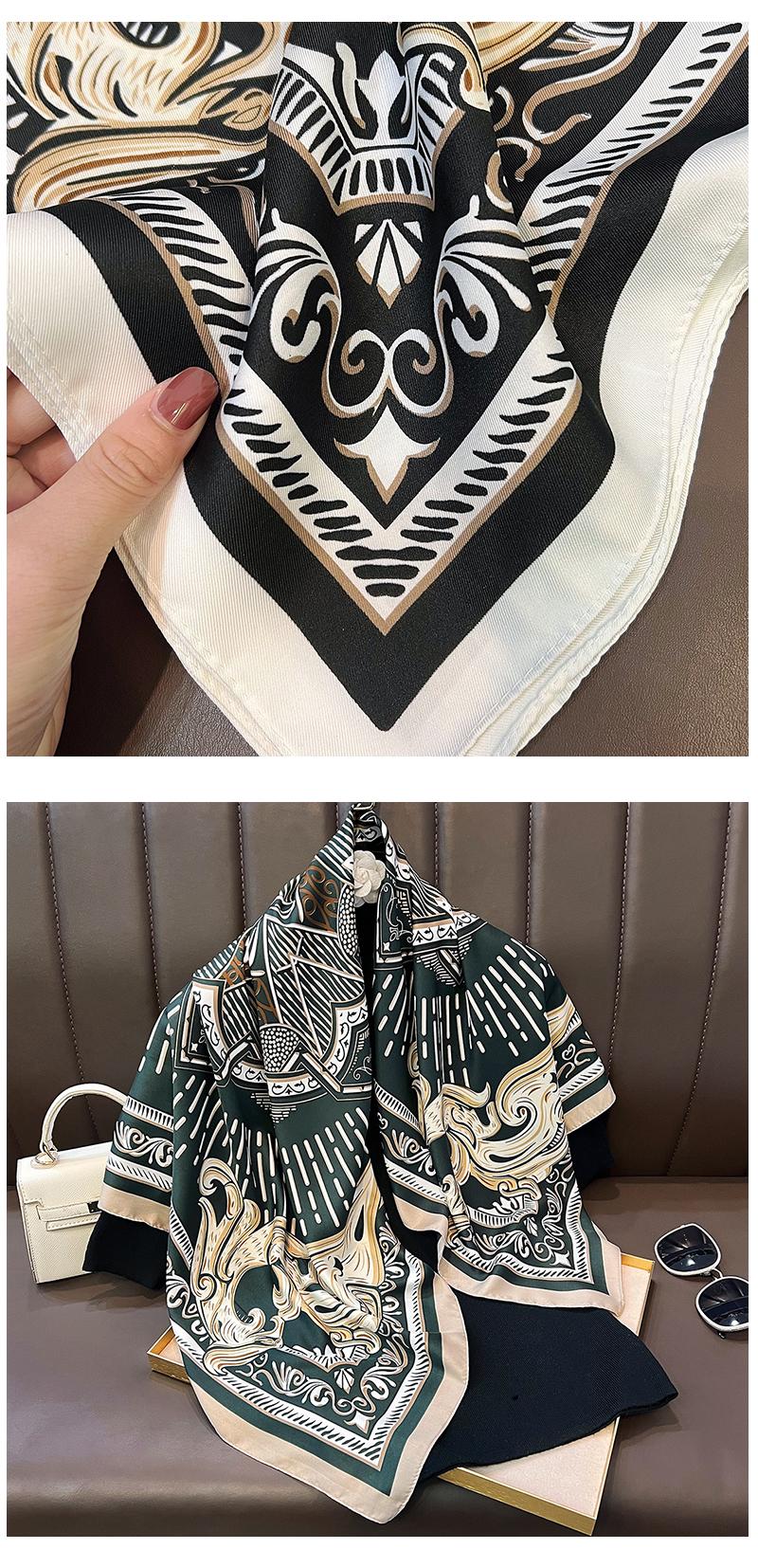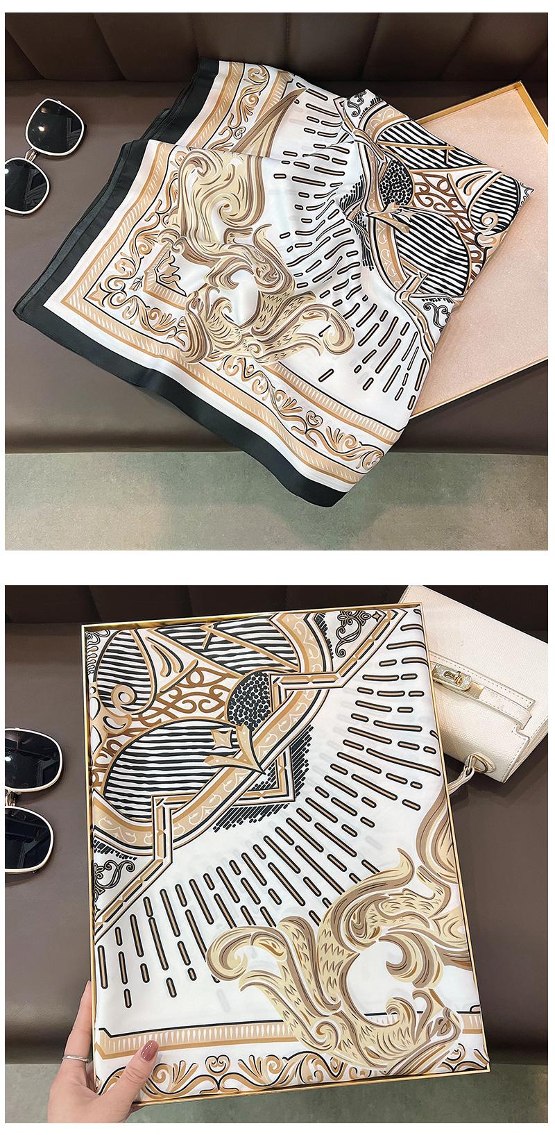 Nuevo Pañuelo Cuadrado Grande de Twill con Patrón Geométrico Estampado Primavera 2025 Protección para el Cuello Estilo Extranjero Decoración Corbata Bolsa Pañuelo Profesional