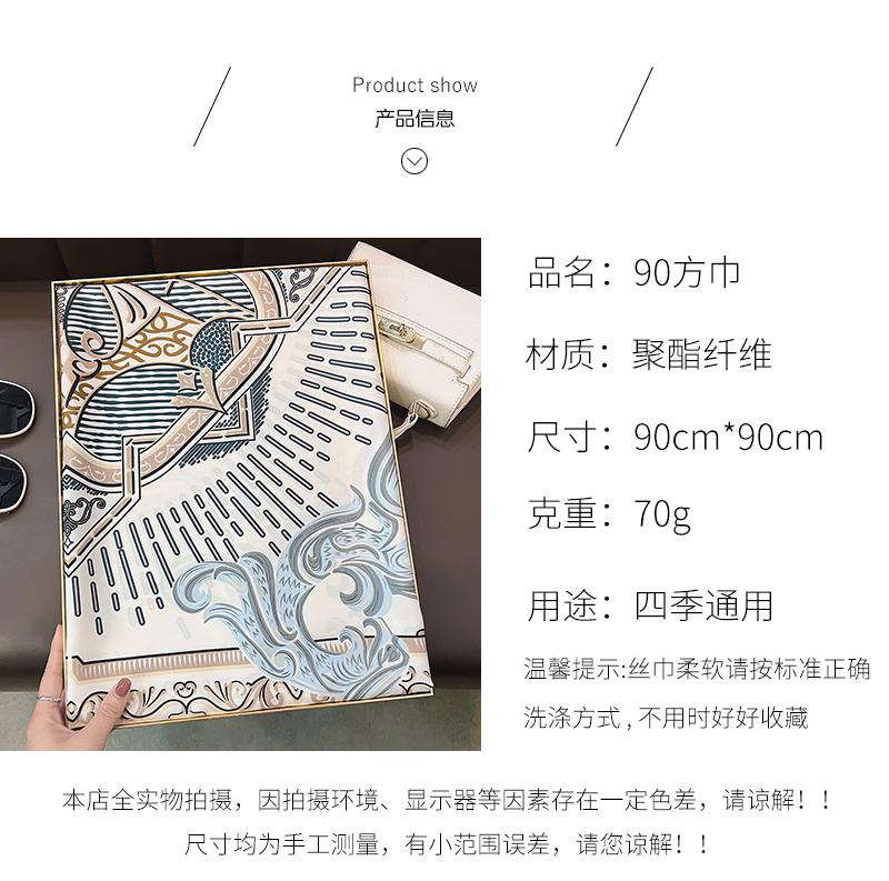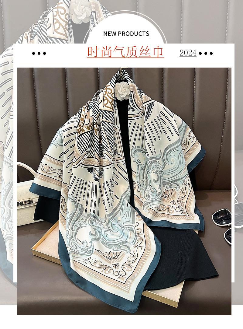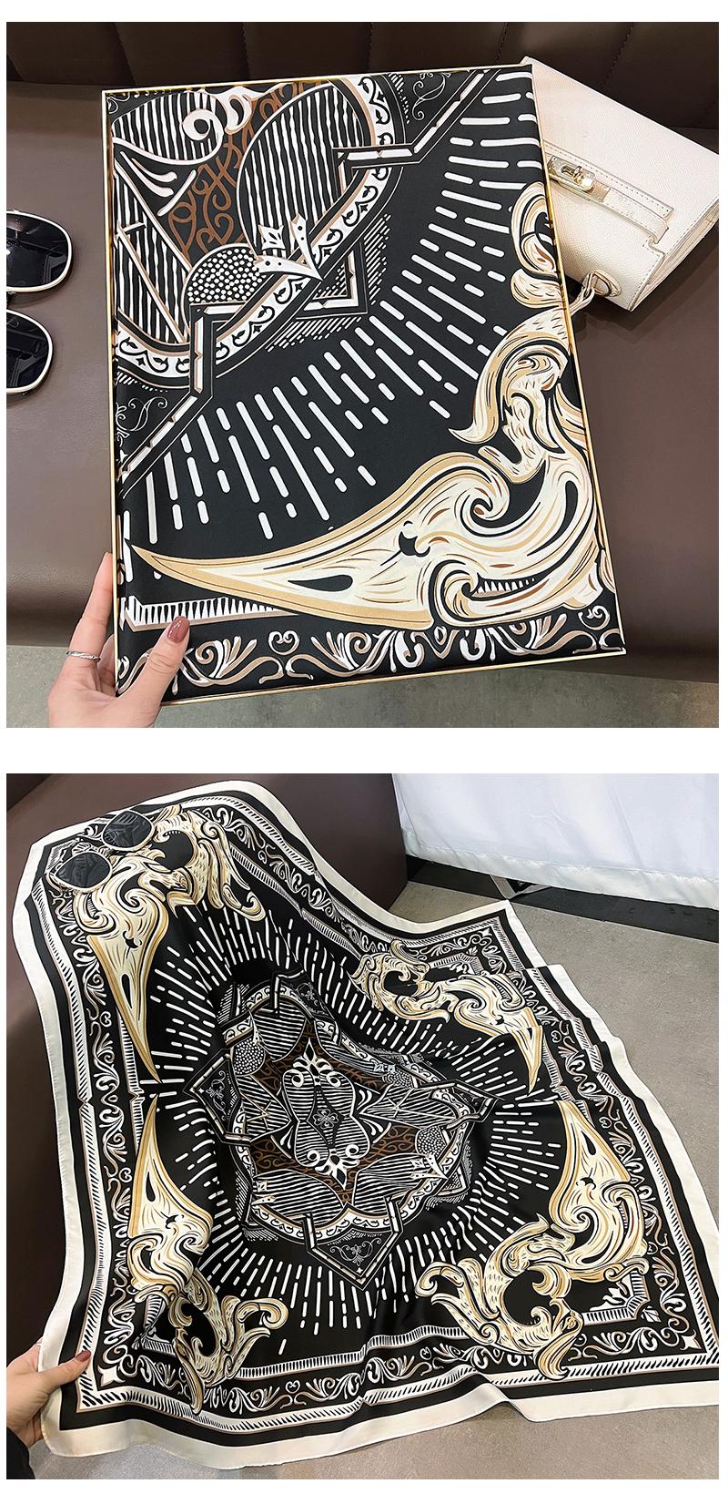 Nuevo Pañuelo Cuadrado Grande de Twill con Patrón Geométrico Estampado Primavera 2025 Protección para el Cuello Estilo Extranjero Decoración Corbata Bolsa Pañuelo Profesional