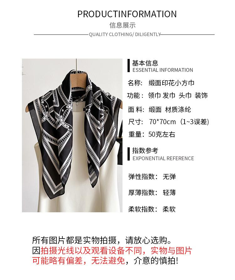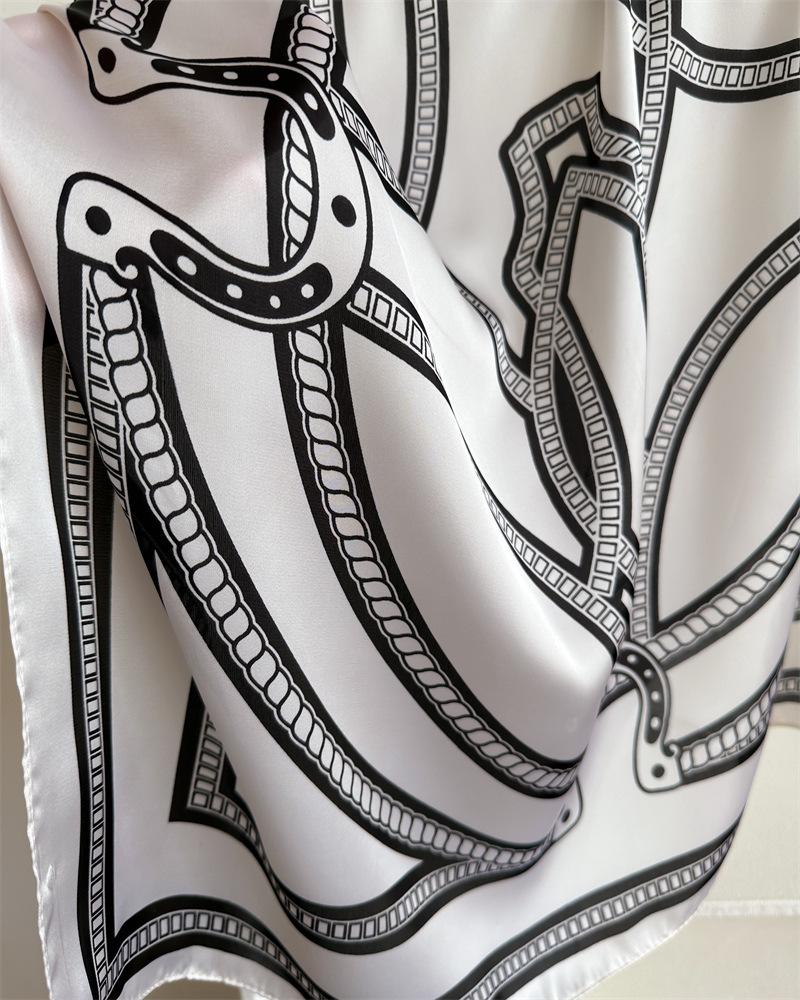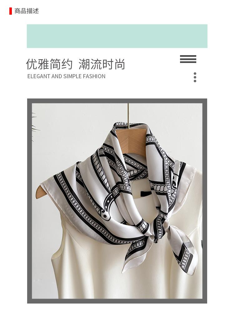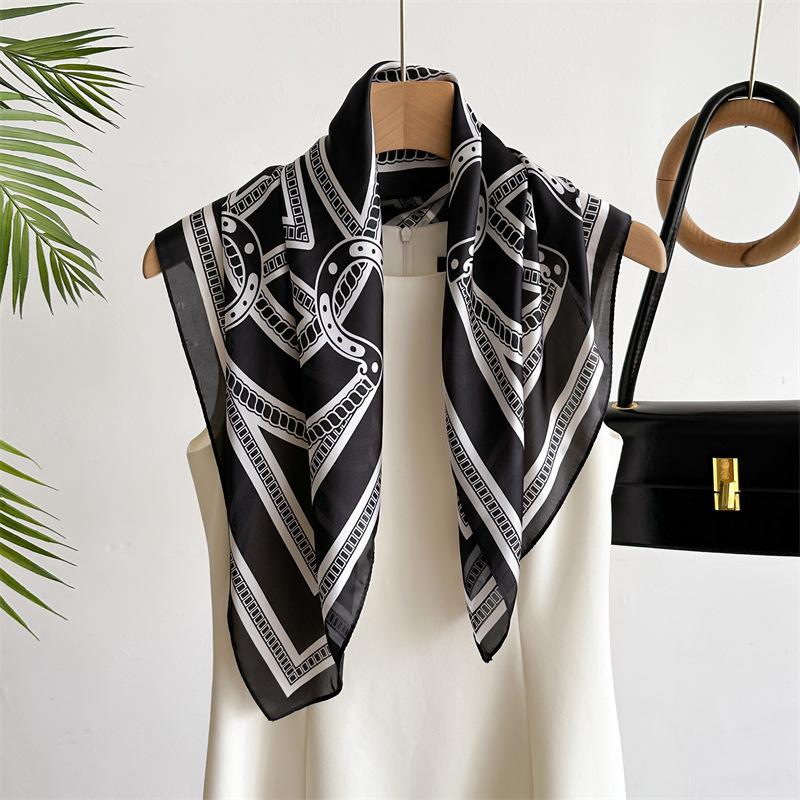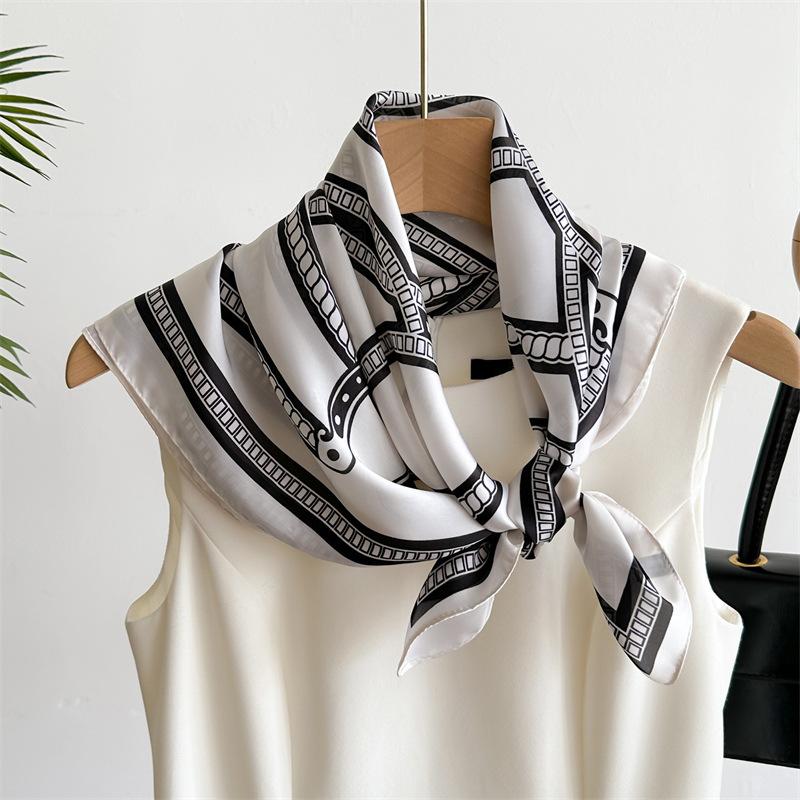 Compra Pañuelo cuadrado pequeño de estilo francés con cadena de lujo, estampado de seda, estilo elegante, para primavera y verano, para mujer al por mayor en Joom.pro
