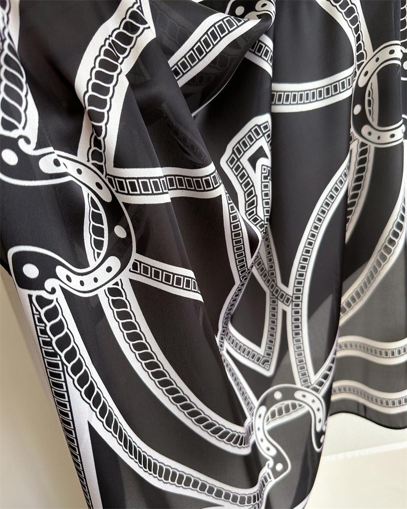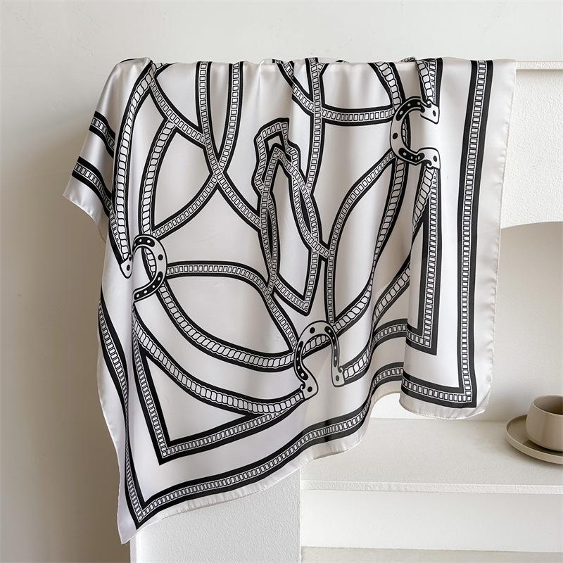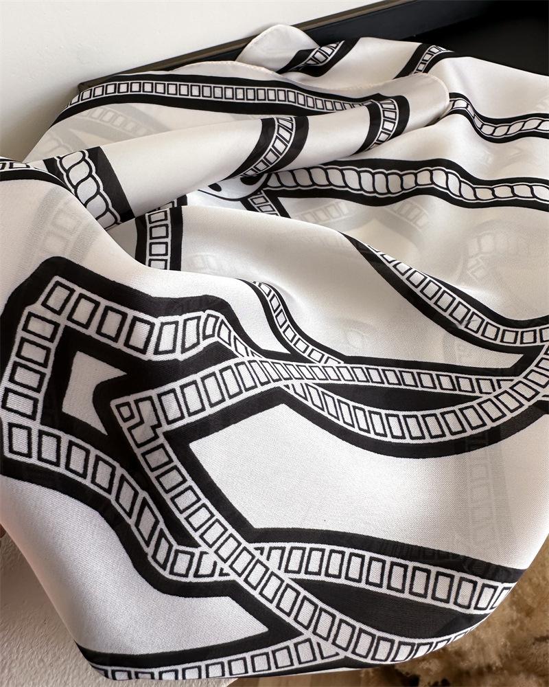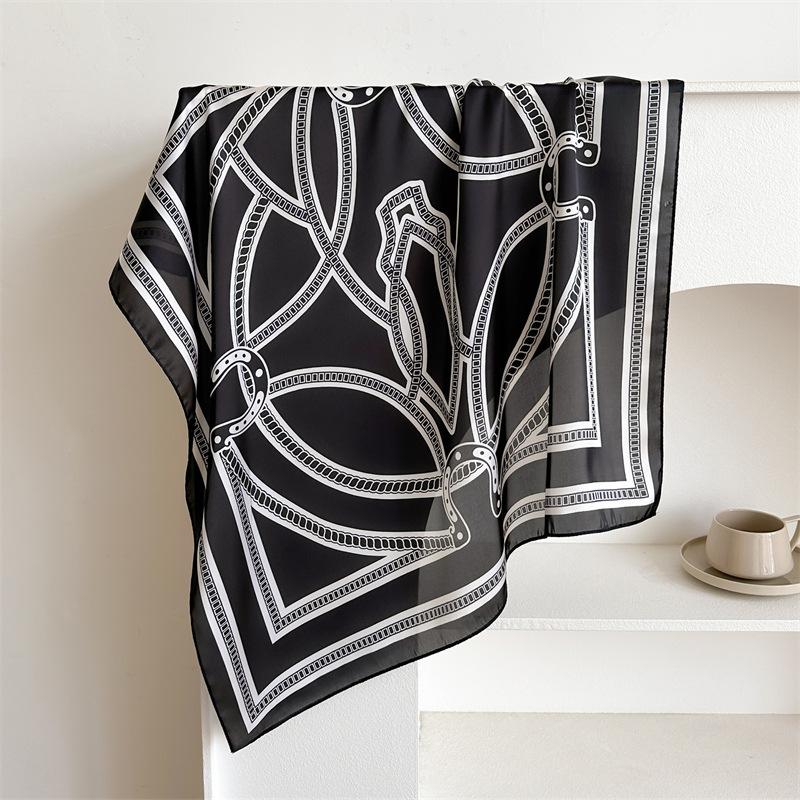 Compra Pañuelo cuadrado pequeño de estilo francés con cadena de lujo, estampado de seda, estilo elegante, para primavera y verano, para mujer al por mayor en Joom.pro