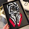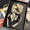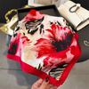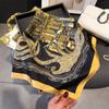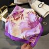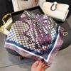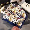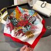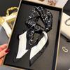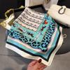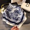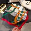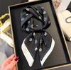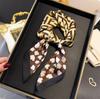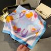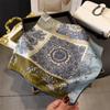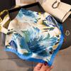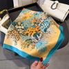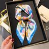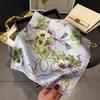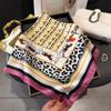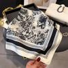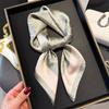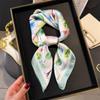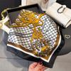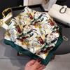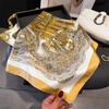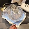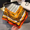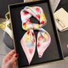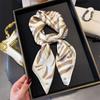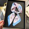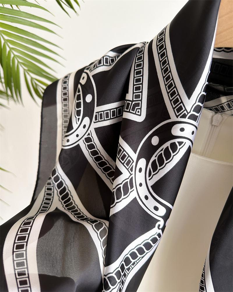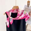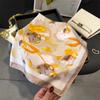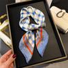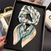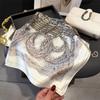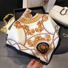 Pañuelo cuadrado pequeño de estilo francés con cadena de lujo, estampado de seda, estilo elegante, para primavera y verano, para mujer