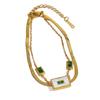 Yifei Moda Retro de Alta Gama Elegante Versátil Concha Esmeralda Cuadrado Acero Titanio Chapado en Oro Accesorios Cadena Pulsera