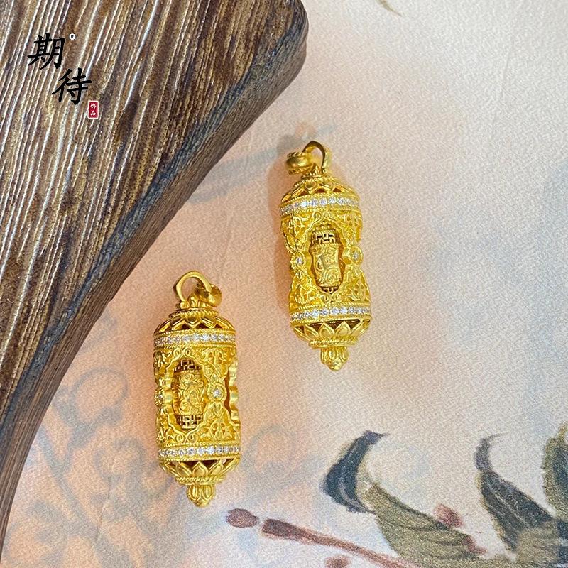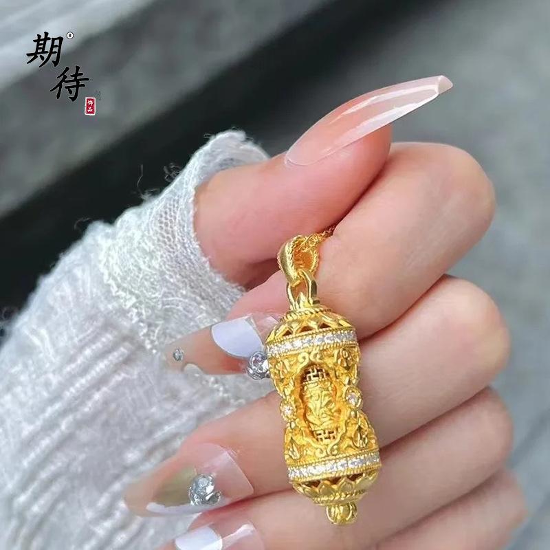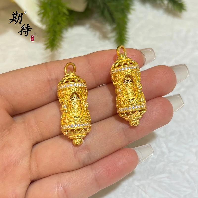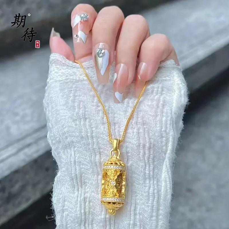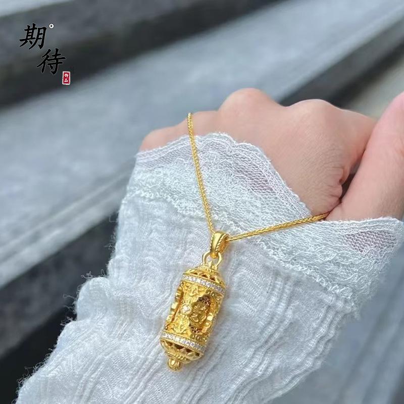 Esperando un Collar Amuleto de Buda Pequeño de Diamante Punto Oro Arena de Larga Duración, el Mismo Estilo que el Colgante Colgante Rueda de Oración Mantra de Seis Sílabas de la Joyería de Oro