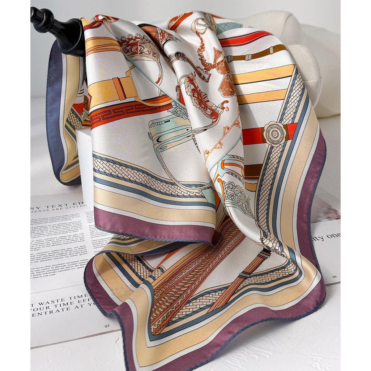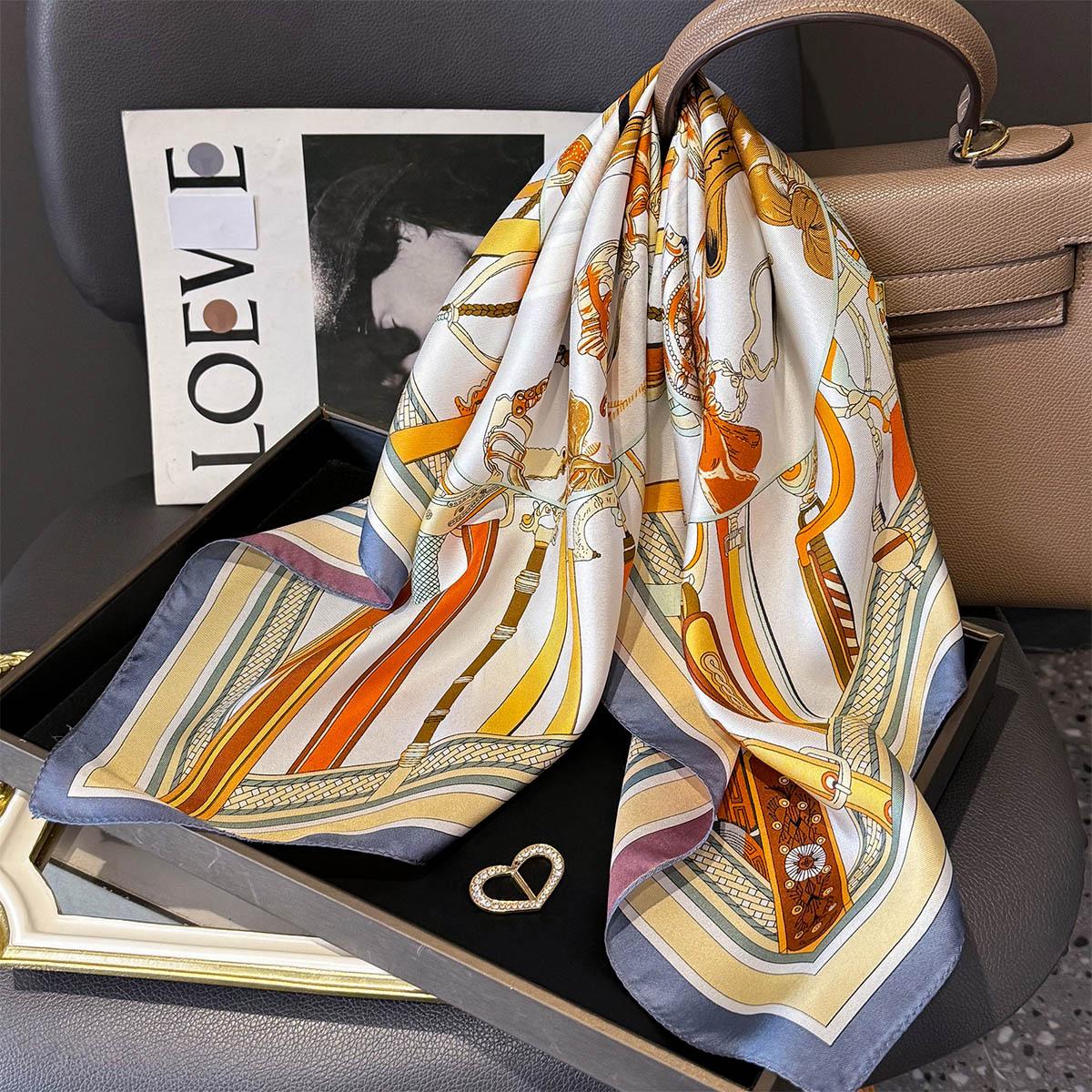 Estilo Coreano Nueva Llegada Primavera y Verano Moda Bufanda Mediana Cuadrada Protector Solar Chal Pequeño Sarga de Seda Bufanda Estampada Bufanda Profesional de Moda