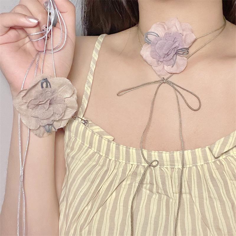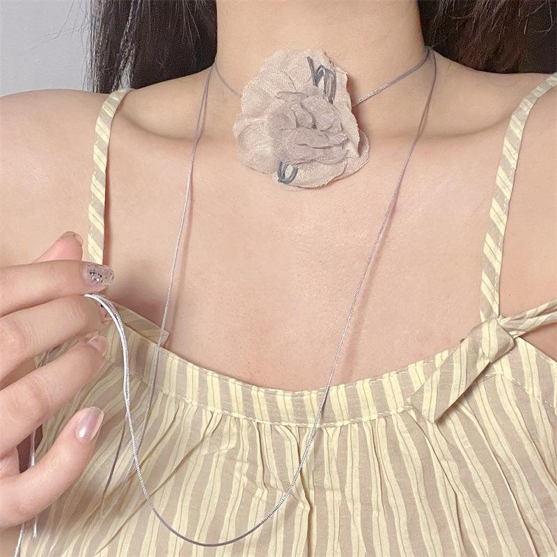 Collar tejido de flores retro de estilo étnico, moda personalidad, tela temperamento, gargantilla, cadena para clavícula de dama