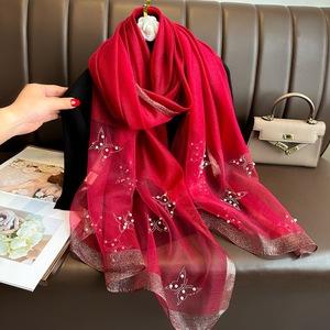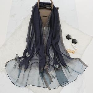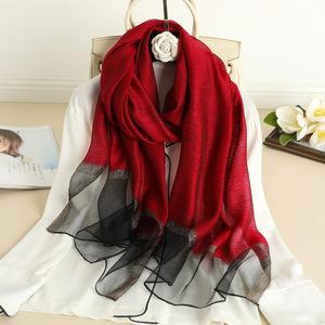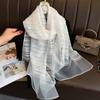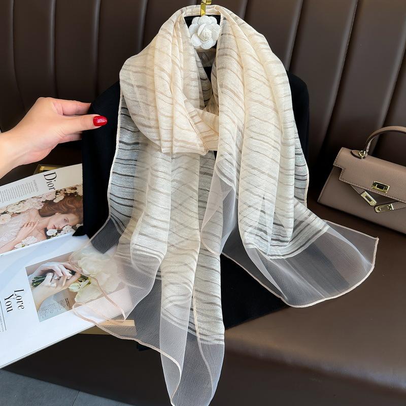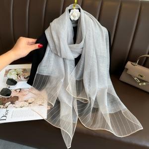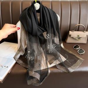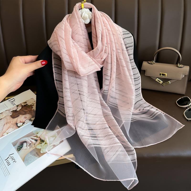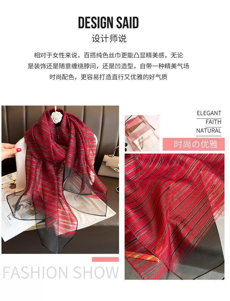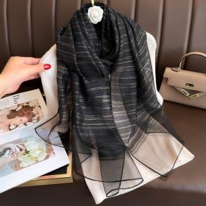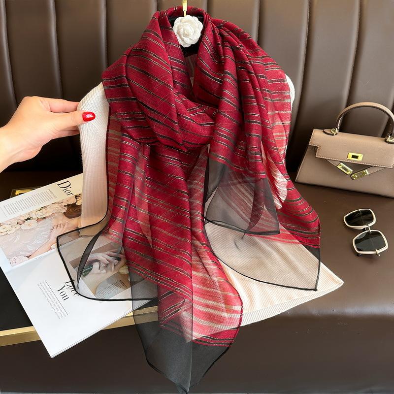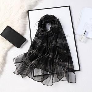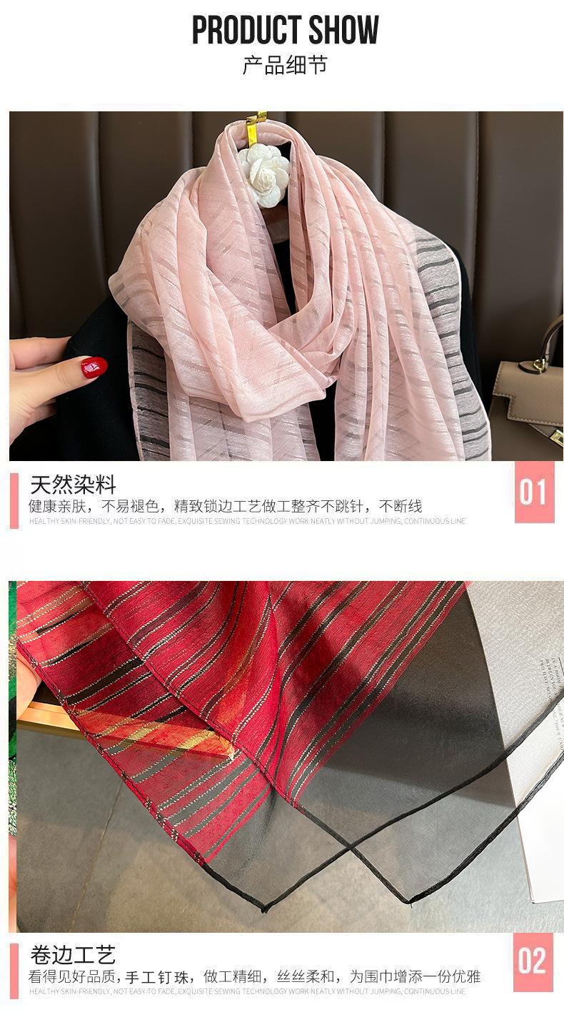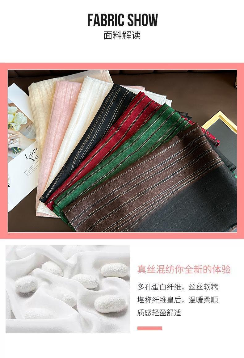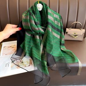 Bufanda de seda para mujer primavera y otoño para combinar con todo hilo dorado a cuadros bufanda de seda artificial bufanda decorativa de estilo coreano a la moda bufanda mezclada