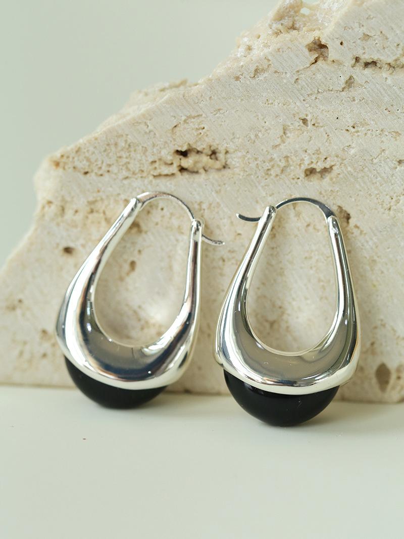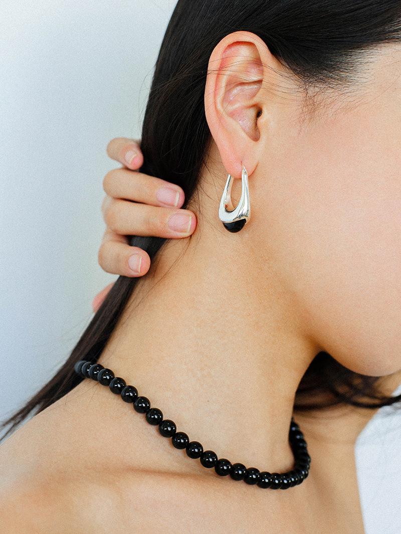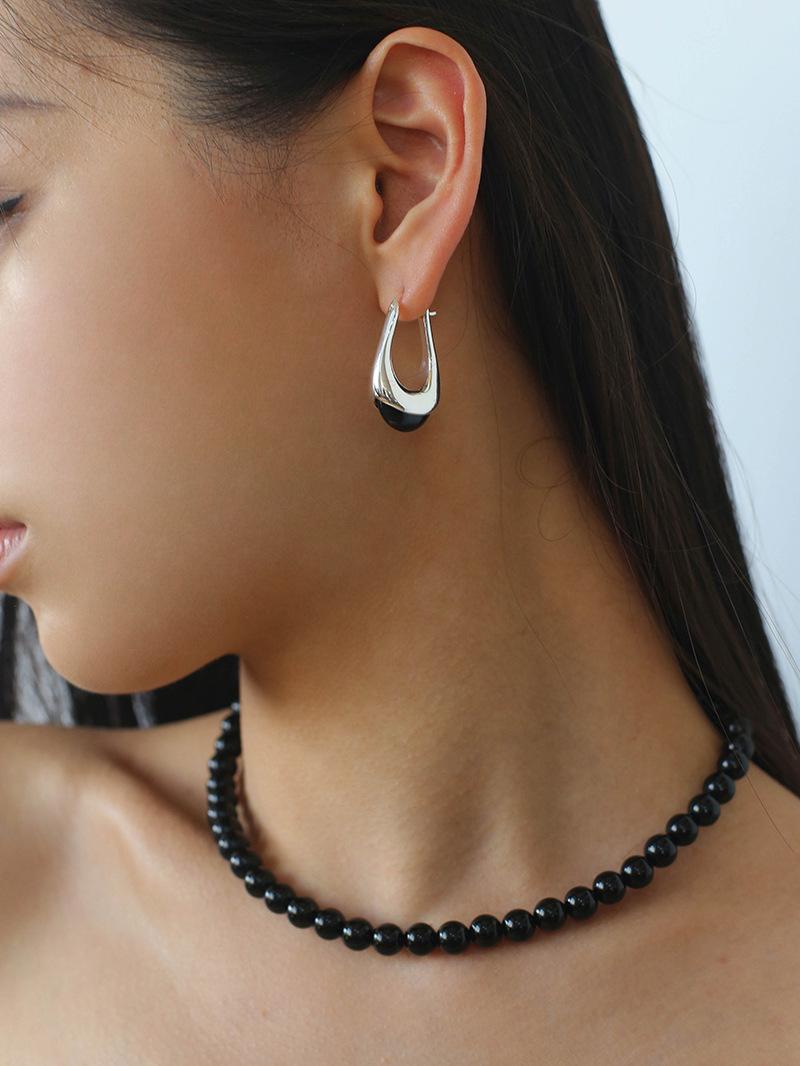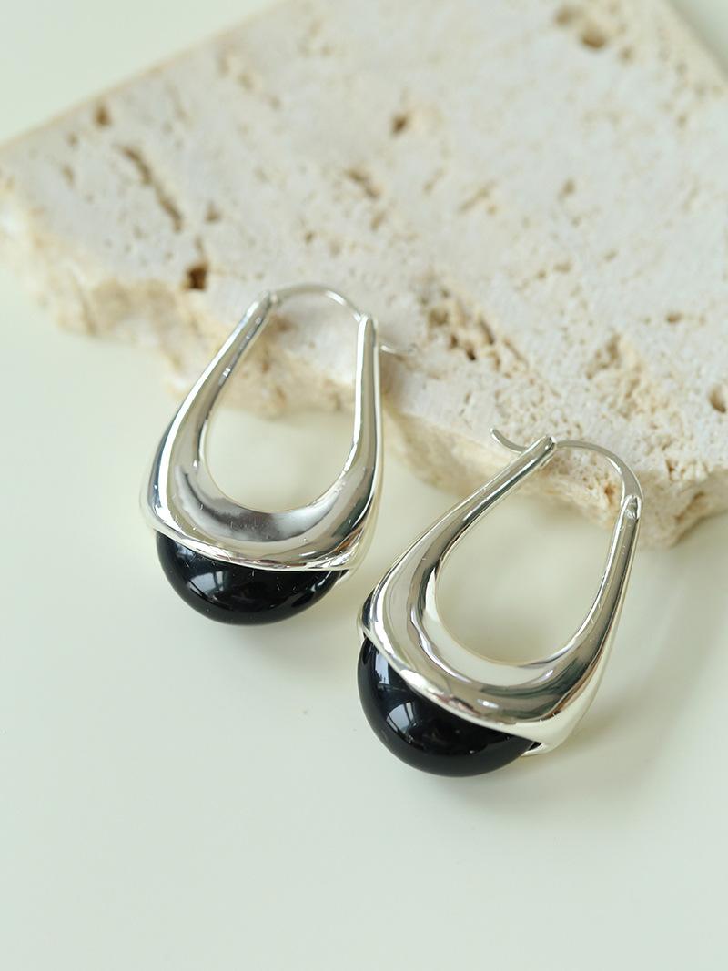 White crystal u-shaped earrings-gold, Black onyx u-shaped earrings-silver