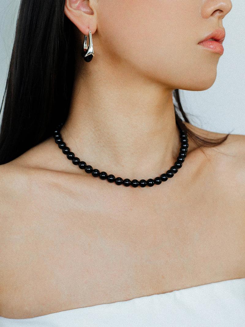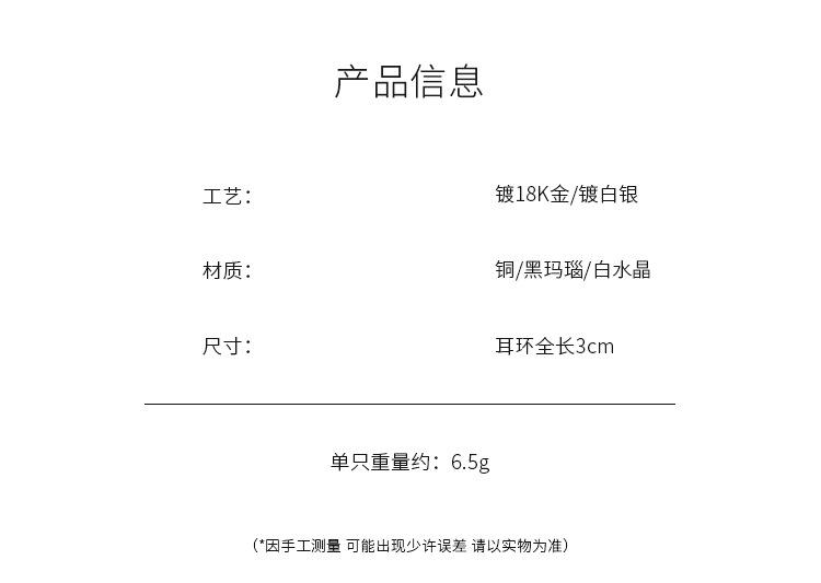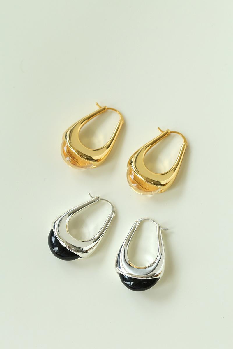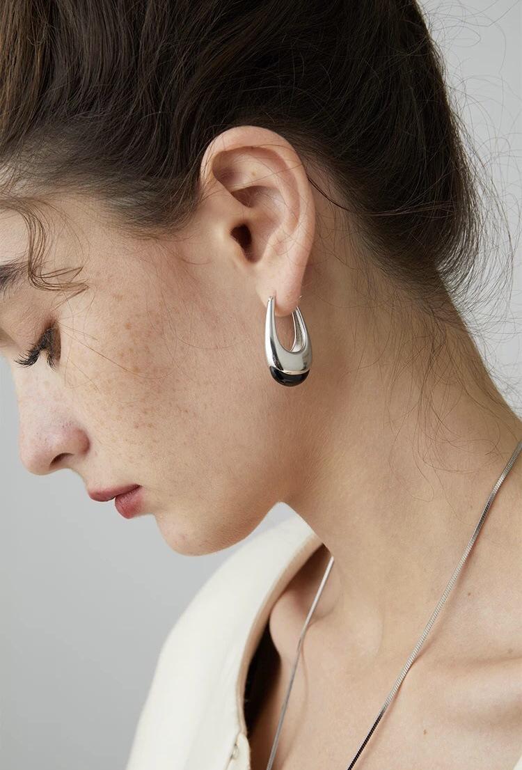 White crystal u-shaped earrings-gold, Black onyx u-shaped earrings-silver