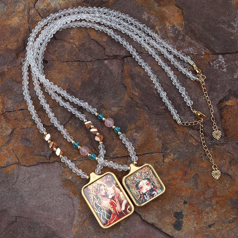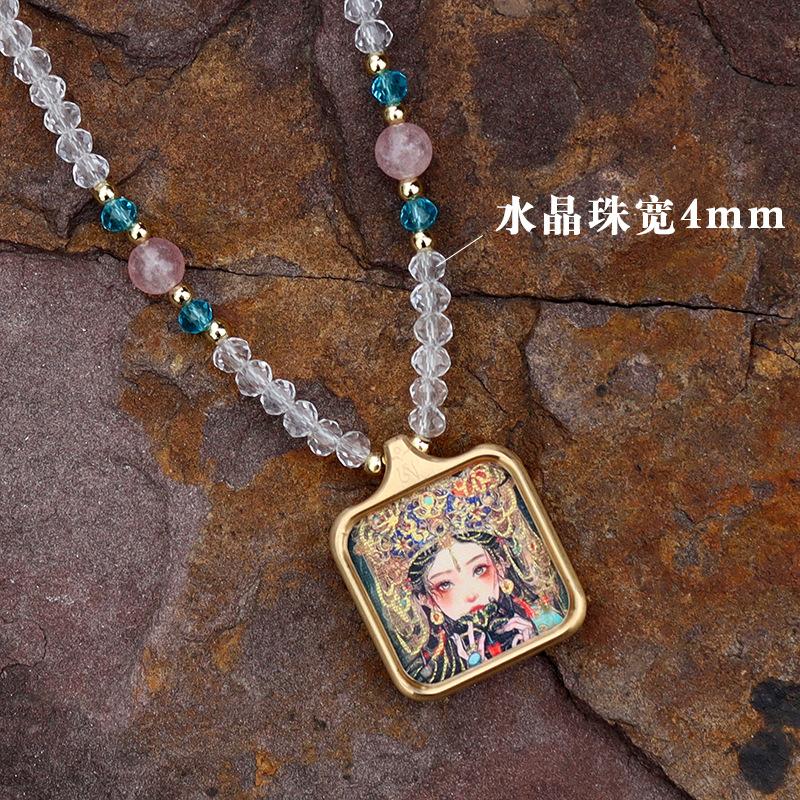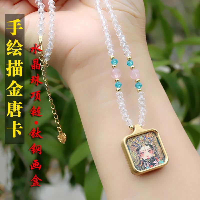 Thousand-hand guanyin 12 hand-painted gold (titanium steel 2x2) + crystal bead necklace, Void 12 hand-painted ...