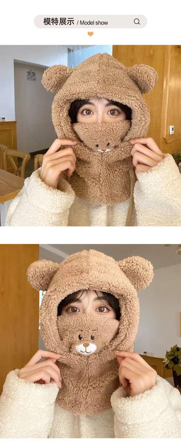 Gorro Todo en Uno de Oso Lindo para Mujer para Ciclismo de Invierno Cálido a Prueba de Viento Máscara Bufanda para el Cuello Más Terciopelo Gorro con Protección para las Orejas a Prueba de Frío