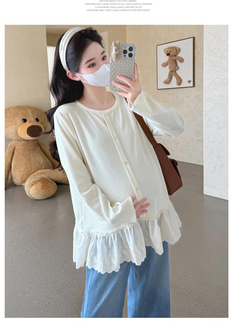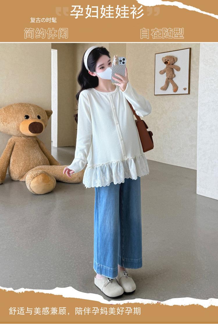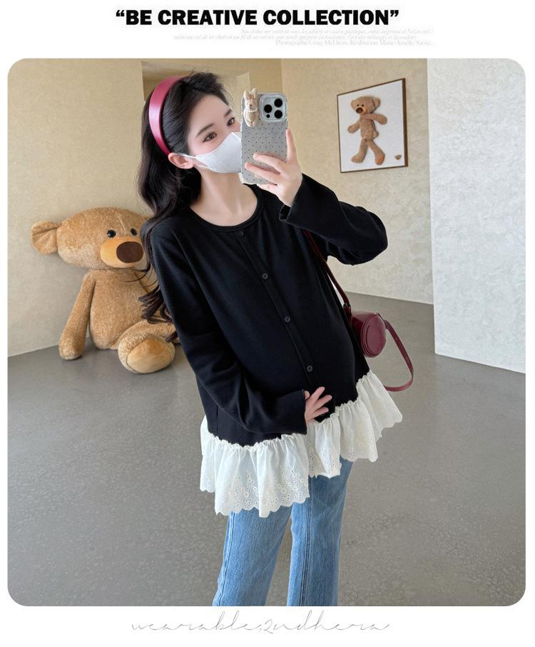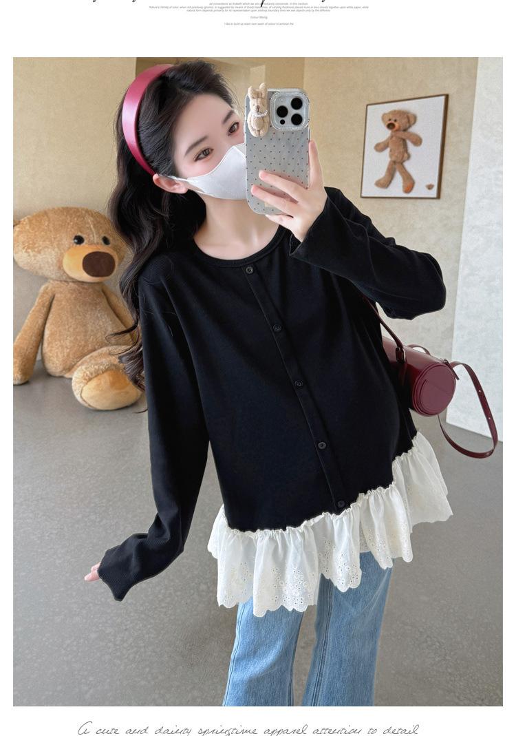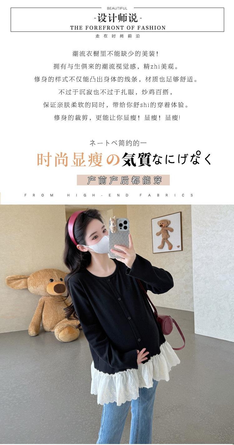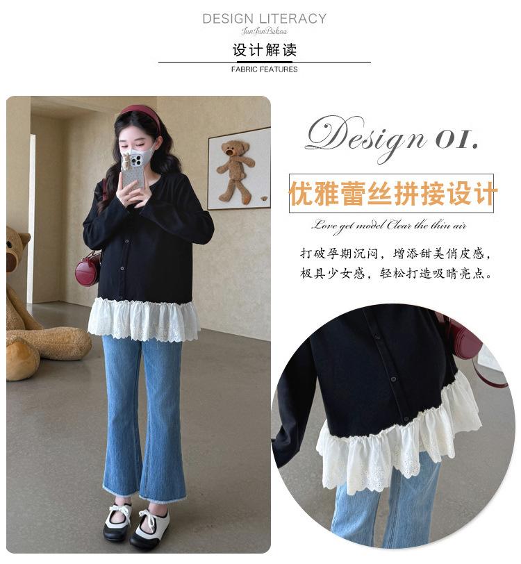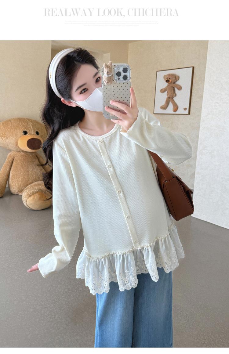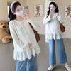 En stock otoño 2025 nueva camiseta casual dulce para mujeres embarazadas patchwork encaje estilo pequeña fragancia camisa baby doll para mujeres embarazadas