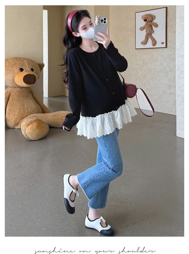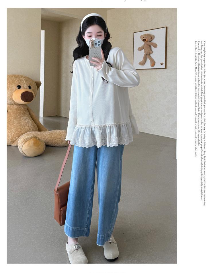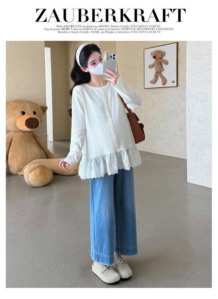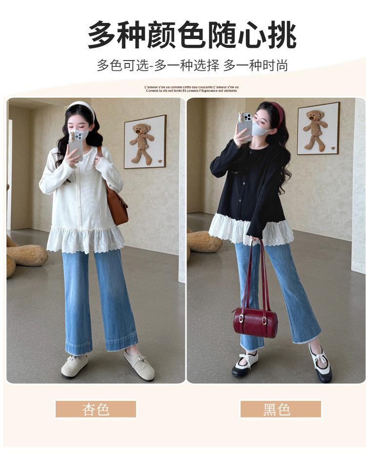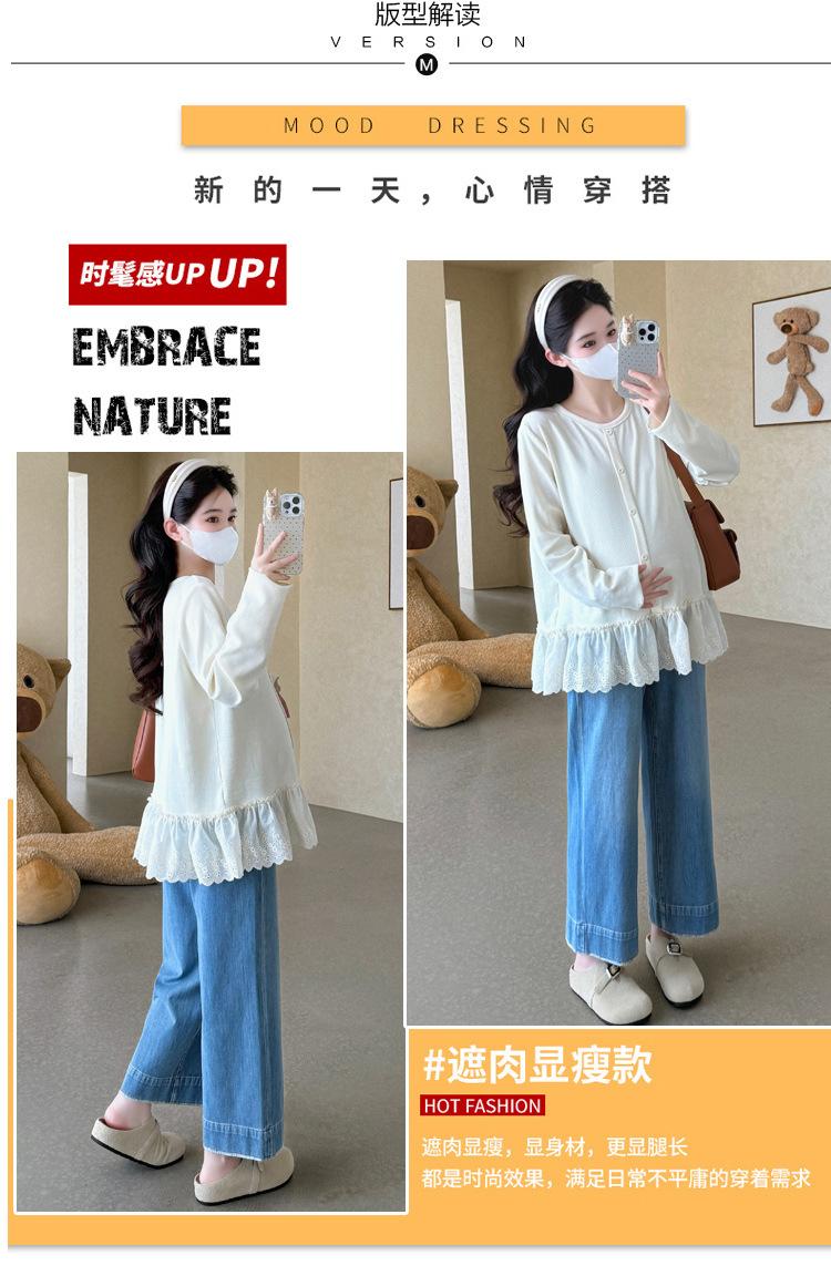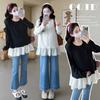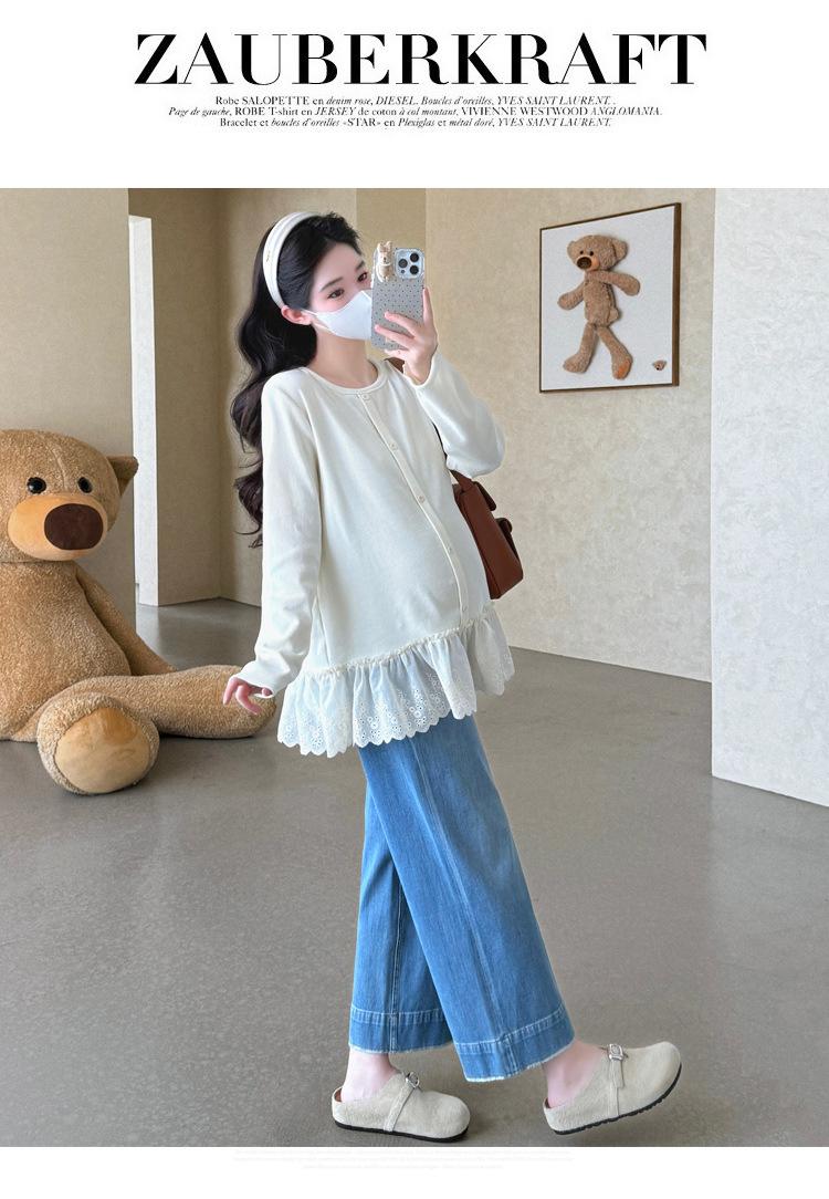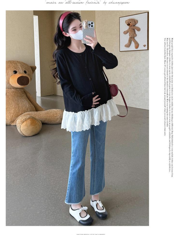 En stock otoño 2025 nueva camiseta casual dulce para mujeres embarazadas patchwork encaje estilo pequeña fragancia camisa baby doll para mujeres embarazadas