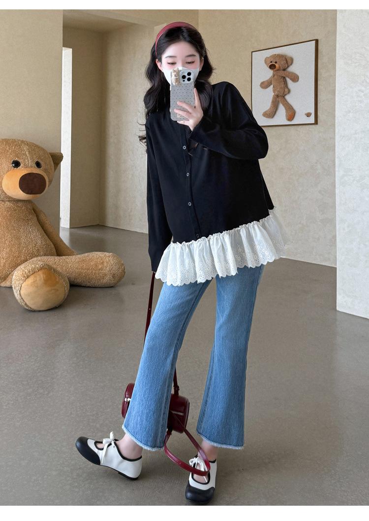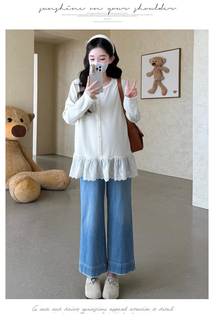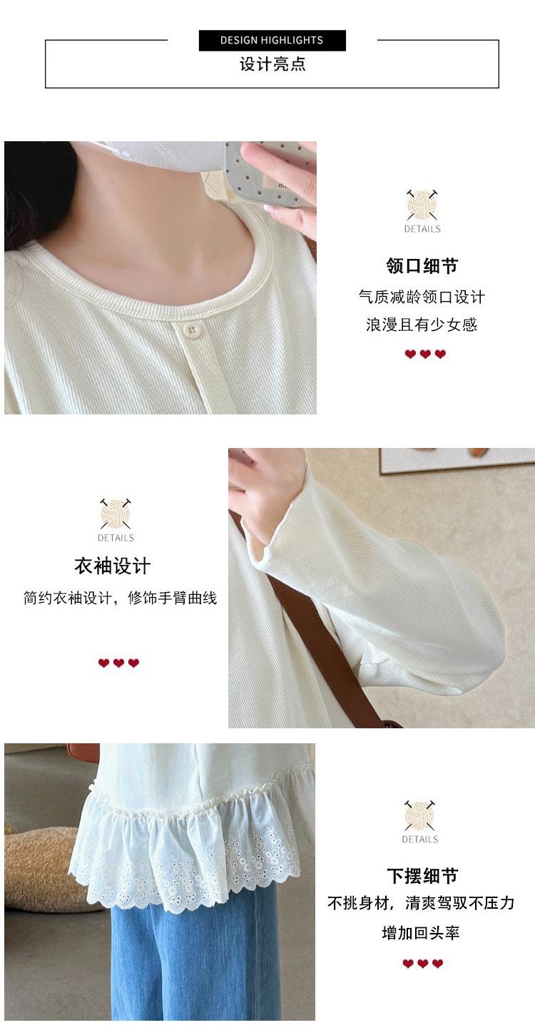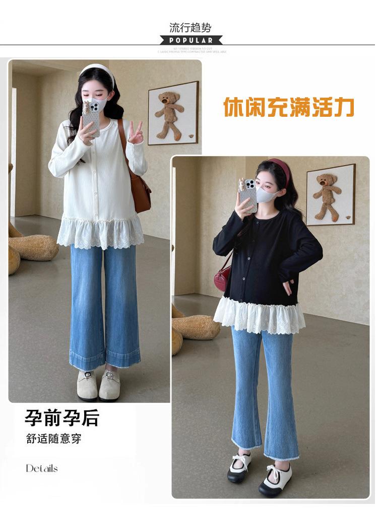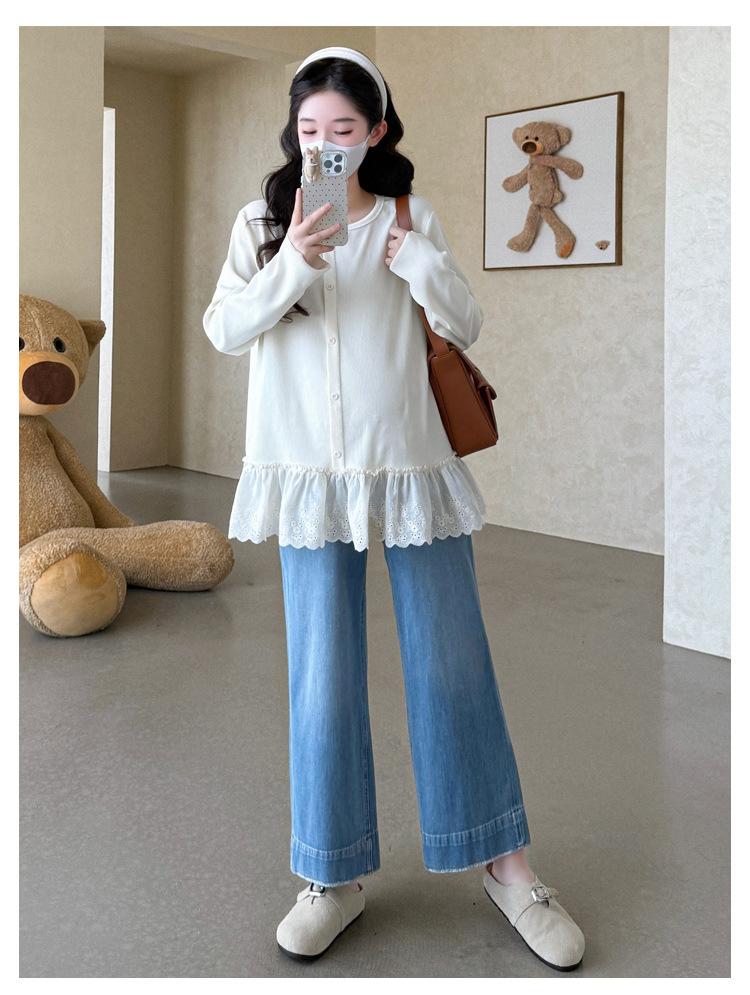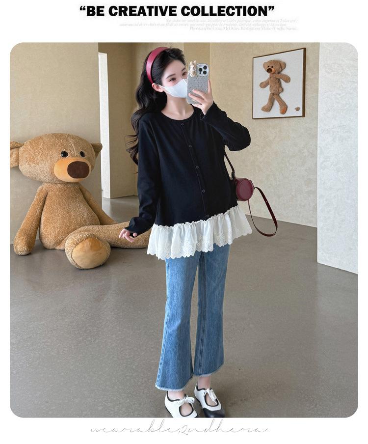 En stock otoño 2025 nueva camiseta casual dulce para mujeres embarazadas patchwork encaje estilo pequeña fragancia camisa baby doll para mujeres embarazadas