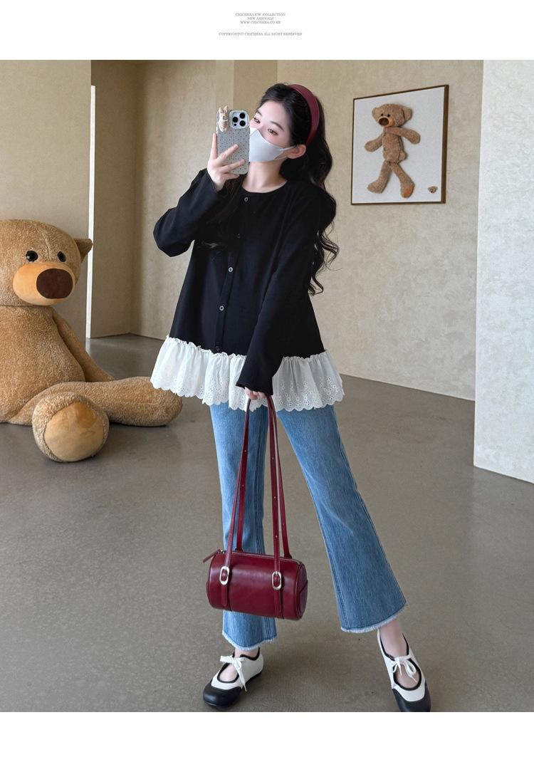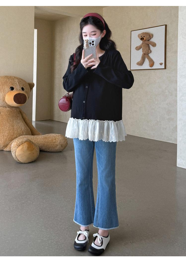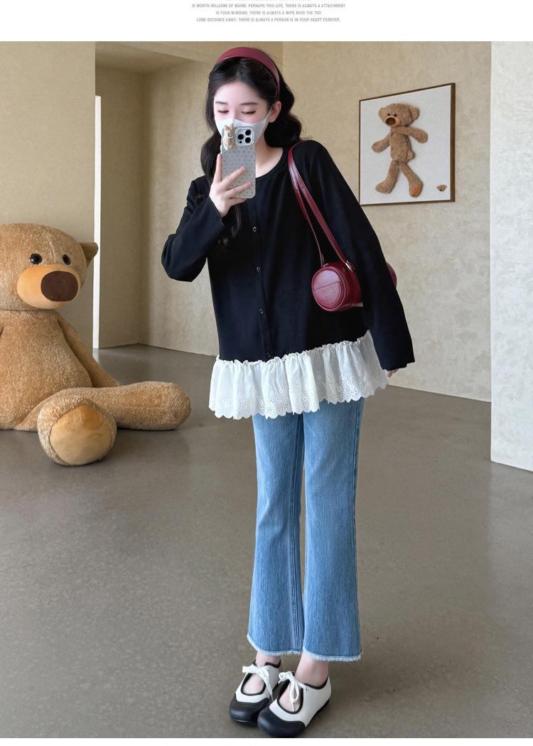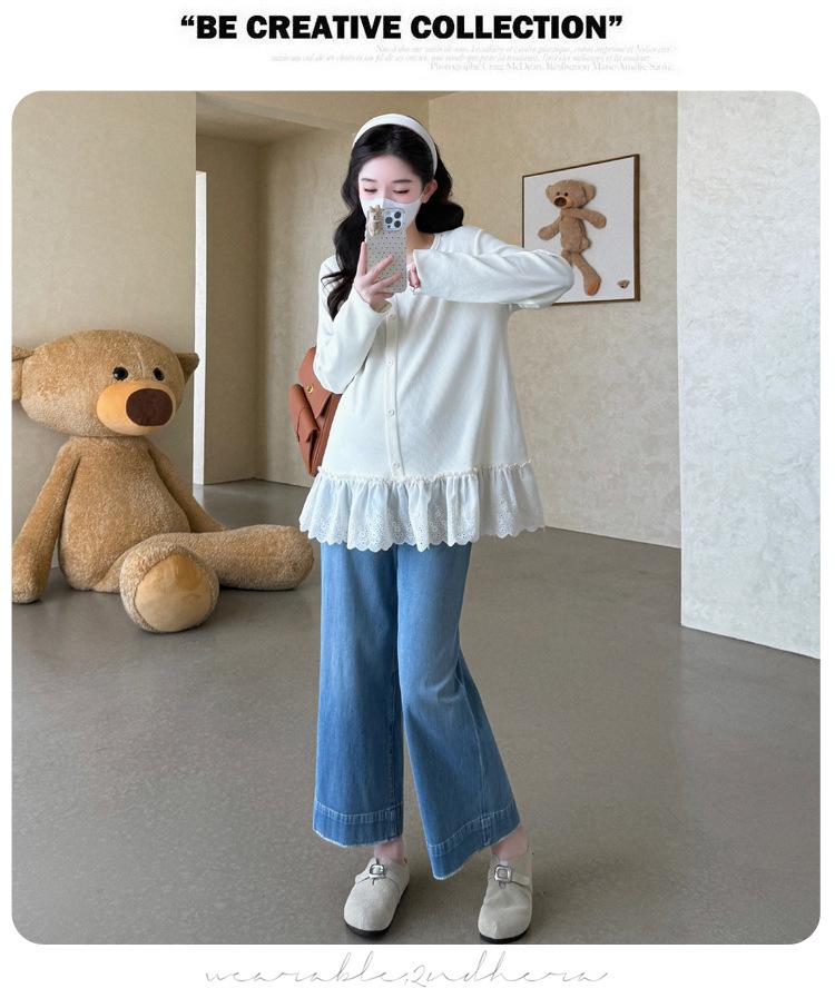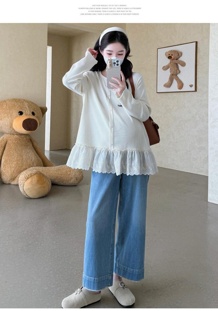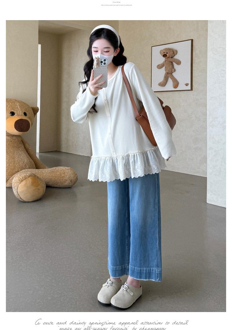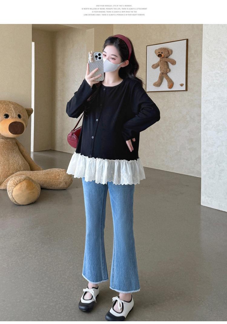 En stock otoño 2025 nueva camiseta casual dulce para mujeres embarazadas patchwork encaje estilo pequeña fragancia camisa baby doll para mujeres embarazadas