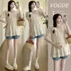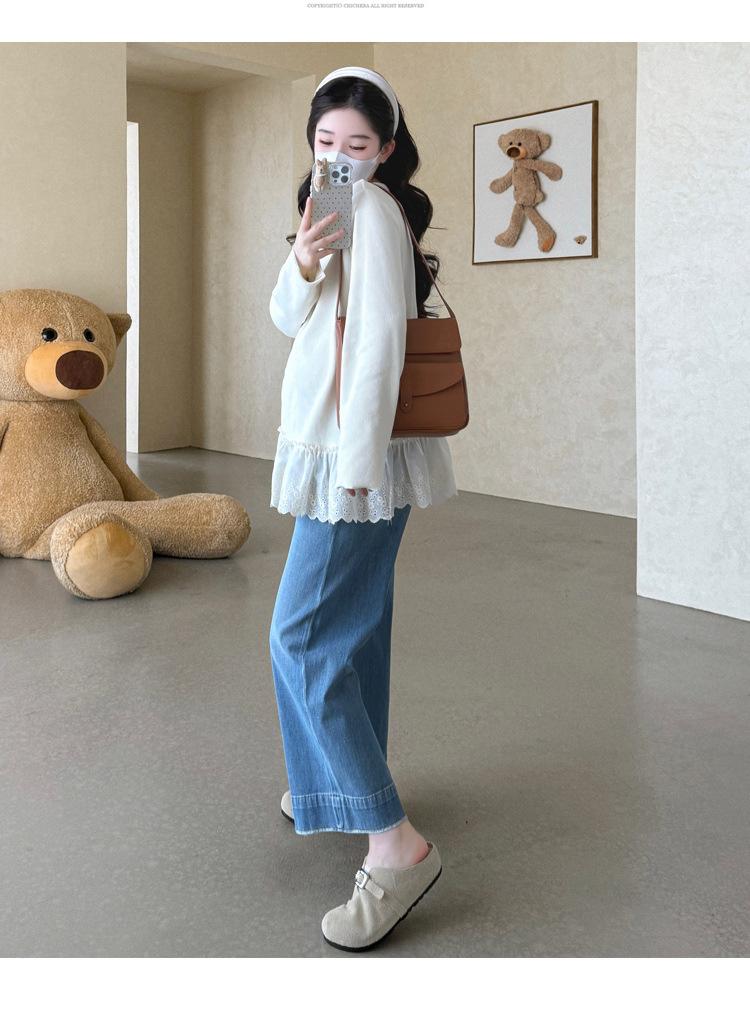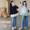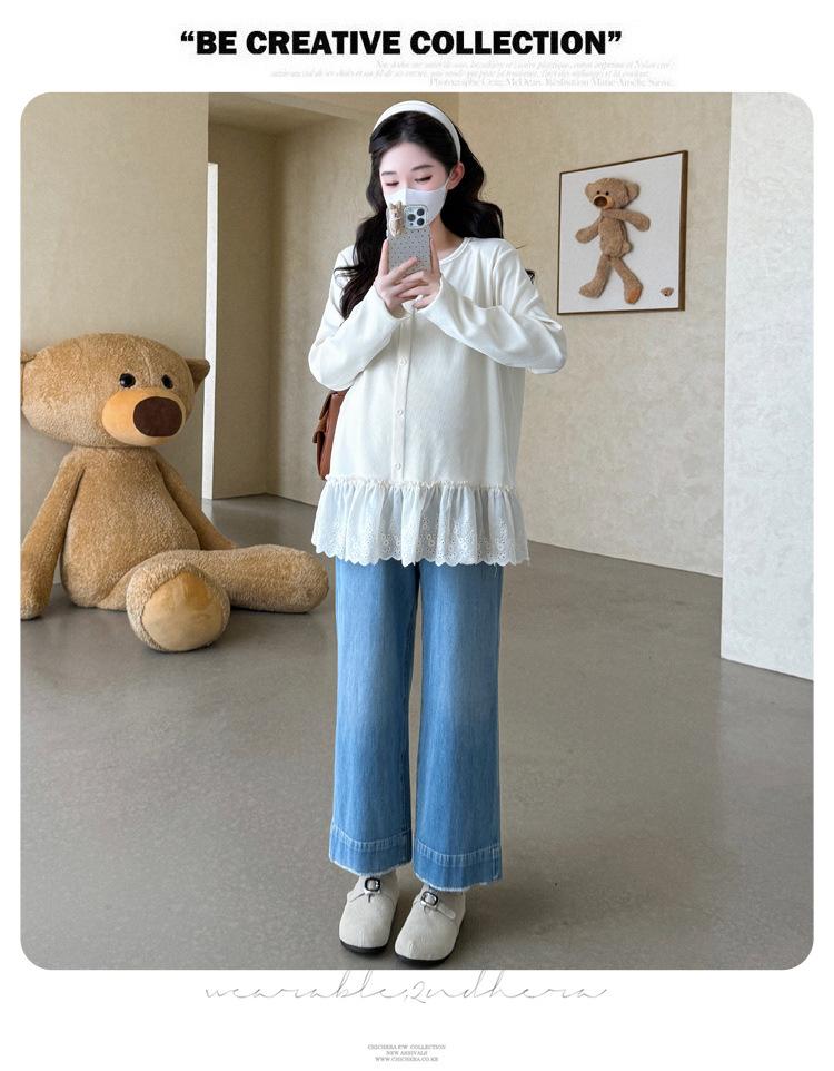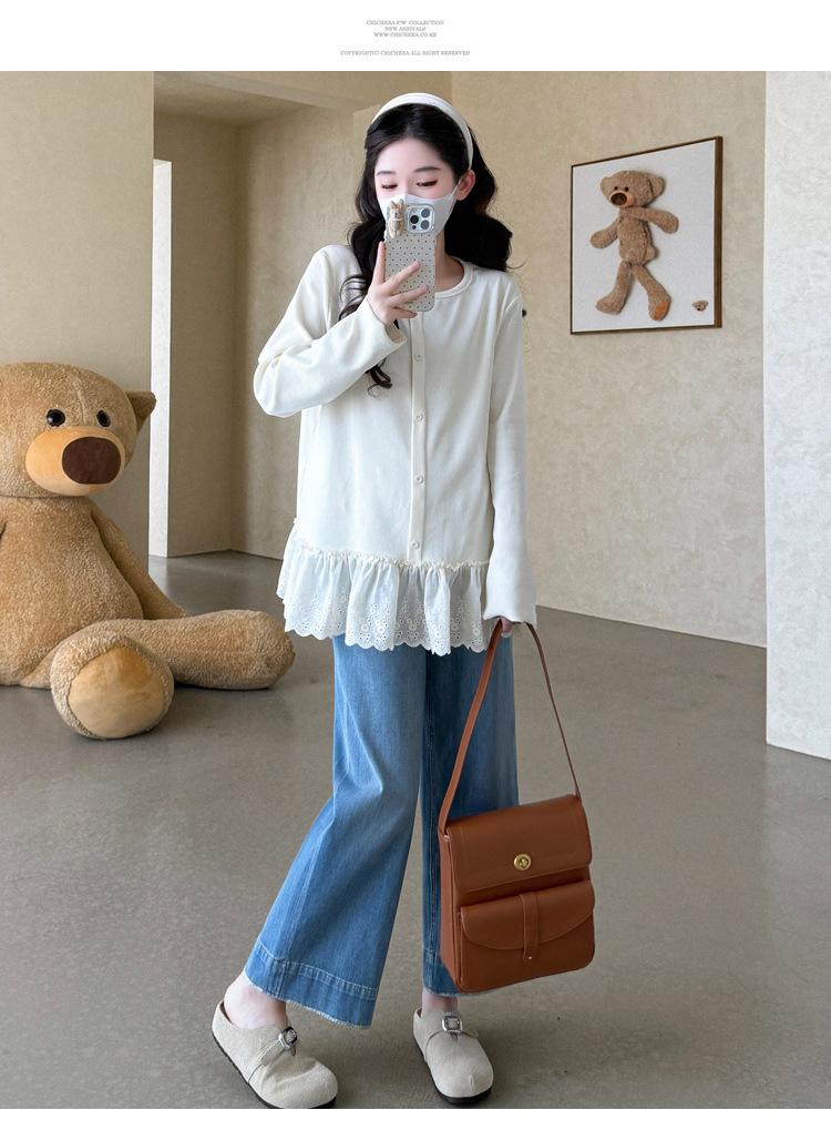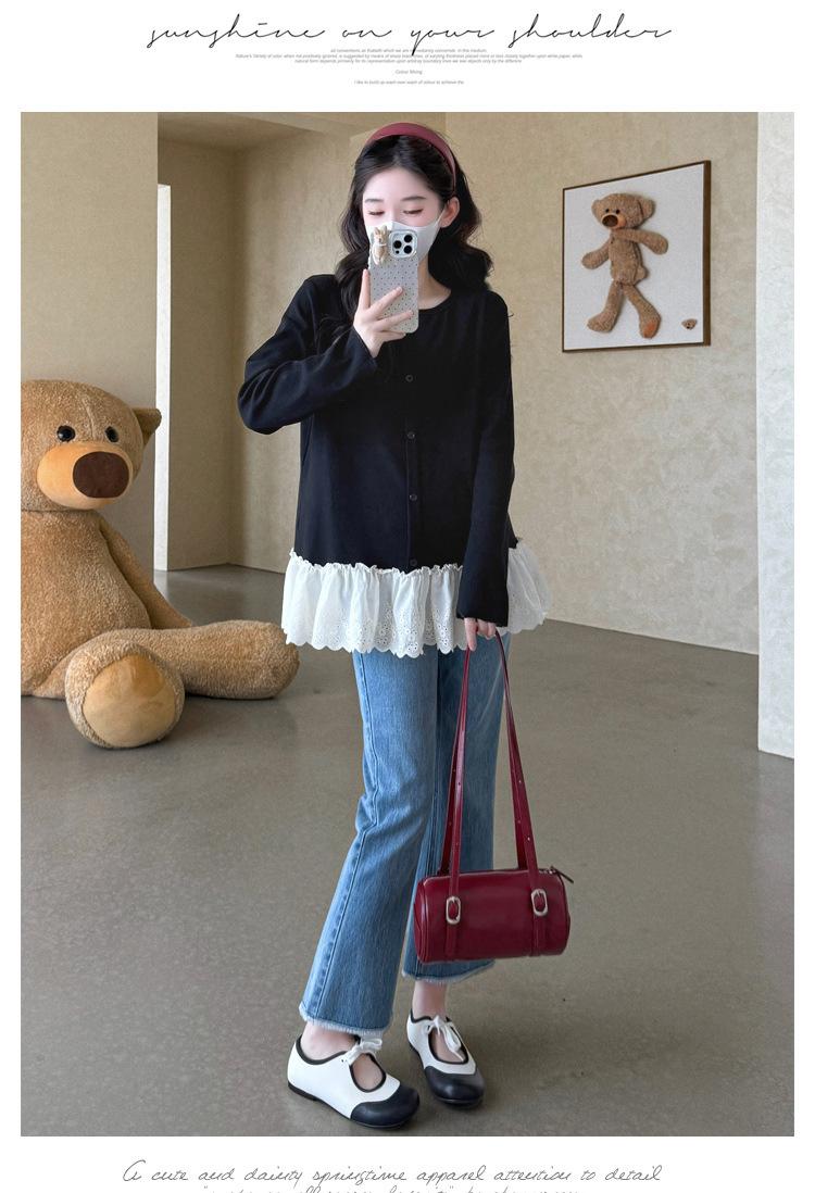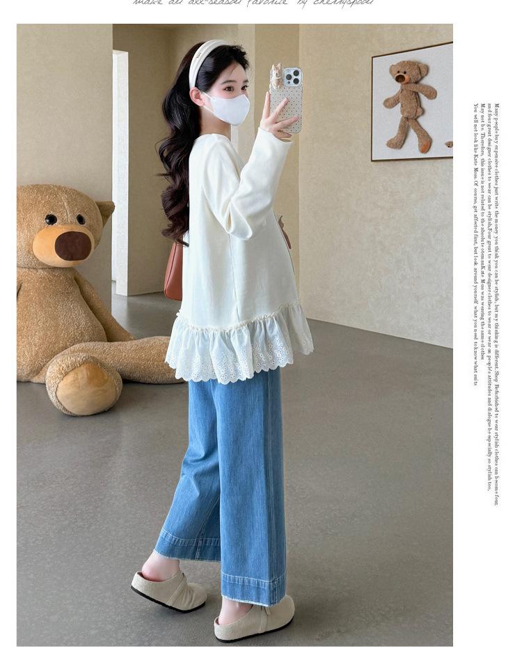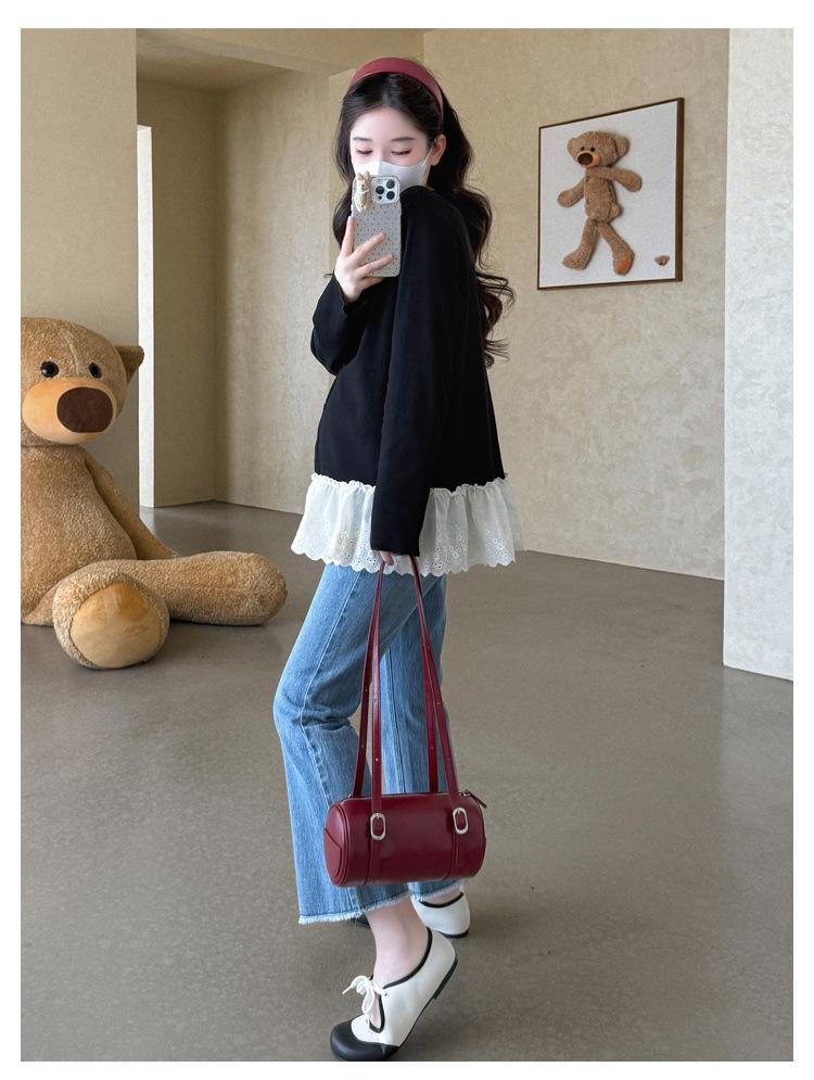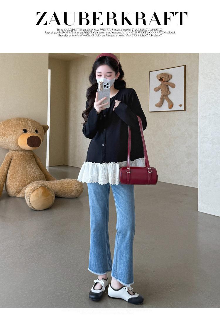 En stock otoño 2025 nueva camiseta casual dulce para mujeres embarazadas patchwork encaje estilo pequeña fragancia camisa baby doll para mujeres embarazadas