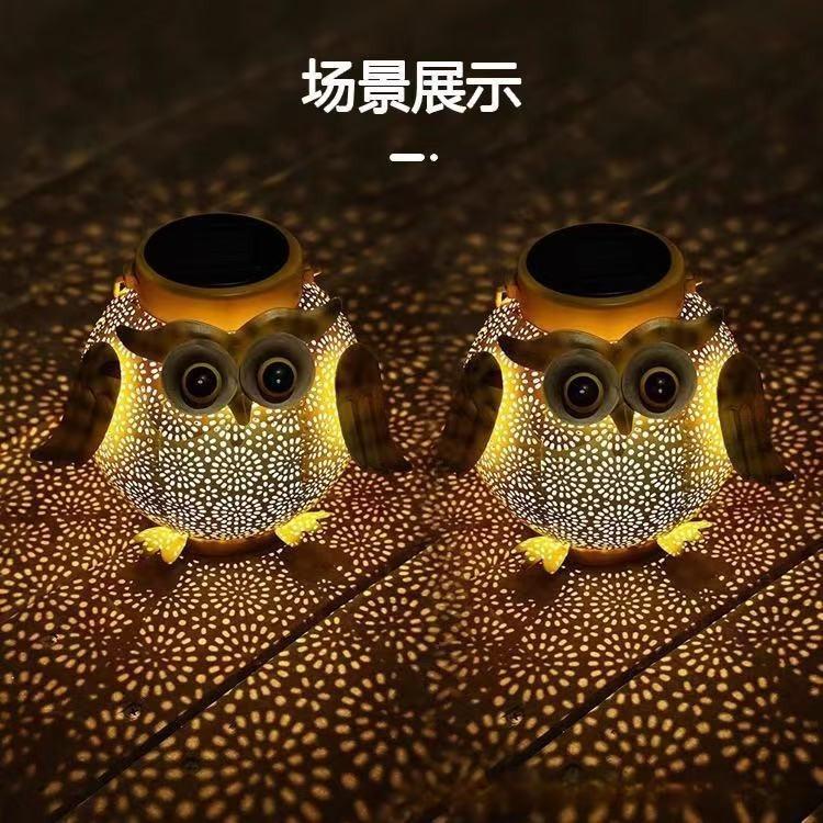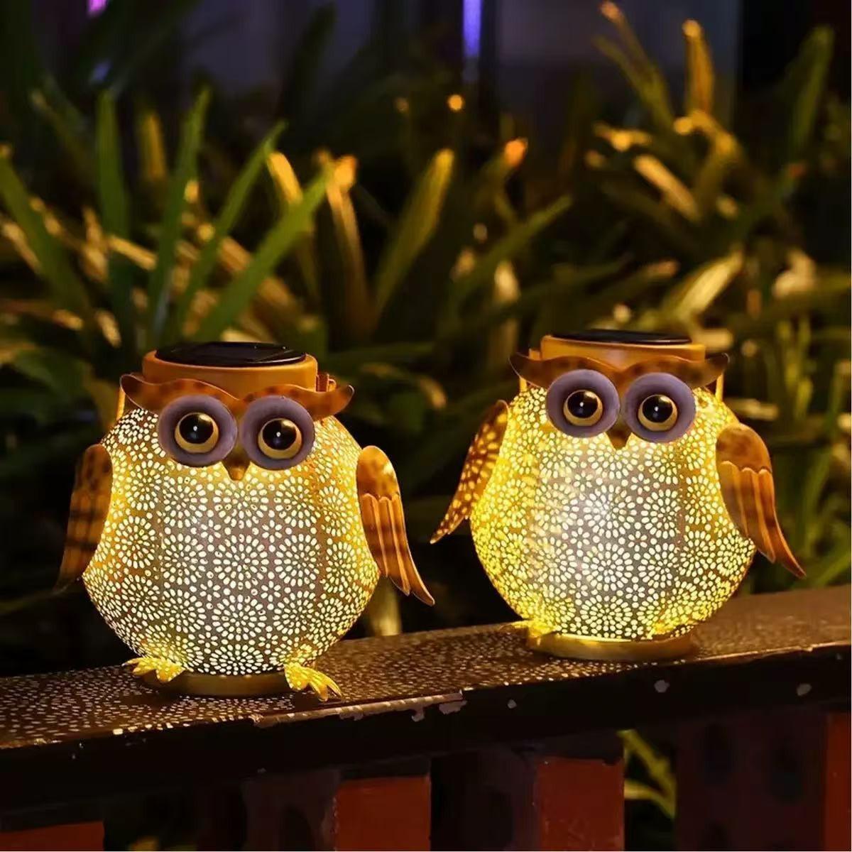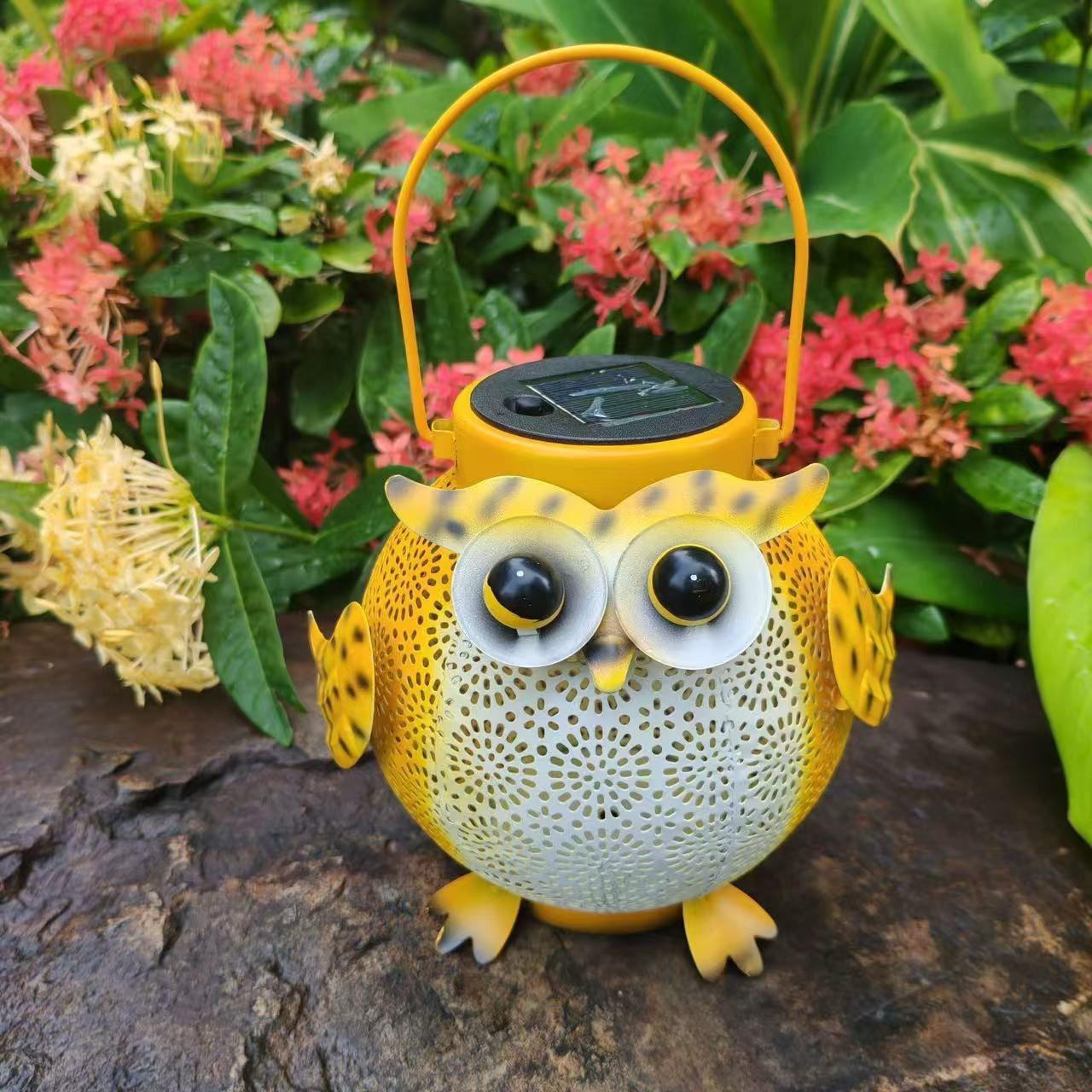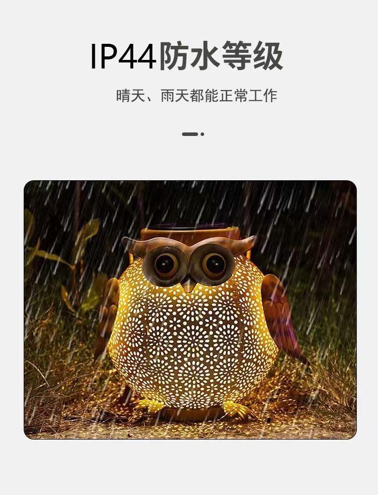 Adorno de Jardín Búho Solar Linterna Búho de Hierro Césped Balcón Luz Nocturna Creativa para Exterior