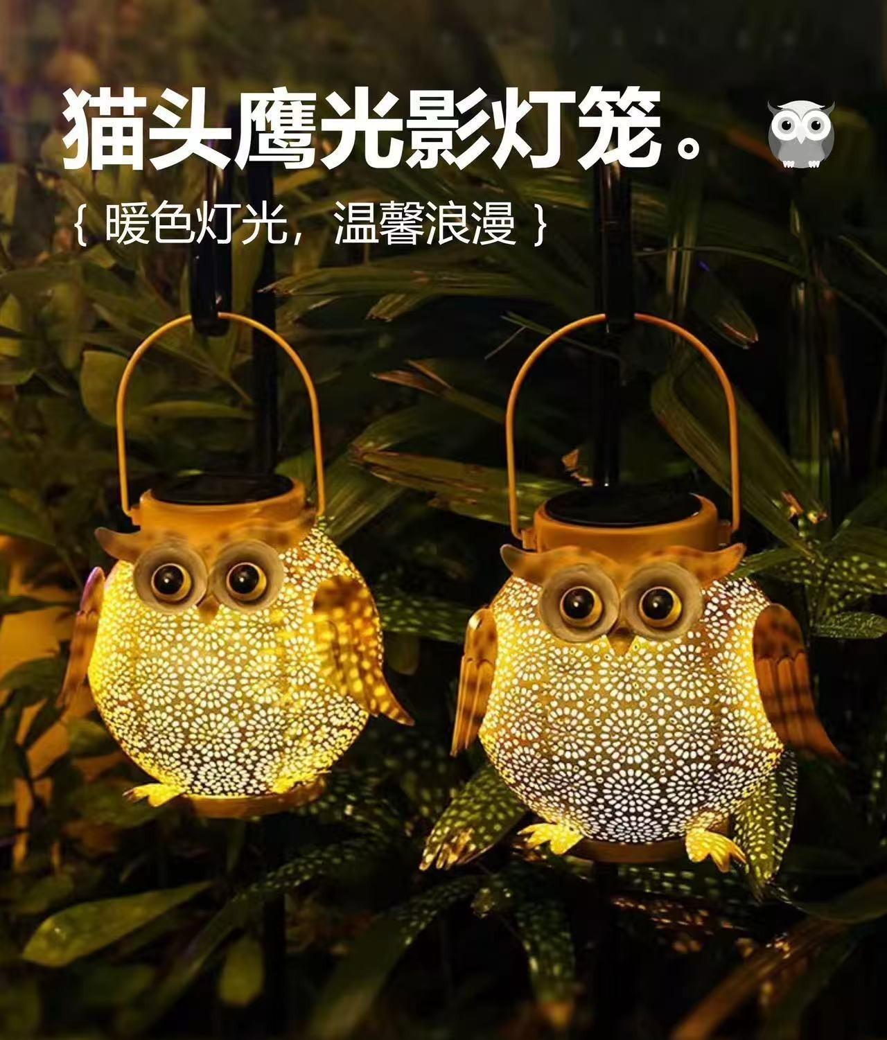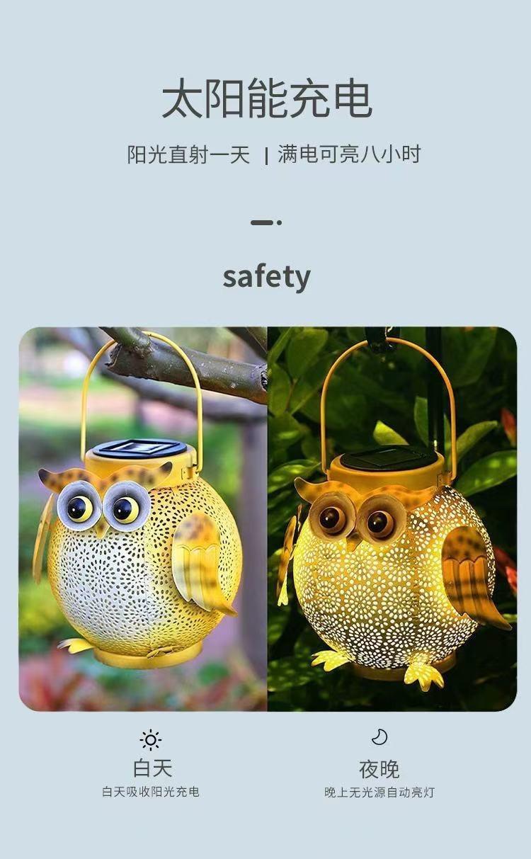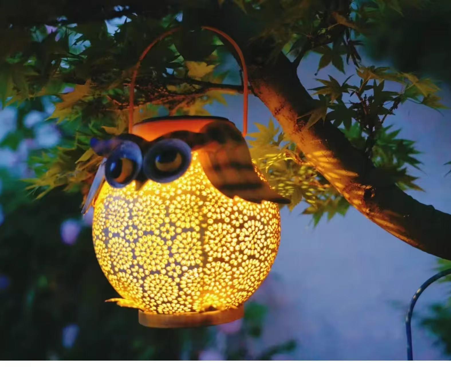 Adorno de Jardín Búho Solar Linterna Búho de Hierro Césped Balcón Luz Nocturna Creativa para Exterior