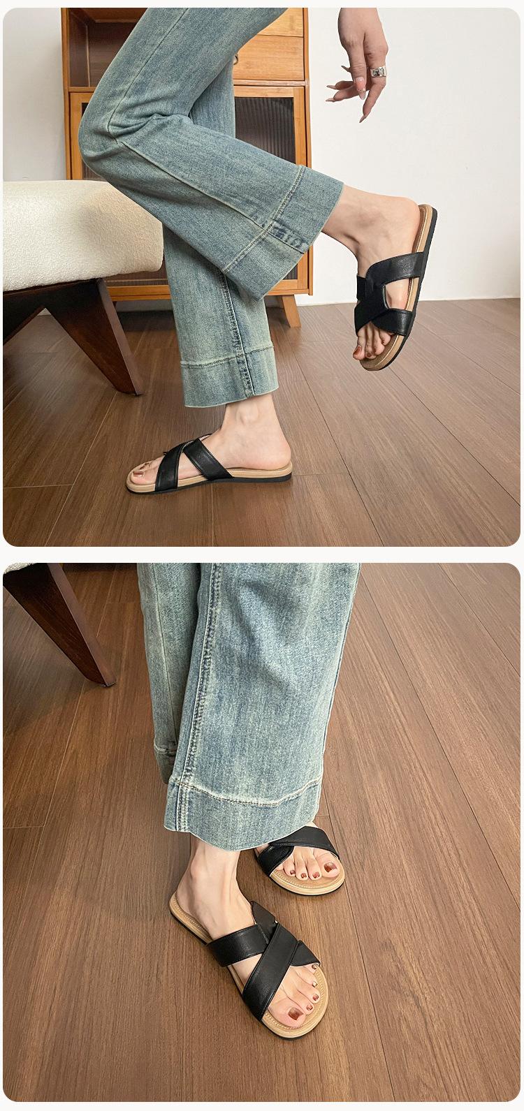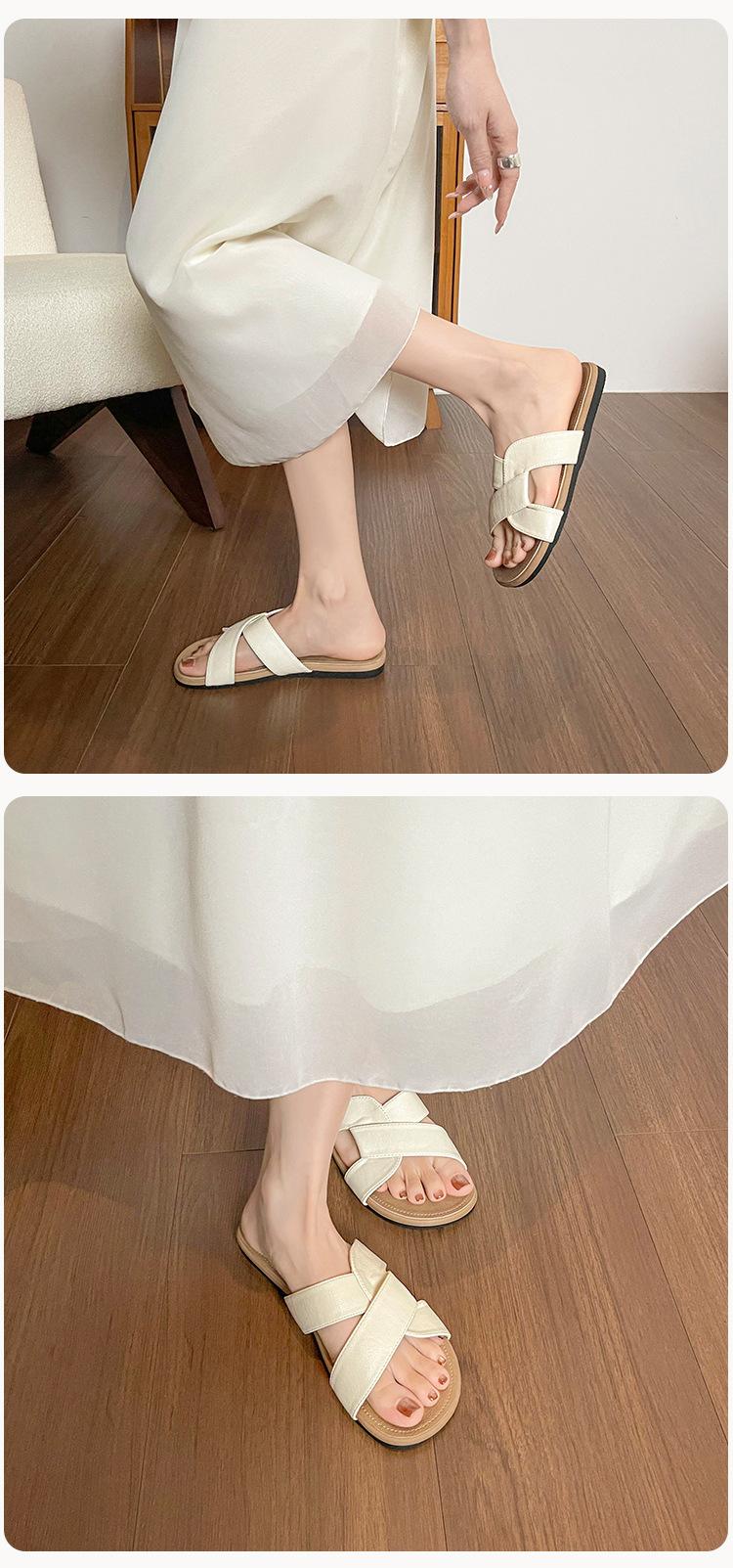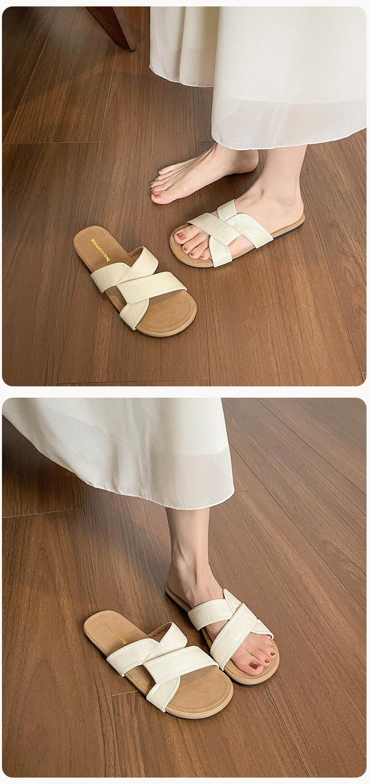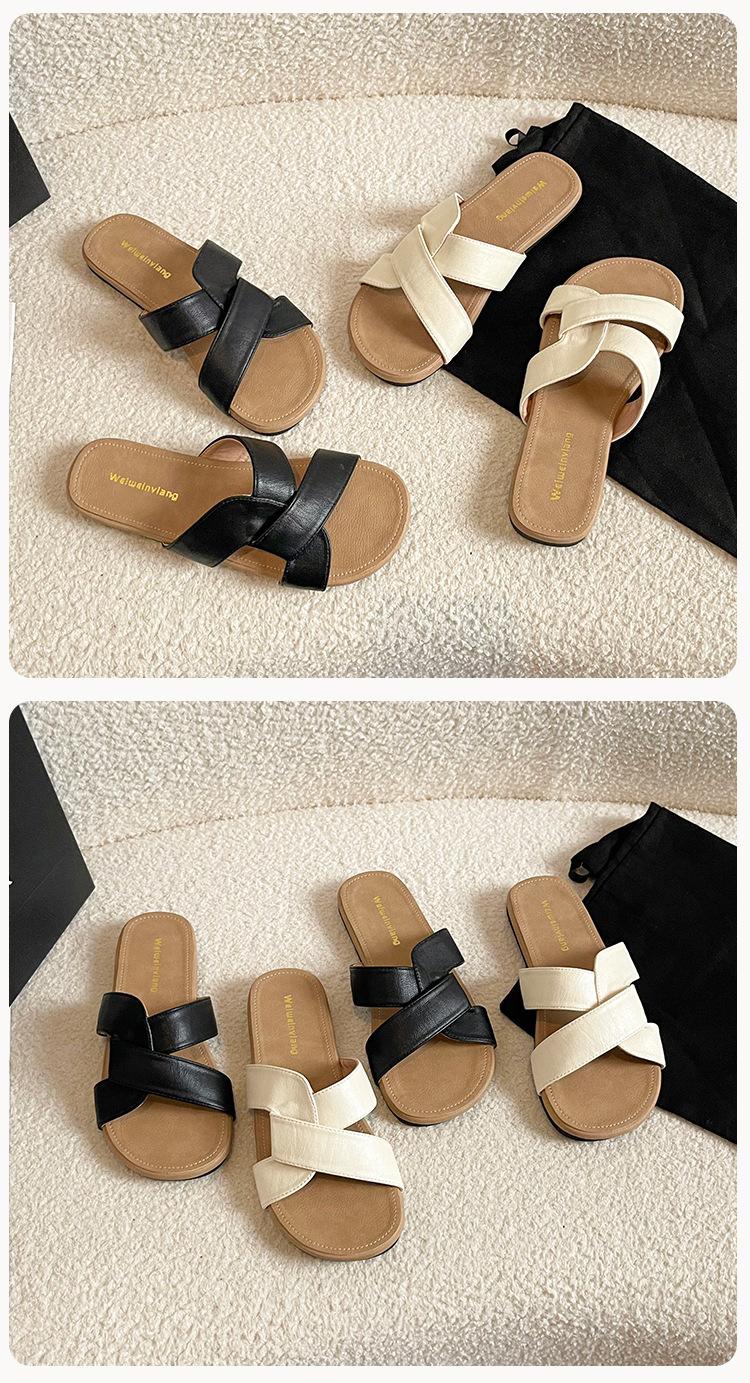 Weiwei Girl 910-1 Zapatillas Planas Francesas Mujer Verano Exterior Retro Cruz Playa Orilla del Mar Sandalias de Una Tira