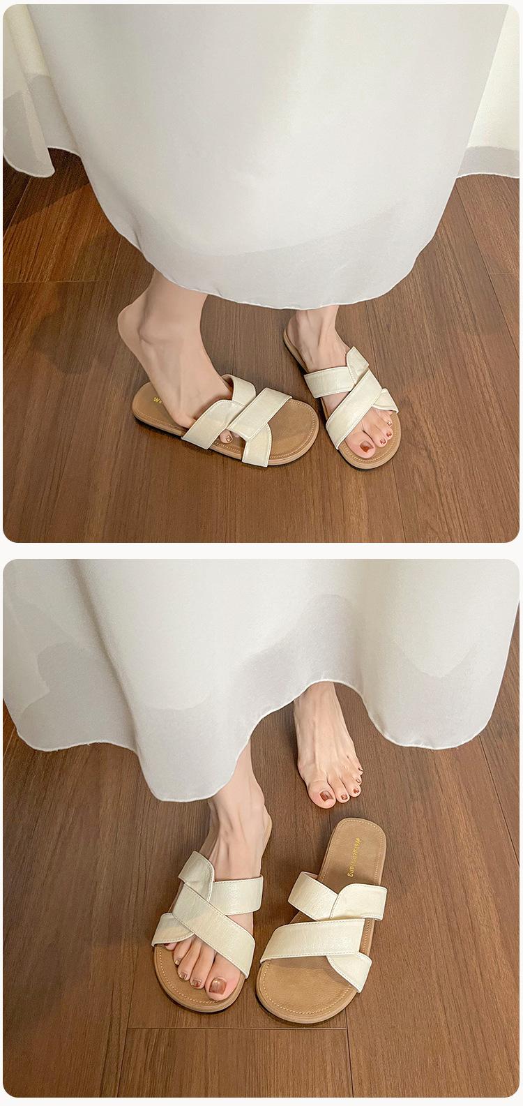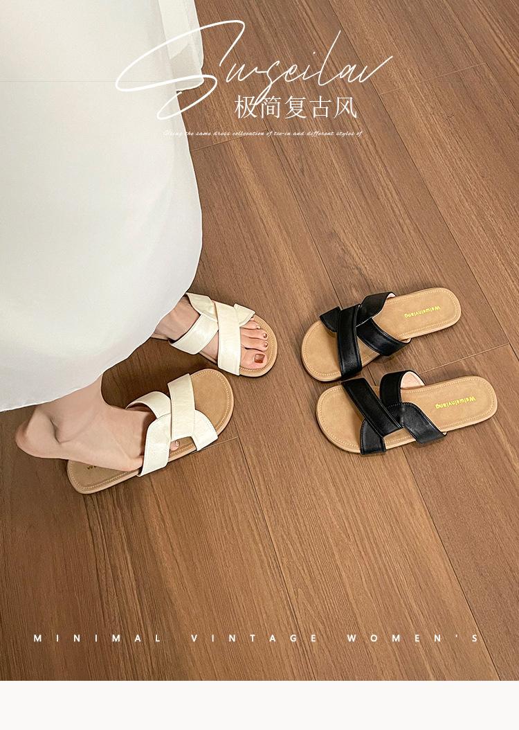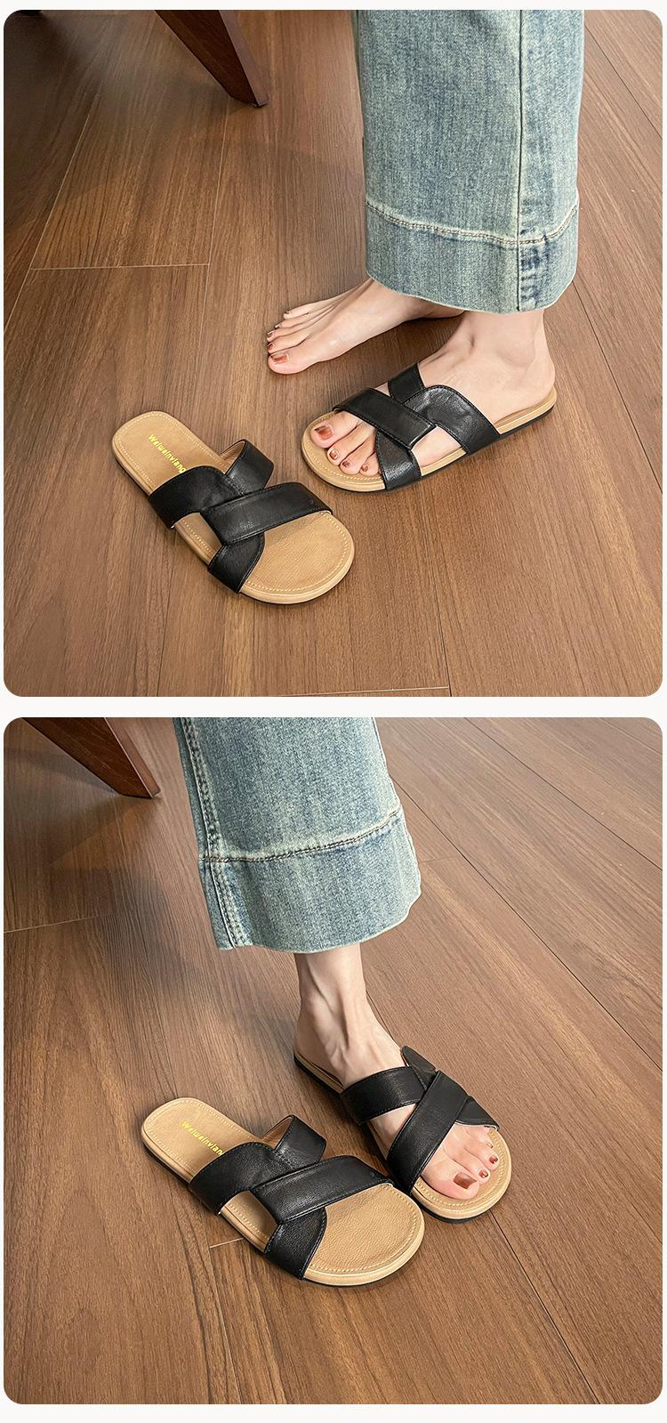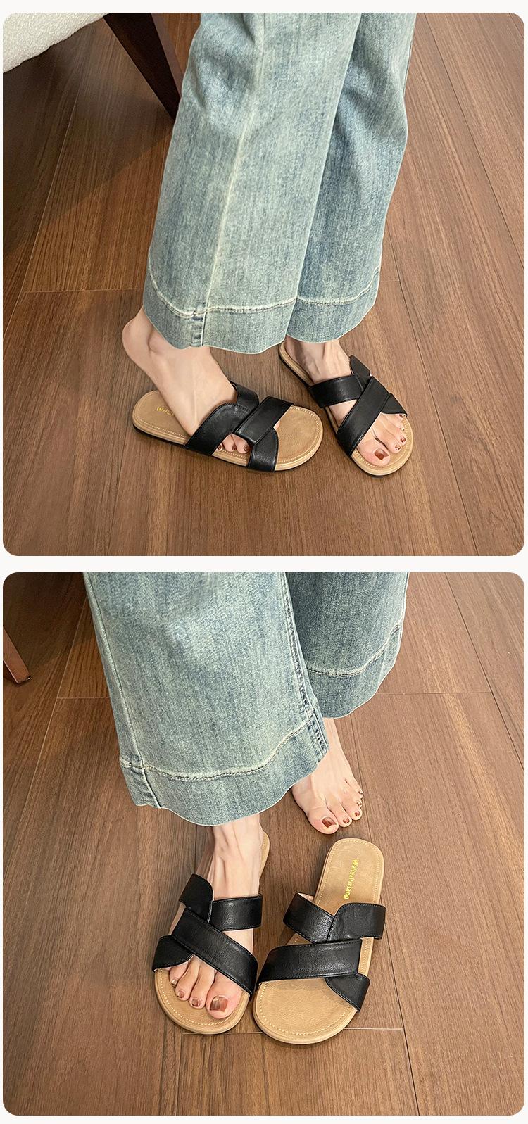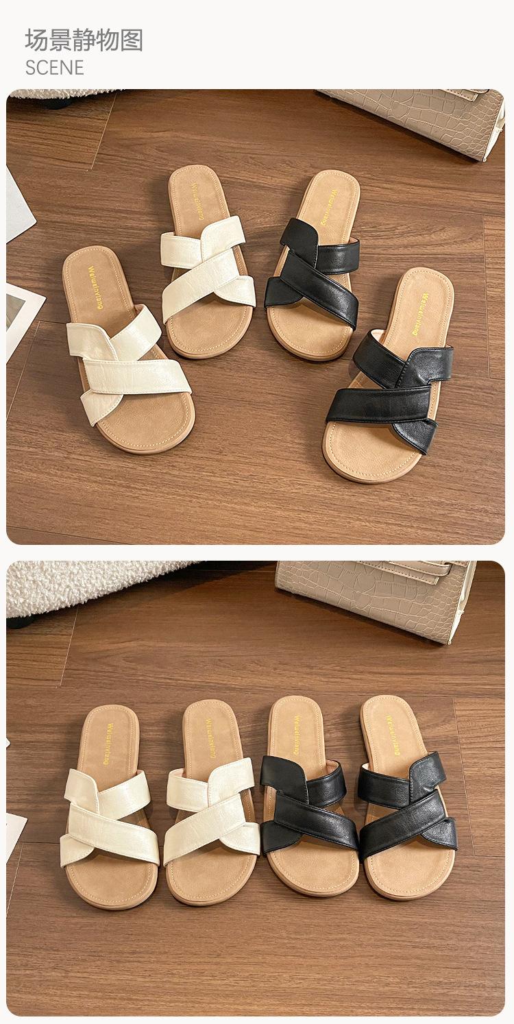 Weiwei Girl 910-1 Zapatillas Planas Francesas Mujer Verano Exterior Retro Cruz Playa Orilla del Mar Sandalias de Una Tira