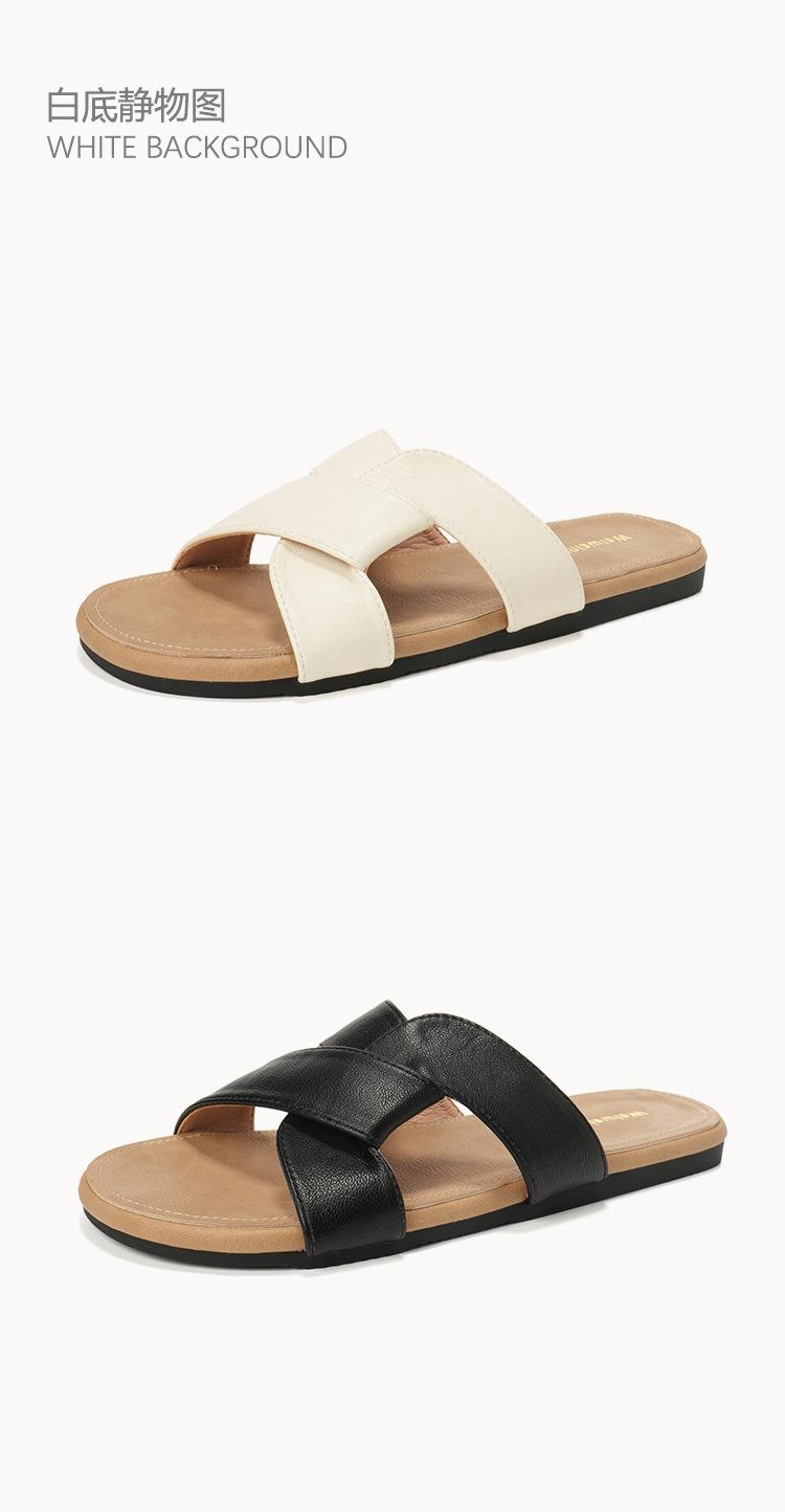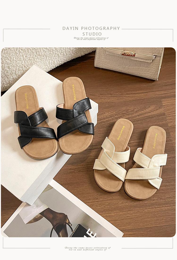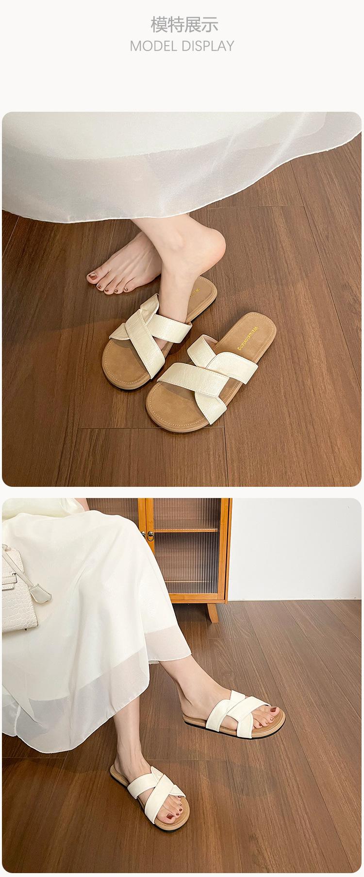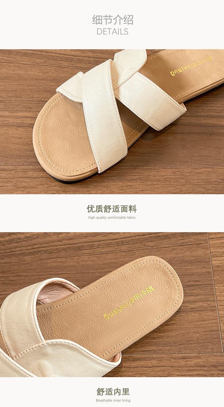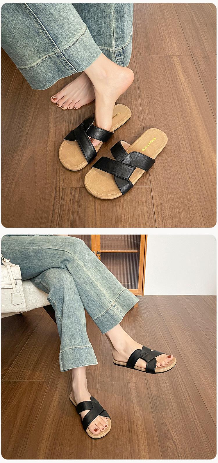 Weiwei Girl 910-1 Zapatillas Planas Francesas Mujer Verano Exterior Retro Cruz Playa Orilla del Mar Sandalias de Una Tira