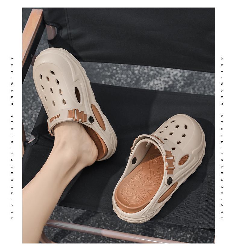 Zapatos de Agujeros de Moda Zapatos de Hombre Moda Suela Gruesa Antideslizantes Pantuflas de Punta Cerrada Uso Dual para Casa/Exterior Sandalias de Playa de Verano para Hombre